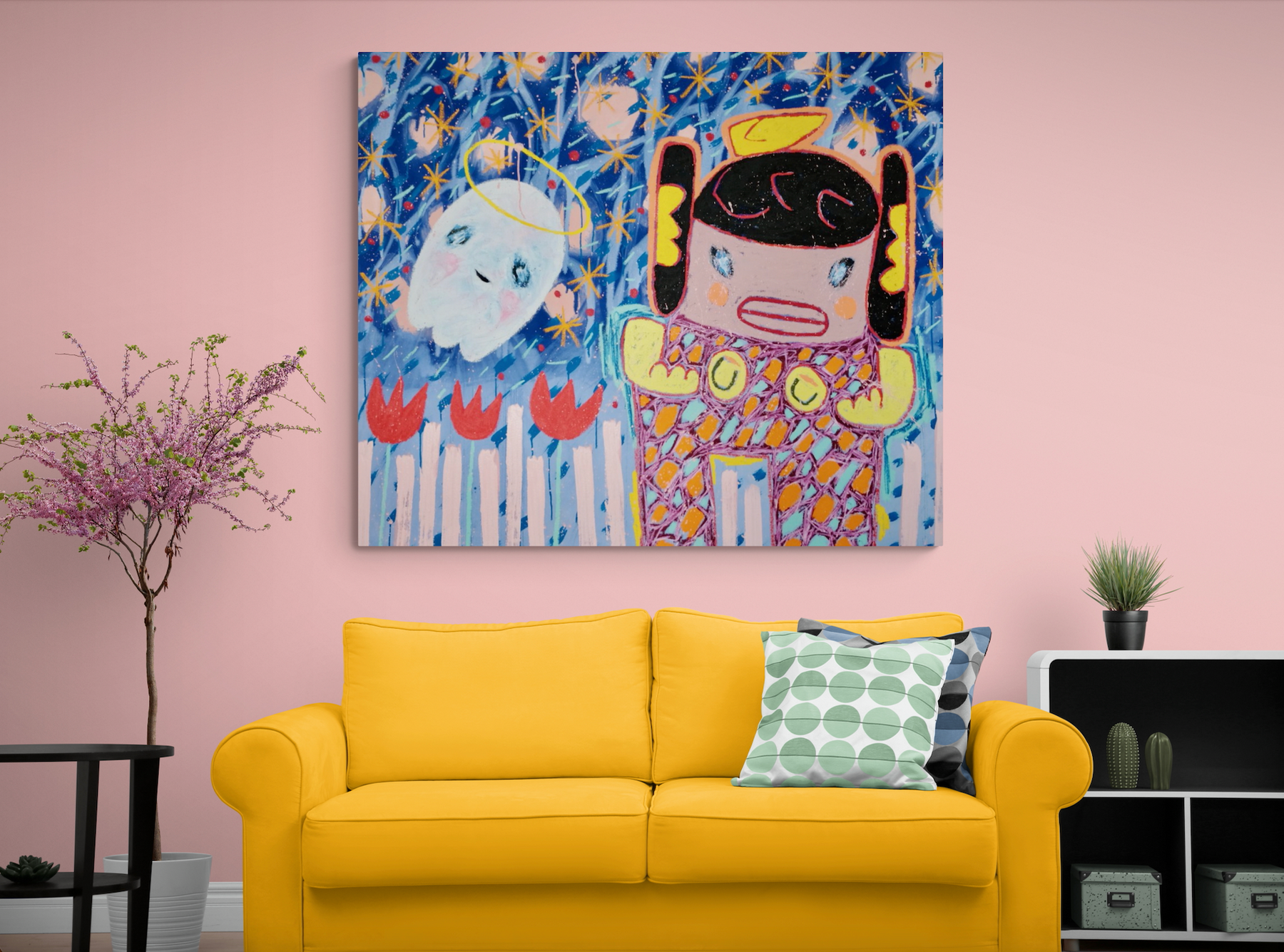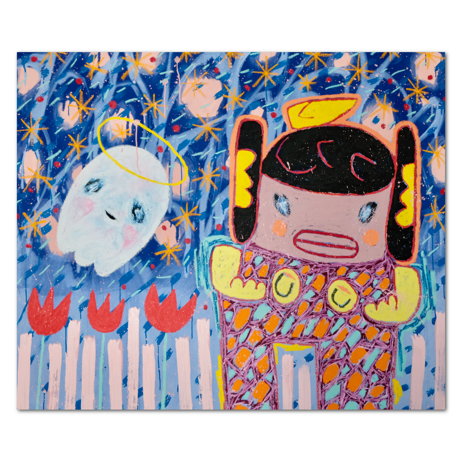 Childlike simplicity, quirky, colorful, primitive -- these are just a few words to describe the extraordinary talent of New York-born painter Adam Handler. His recognizable characters such as bats, ghosts, and wide-eyed girls embody innocence and adolescent energy that the very best of artists will tell you is close to impossible to render with fresh authenticity. Pablo Picasso said it best: “It took me four years to paint like Raphael, but a lifetime to paint like a child.”