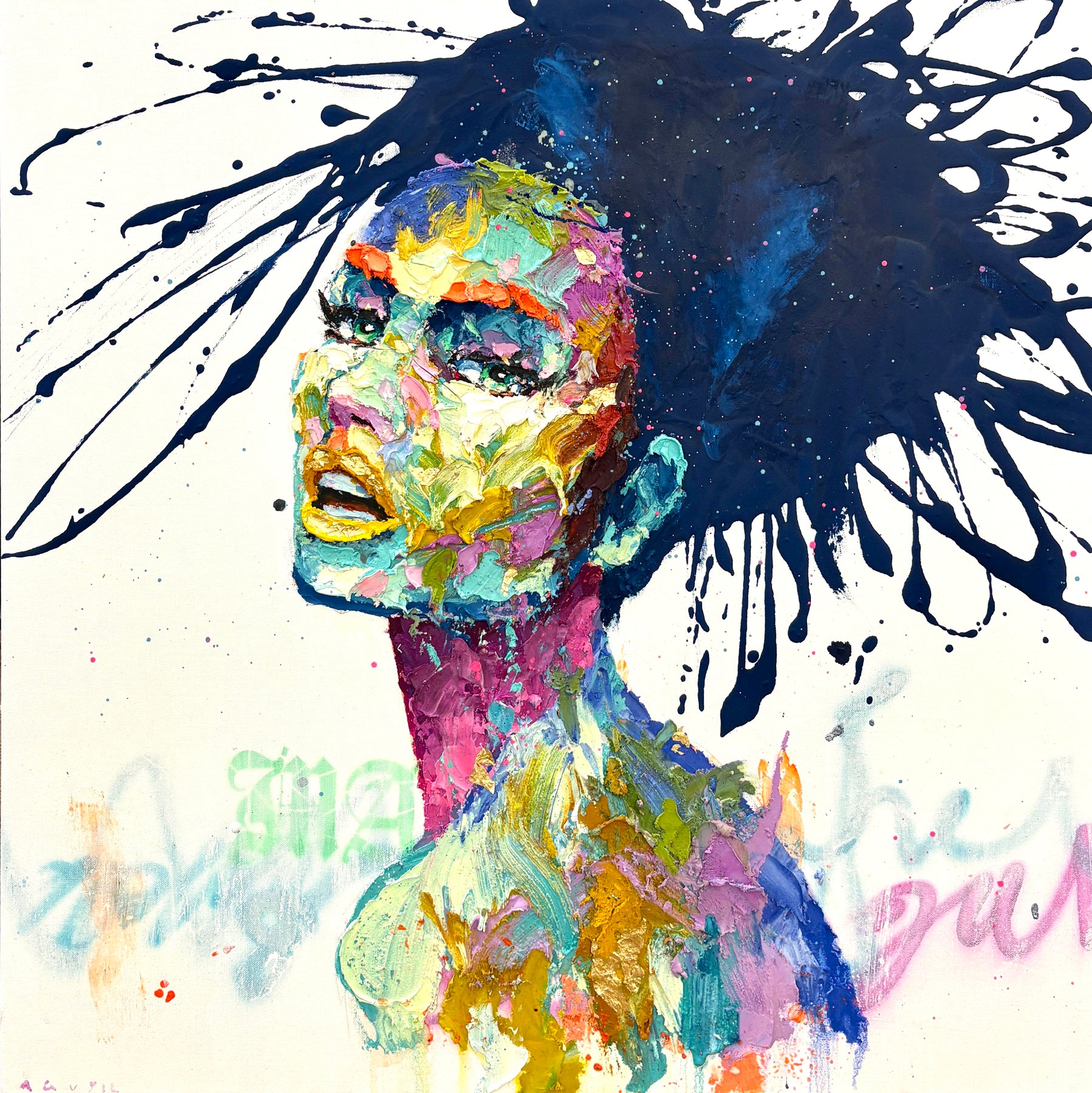 Like many artists, Spanish artist Agusil starts with a sketch of a captivating female face. The texture of his pieces is, however, unique. The surfaces of his canvases are created by layering and sculpting oil and acrylic paint quickly and instinctually with a spatula and brushes. The dimensionality of his faces are made all the more magnetic by the expressions on his subjects' faces-- always mysterious and intense. Agusil's intuitive process is clearly visible in his paintings, giving them a sense of movement and dynamism that make it difficult to look away.