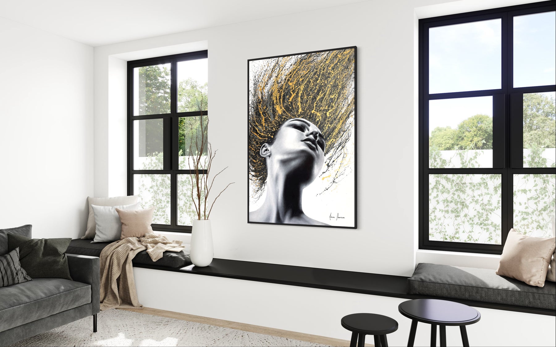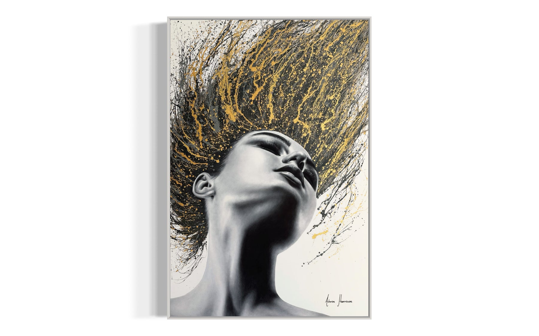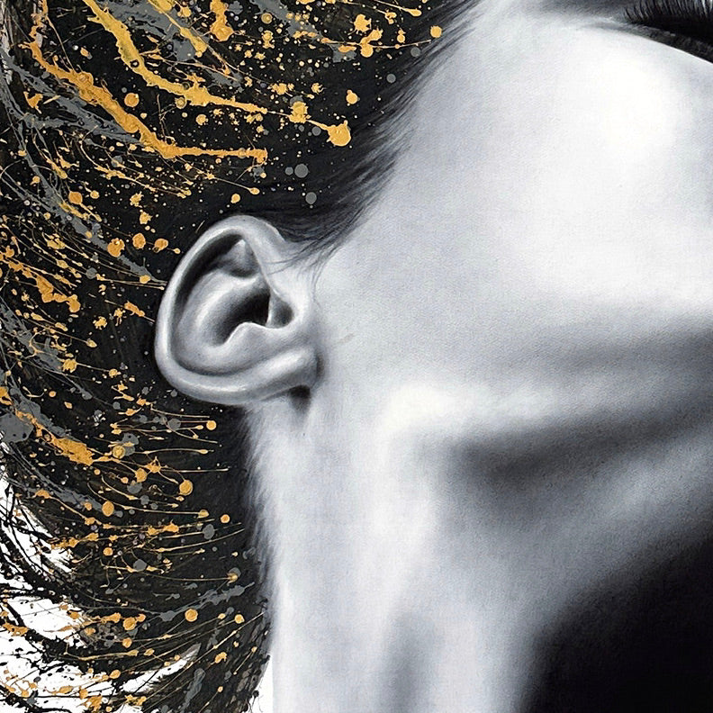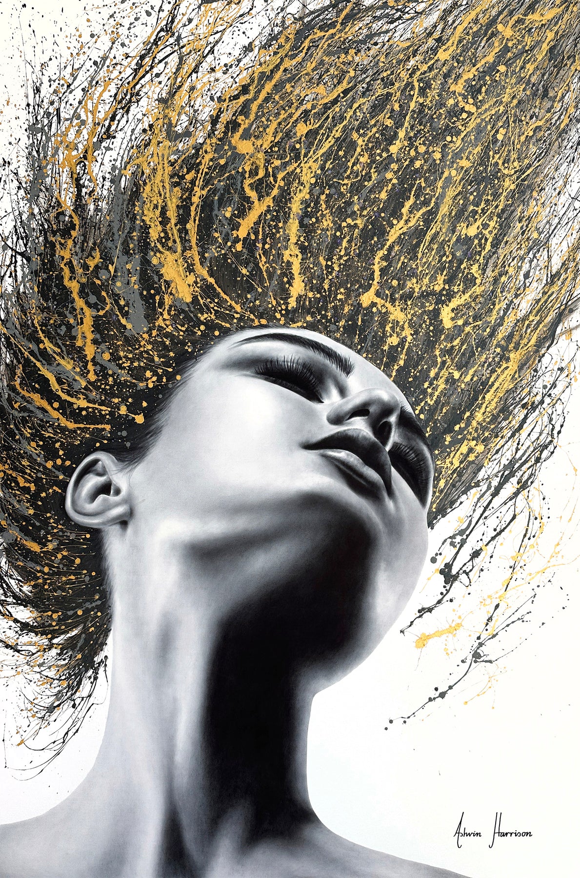 Working with charcoal dust powder, acrylic, and oil, Ashvin Harrison’s contemporary artistic style is so musical that his figures almost literally dance off the canvas. Harrison has come to be known worldwide for his integration of contrasting mediums. The painter begins with the soft, sultry subtlety of brushed charcoal to create sensual, hyper-realistic figures with digital-like precision in black and white -- dancers, hummingbirds, planets, trees, and musical instruments to name the most iconic. From there, Ashvin splatters and paints this initial charcoal with many layers of color, creating a mystical chorus of beauty, sensation, and light.