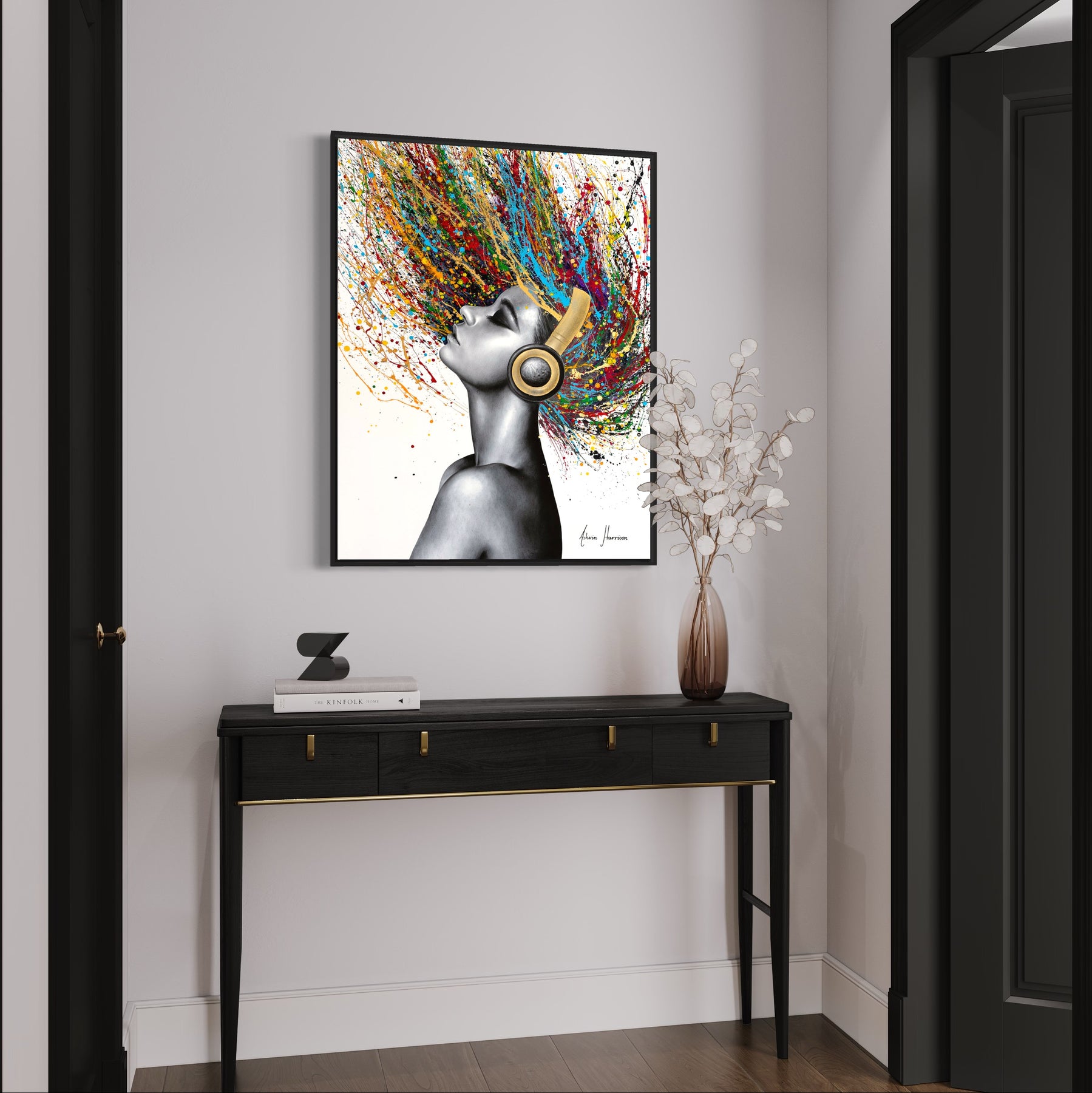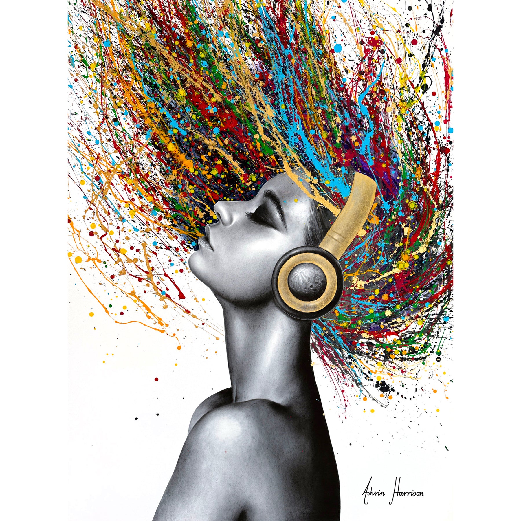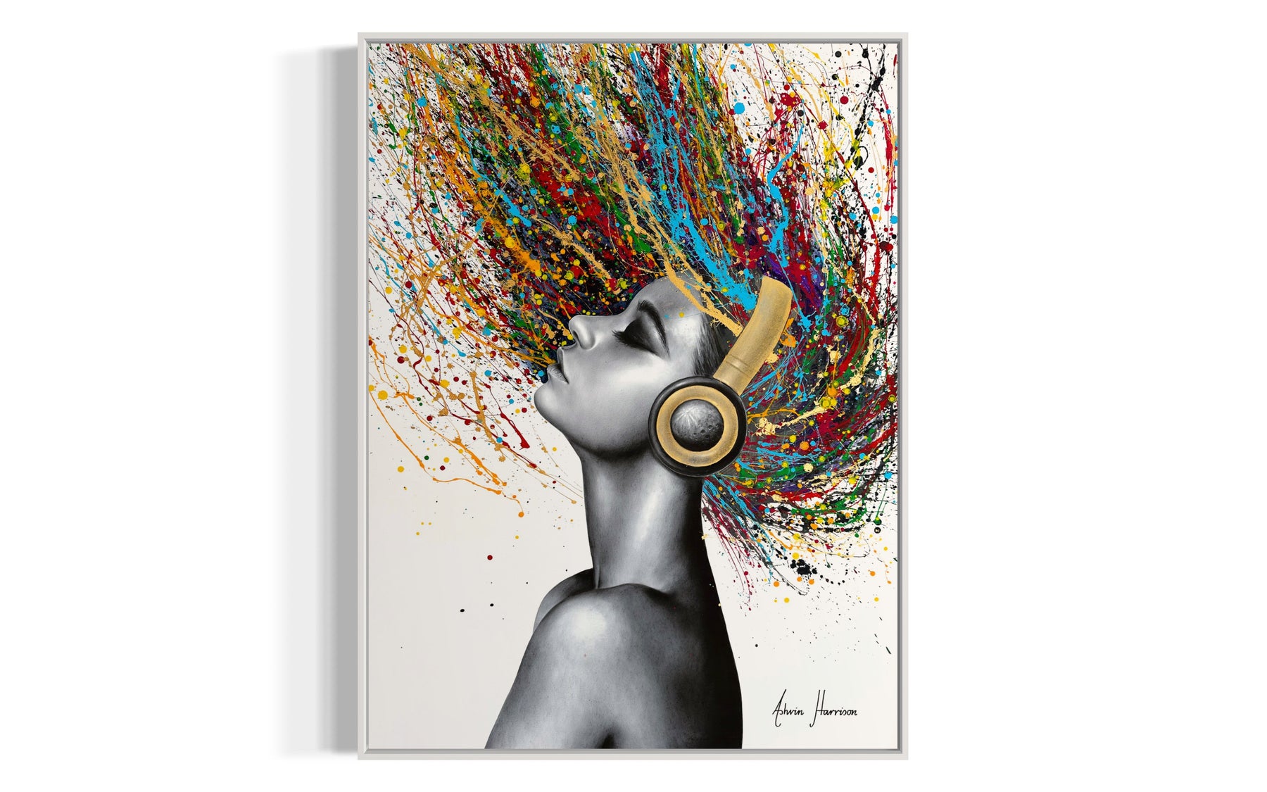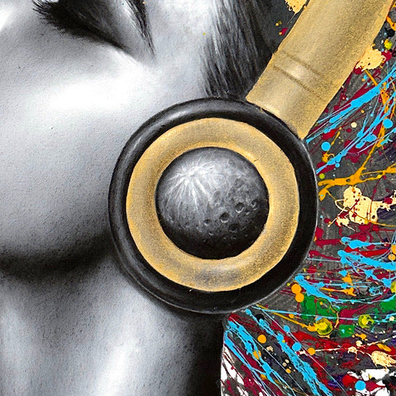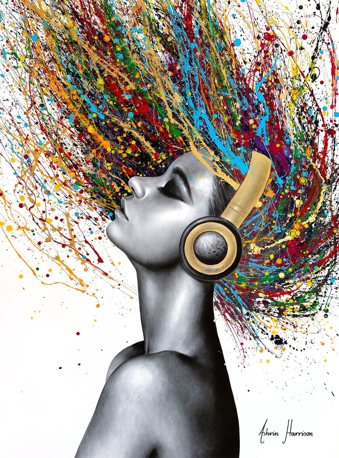 Working with charcoal dust powder, acrylic, and oil, Ashvin Harrison’s contemporary artistic style is so musical that his figures almost literally dance off the canvas. Harrison has come to be known worldwide for his integration of contrasting mediums. The painter begins with the soft, sultry subtlety of brushed charcoal to create sensual, hyper-realistic figures with digital-like precision in black and white -- dancers, hummingbirds, planets, trees, and musical instruments to name the most iconic. From there, Ashvin splatters and paints this initial charcoal with many layers of color, creating a mystical chorus of beauty, sensation, and light.