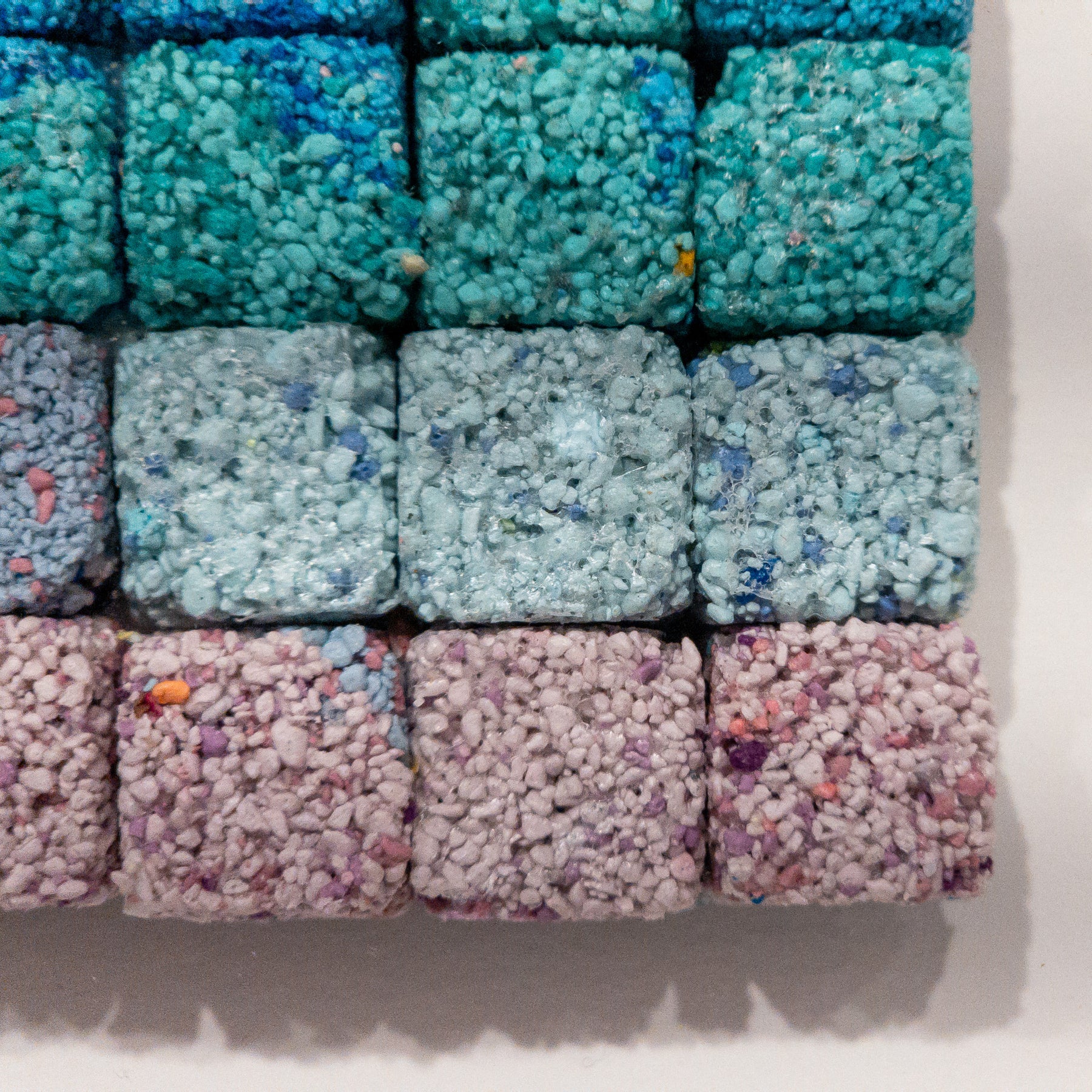Bob Landström is an artist who primarily works with crushed, pigmented volcanic rock. His abstract paintings, with their highly granulated texture and color combinations, only achieved through such a medium, reconsider our relationship with meaning by eliciting the iconography of ancient languages, science, religions, and mysticism.