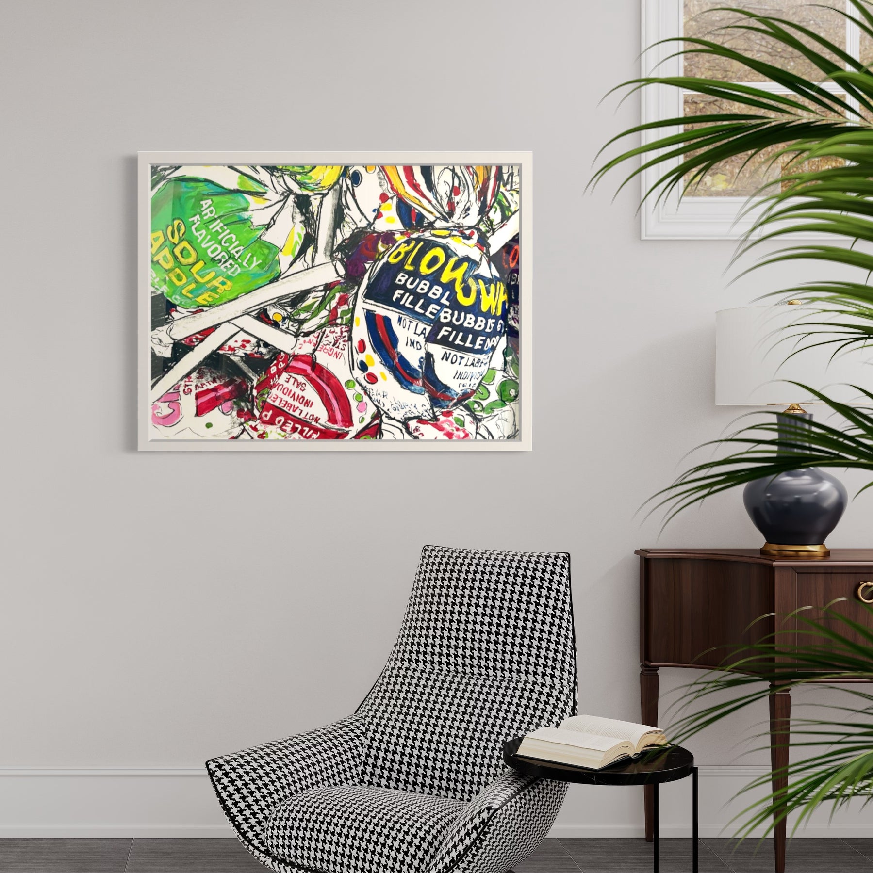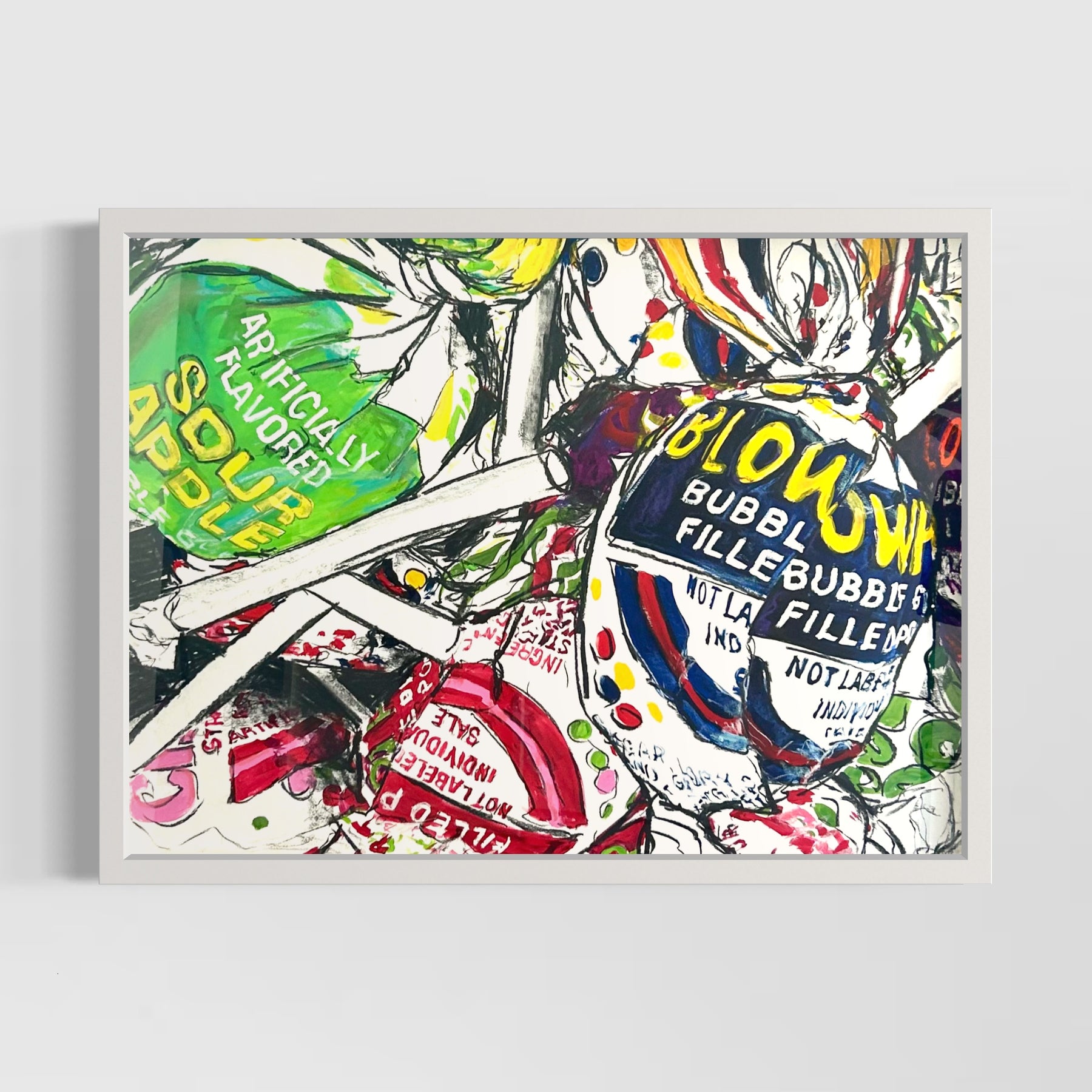 As a form of commentary on cultural recognition, ubiquity, and community, Cabrer elevates popular culture and symbols to the level of contemporary fine art. For example, the artist paints minimalist retro candies such as Life Savers, Bazooka Bubble Gum, and Blow Pop Lollipops with distinct patterns, bold colors, and texture. Using acrylic on panel, Cabrer paints with strong, dark lines and tropical colors, situating recognizable symbols in a white, raw space that sits on the flat surface of the panel. Cabrer engages with a conceptual approach to nostalgia of the 80s and 90s, repositioning popular culture and framing the memorabilia to be seen in new and unique ways. He sits within a line of contemporary greats, such as Andy Warhol of the Pop Art movement, using icons to reflect on social processes.
