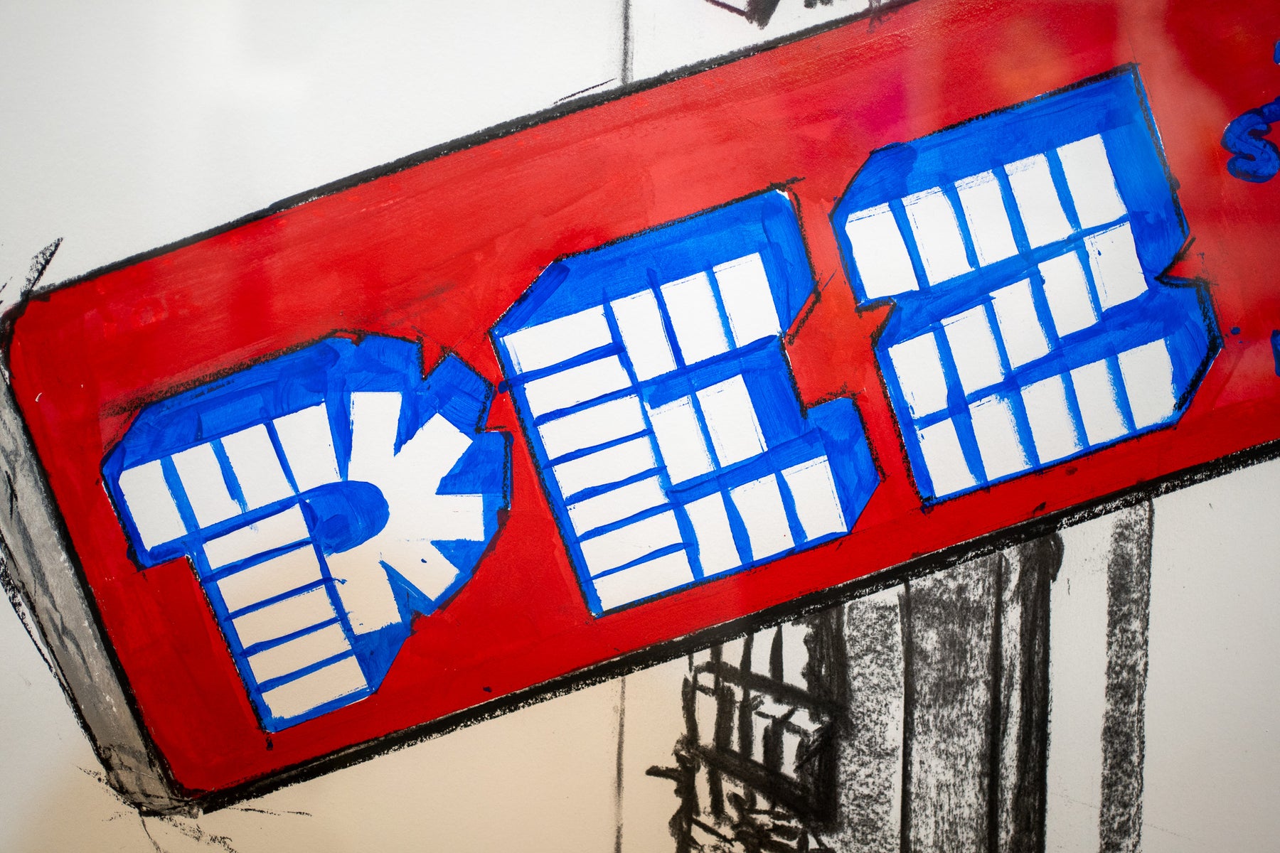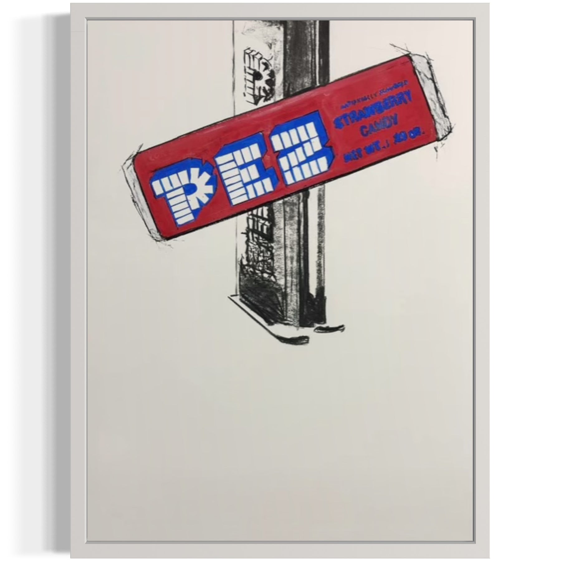 As a form of commentary on cultural recognition, ubiquity, and community, Cabrer elevates popular culture and symbols to the level of contemporary fine art. For example, the artist paints minimalist retro candies such as Life Savers, Bazooka Bubble Gum, and Blow Pop Lollipops with distinct patterns, bold colors, and texture. Using acrylic on panel, Cabrer paints with strong, dark lines and tropical colors, situating recognizable symbols in a white, raw space that sits on the flat surface of the panel. Cabrer engages with a conceptual approach to nostalgia of the 80s and 90s, repositioning popular culture and framing the memorabilia to be seen in new and unique ways. He sits within a line of contemporary greats, such as Andy Warhol of the Pop Art movement, using icons to reflect on social processes.