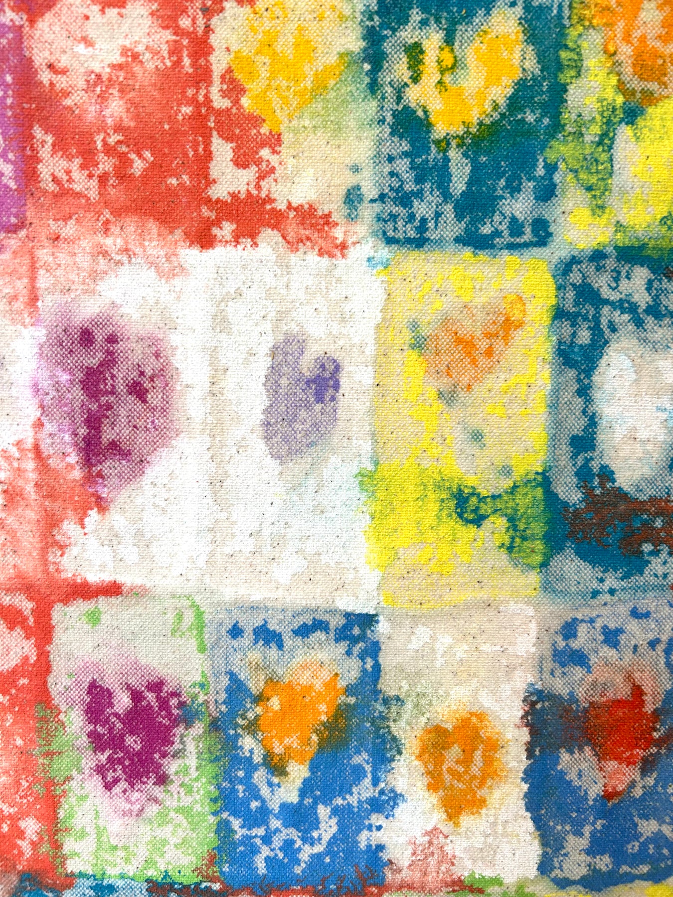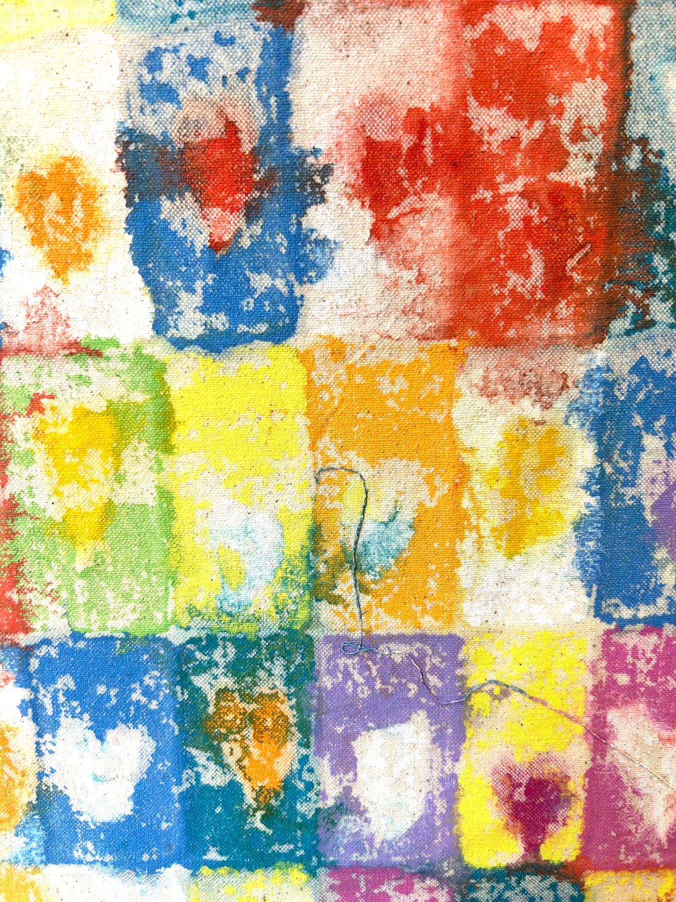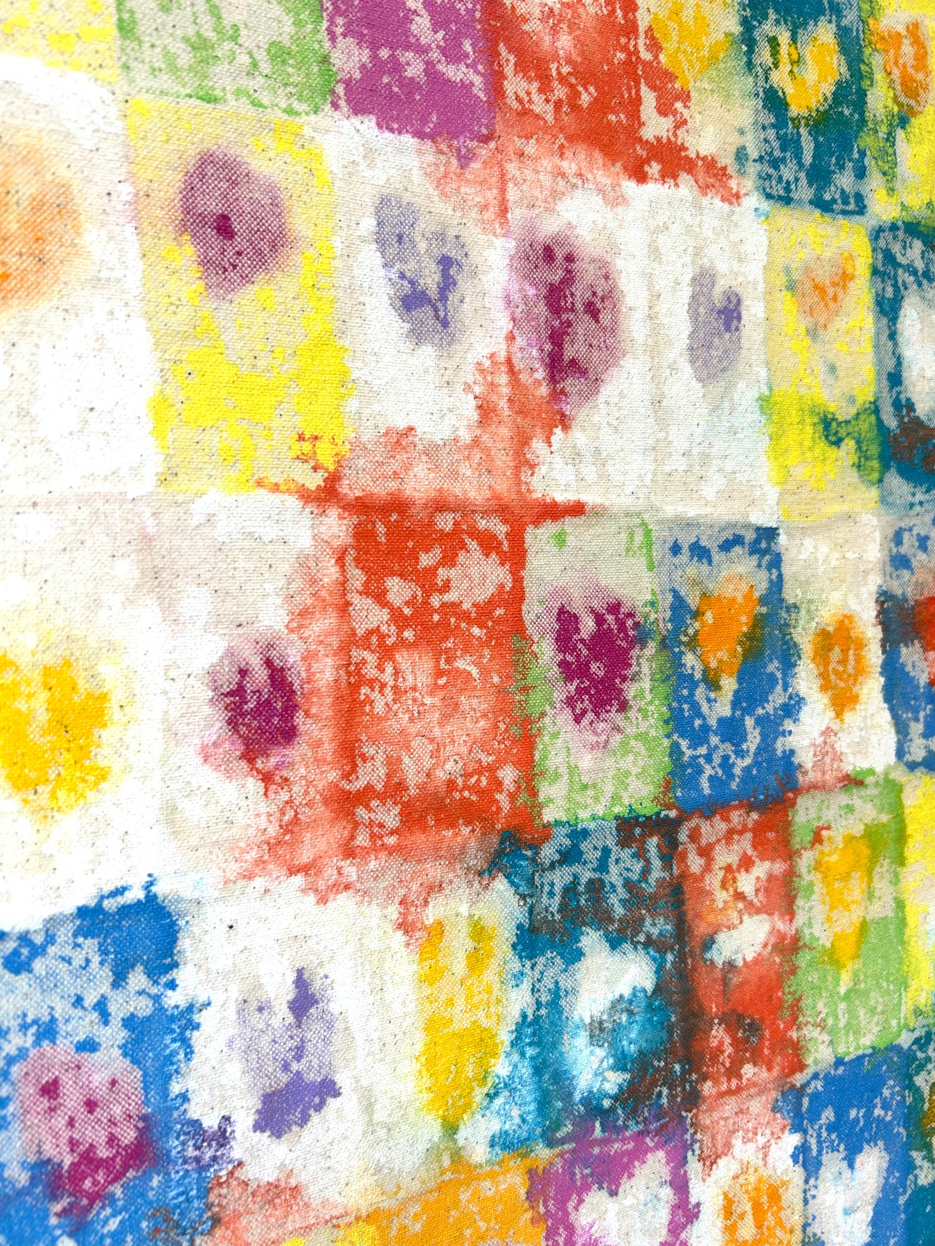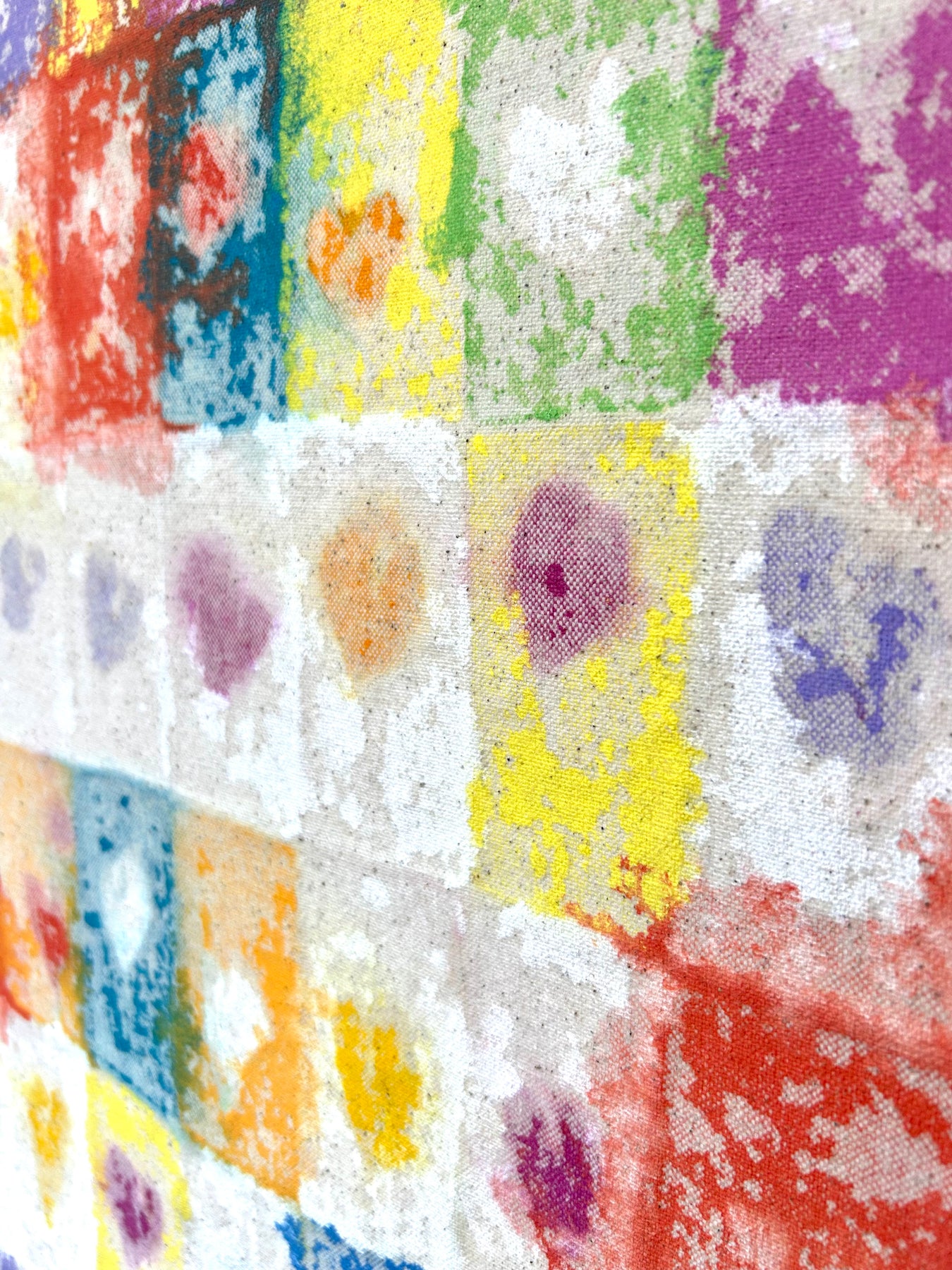 - Naturally pigmented watercolors, painted on recycled sailcloth with ocean water.