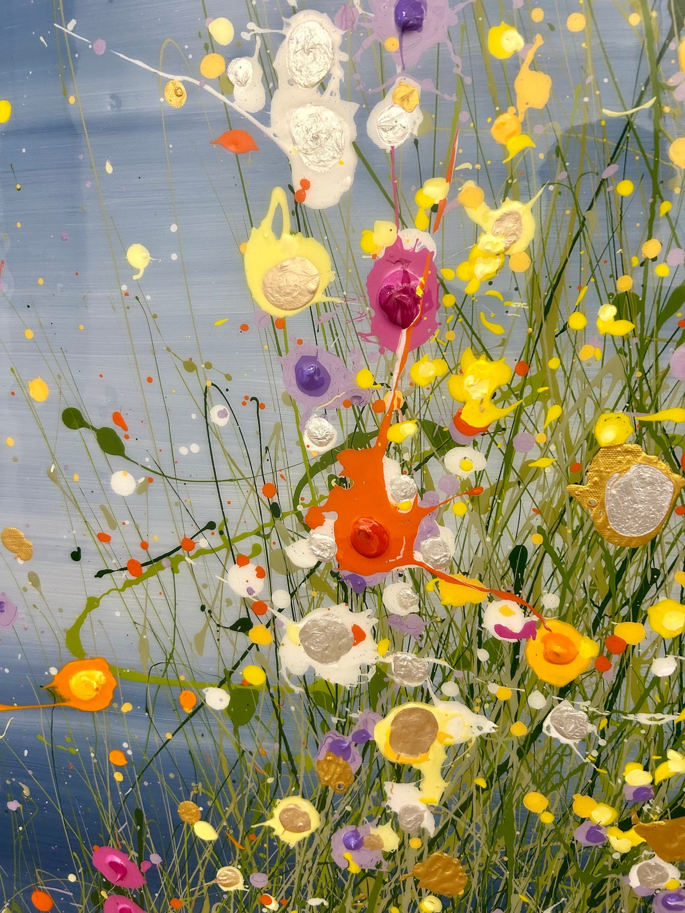• Oil, acrylic paint, and resin on canvas