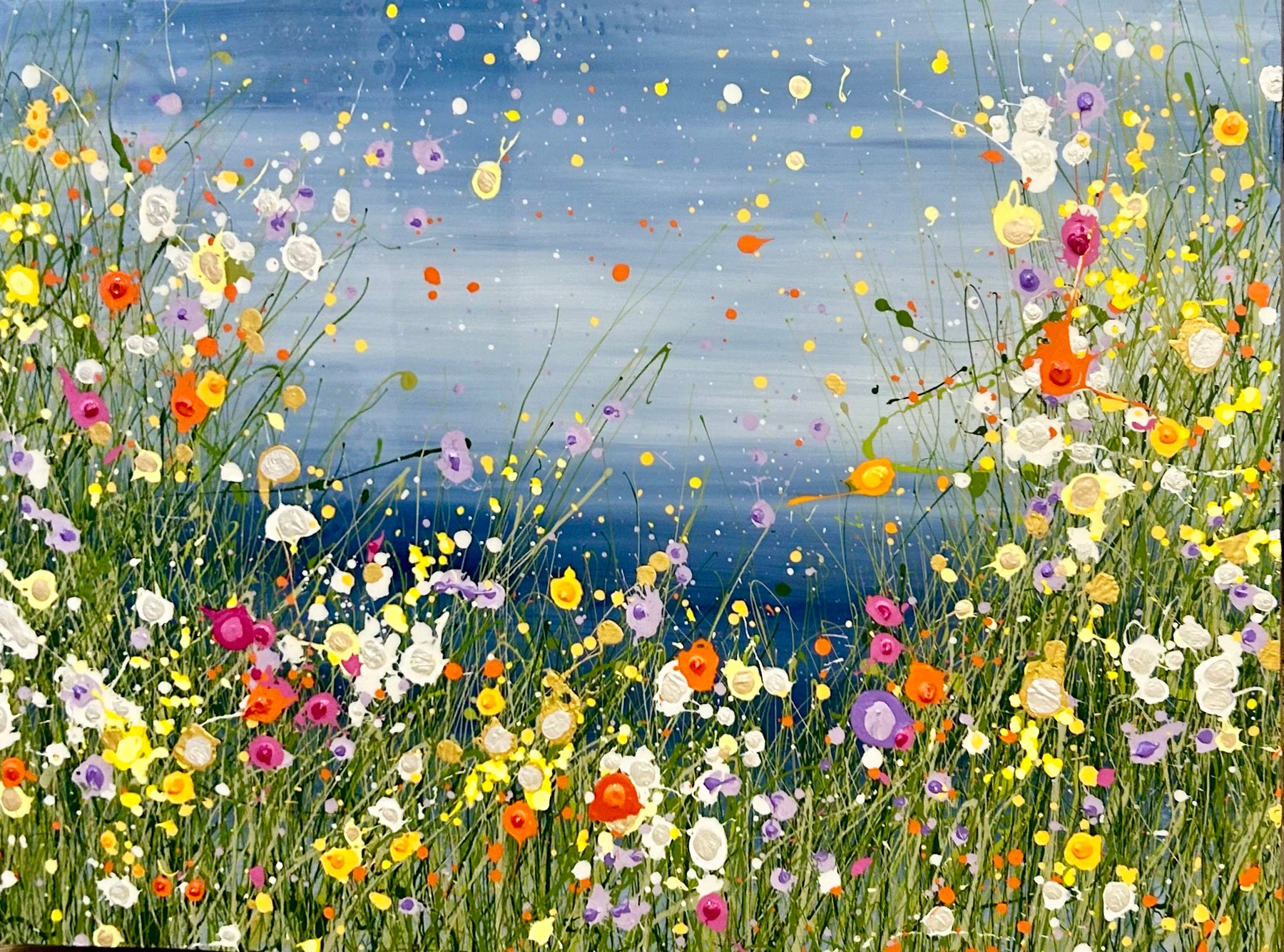 Hudson Valley-born artist, Eric Heitmann, creates beautiful, colorful abstract floral and landscape paintings that rejoice in the colors and textures of nature: swaying water grasses, glistening wildflowers, gliding swans, even the resident perching bald eagle. His landscape style painting verges on the abstract, and is constructed of many layers of acrylic paint to create dimensional landscapes and bright gardens.
