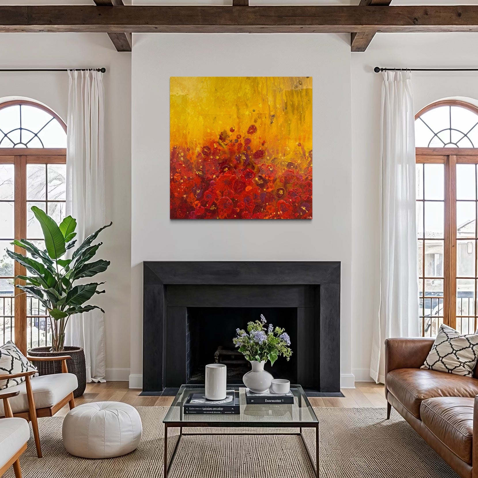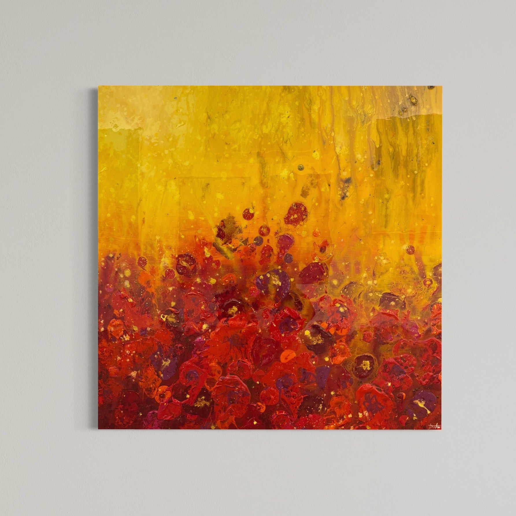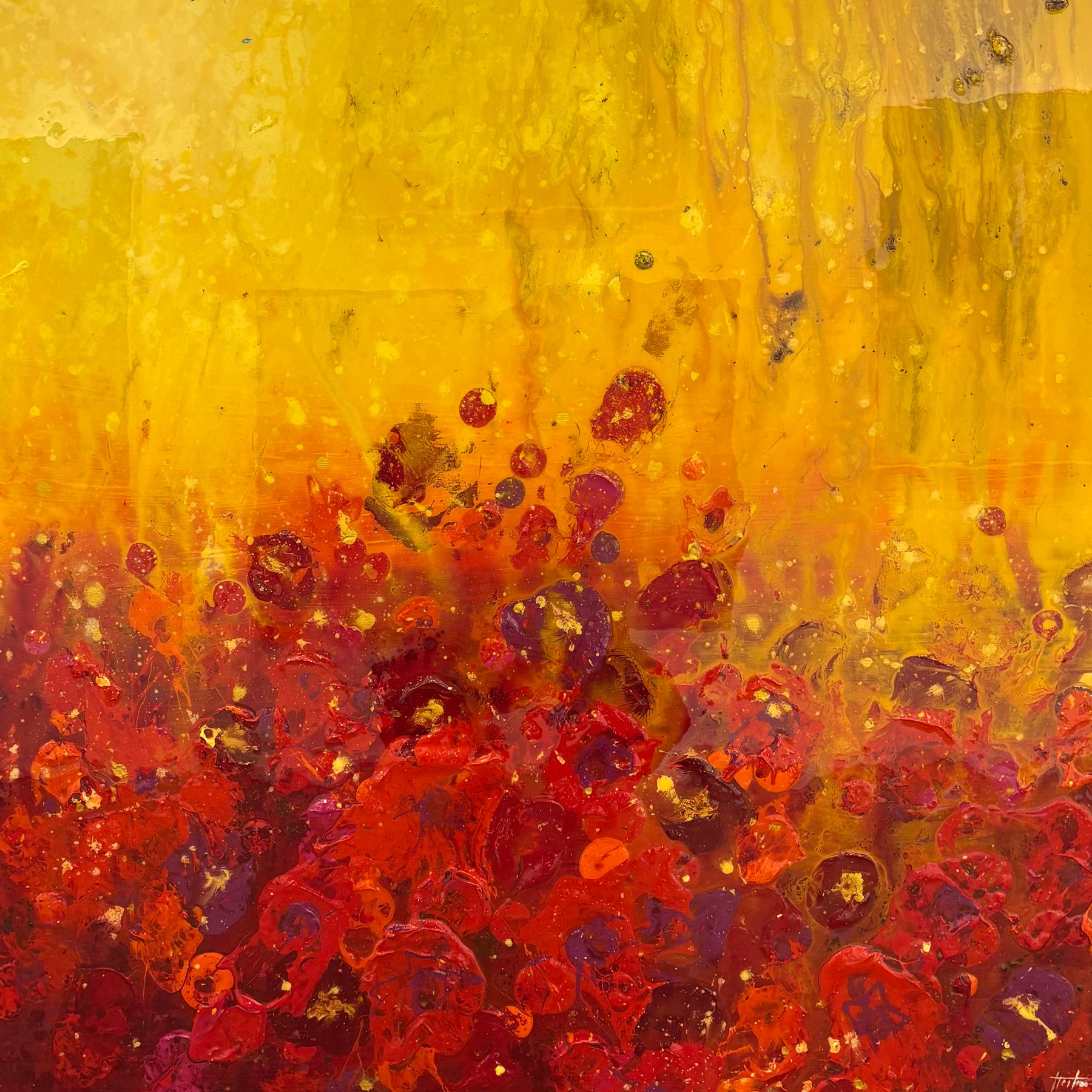 Hudson Valley-born artist, Eric Heitmann, creates beautiful, colorful abstract floral and landscape paintings that rejoice in the colors and textures of nature: swaying water grasses, glistening wildflowers, gliding swans, even the resident perching bald eagle. His landscape style painting verges on the abstract, and is constructed of many layers of acrylic paint to create dimensional landscapes and bright gardens.