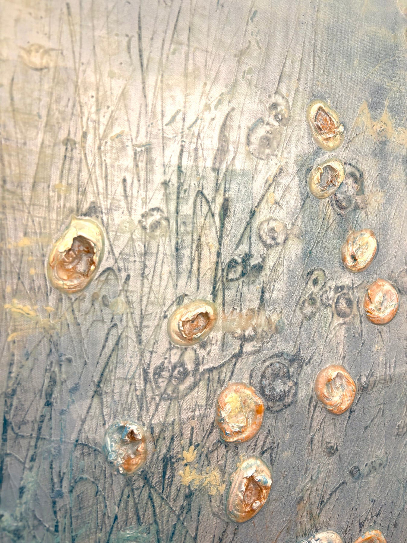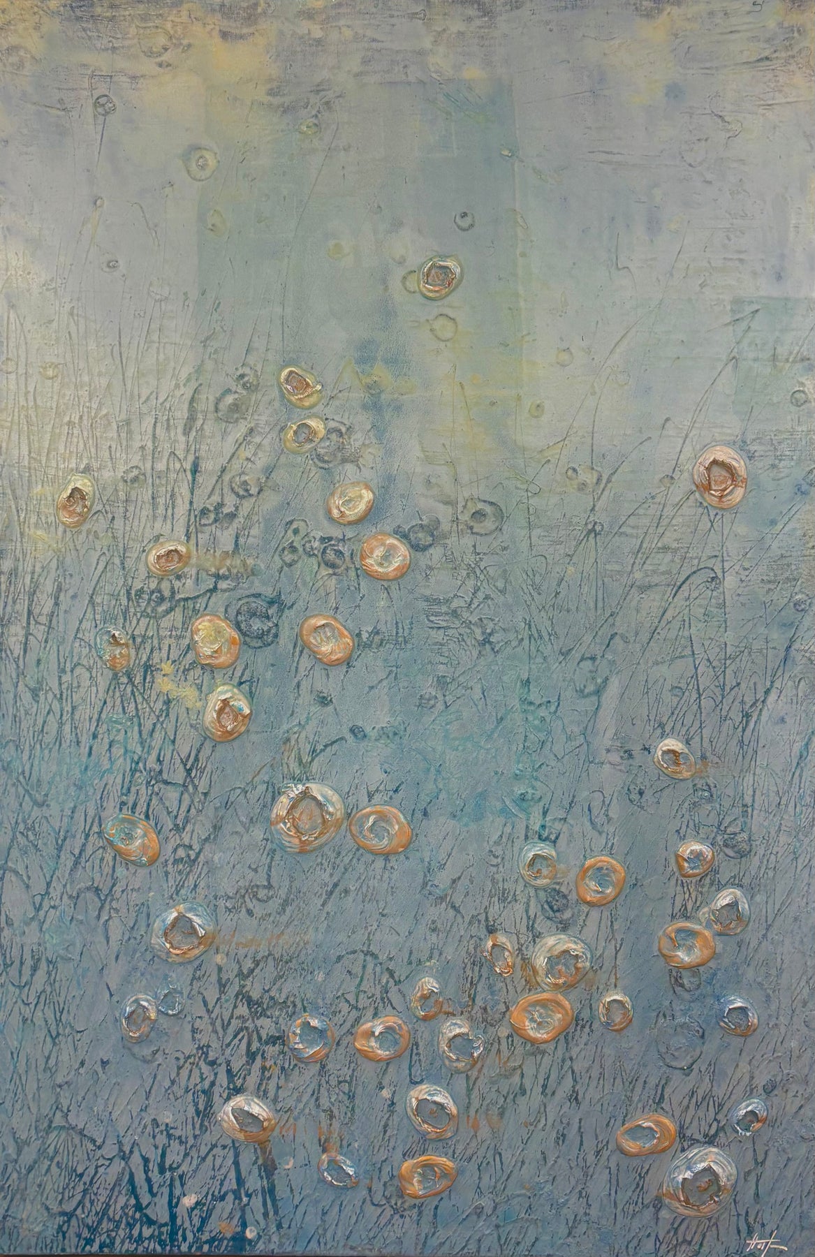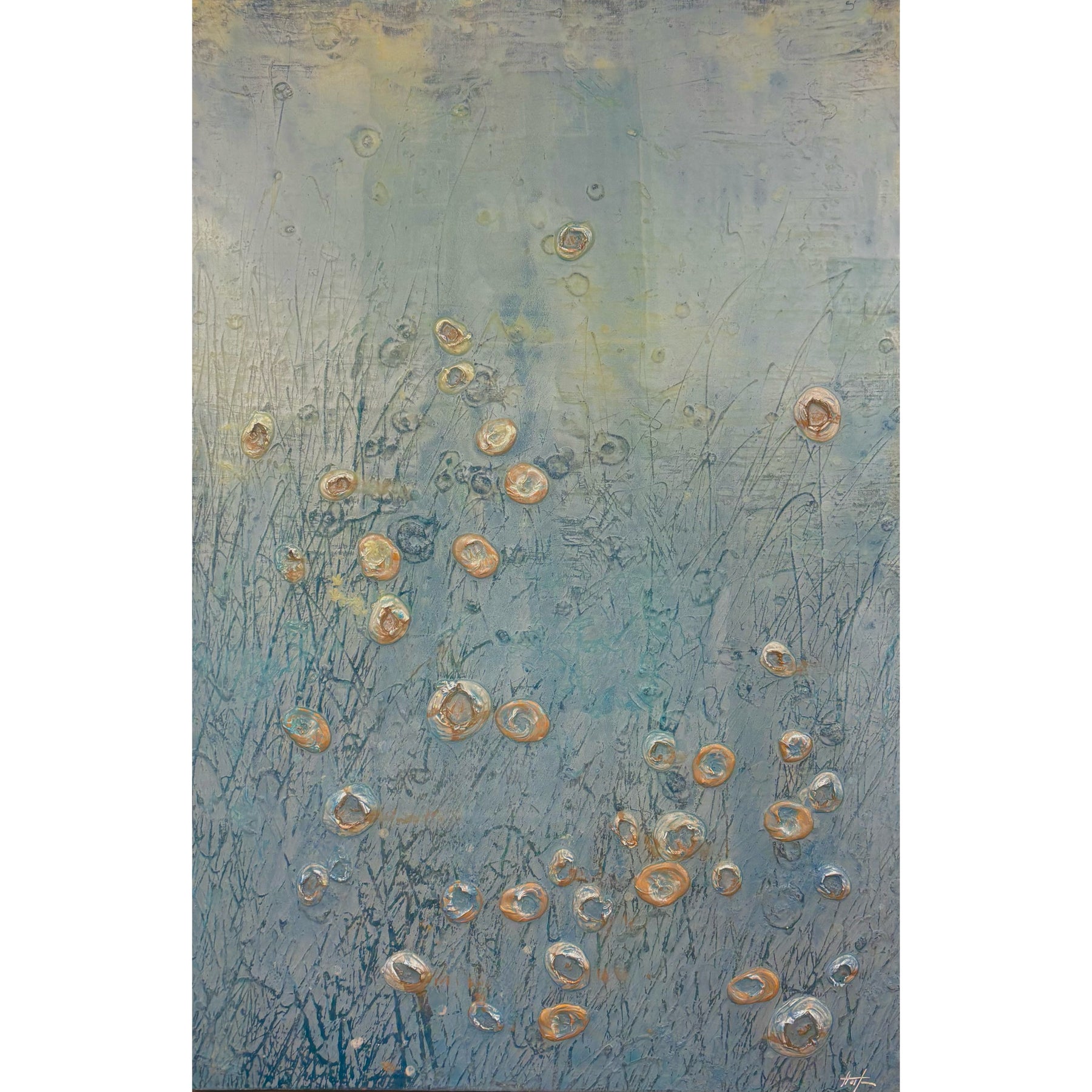 Hudson Valley-born artist, Eric Heitmann, creates beautiful, colorful abstract floral and landscape paintings that rejoice in the colors and textures of nature: swaying water grasses, glistening wildflowers, gliding swans, even the resident perching bald eagle. His landscape style painting verges on the abstract, and is constructed of many layers of acrylic paint to create dimensional landscapes and bright gardens.