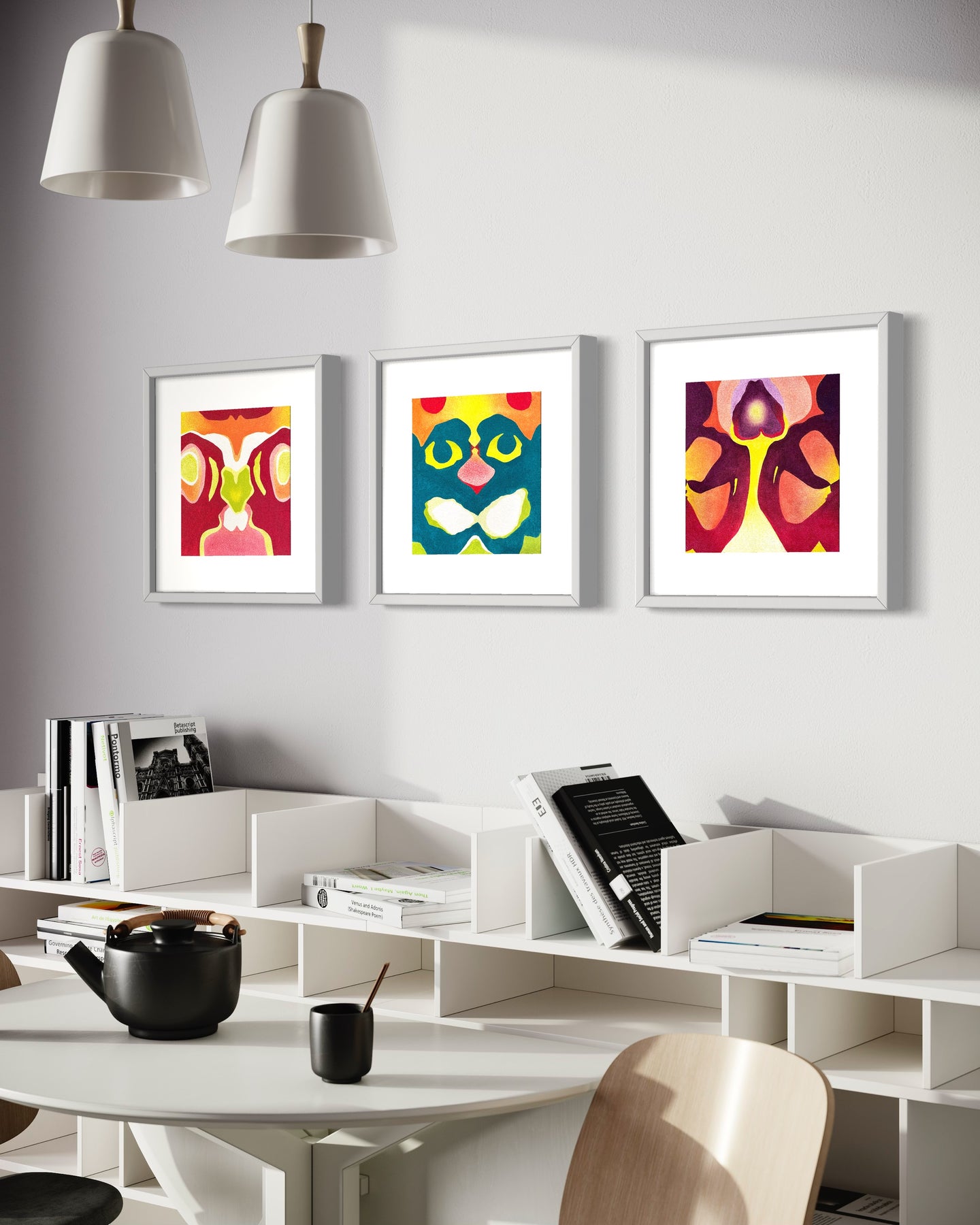 Teal, Blue, Rorschach, Orange, Abstract, Surrealism, Surrealist, Textured