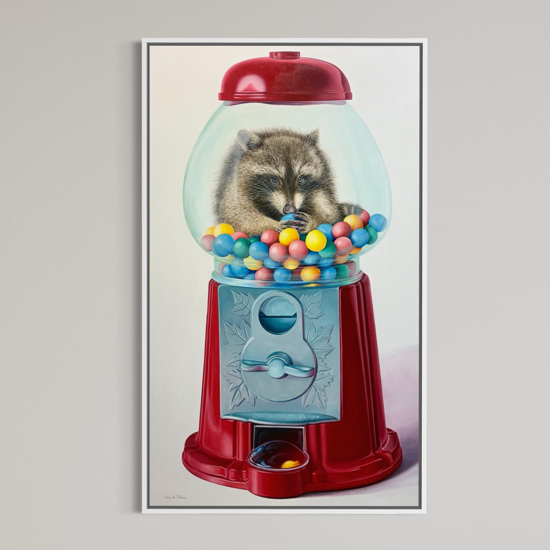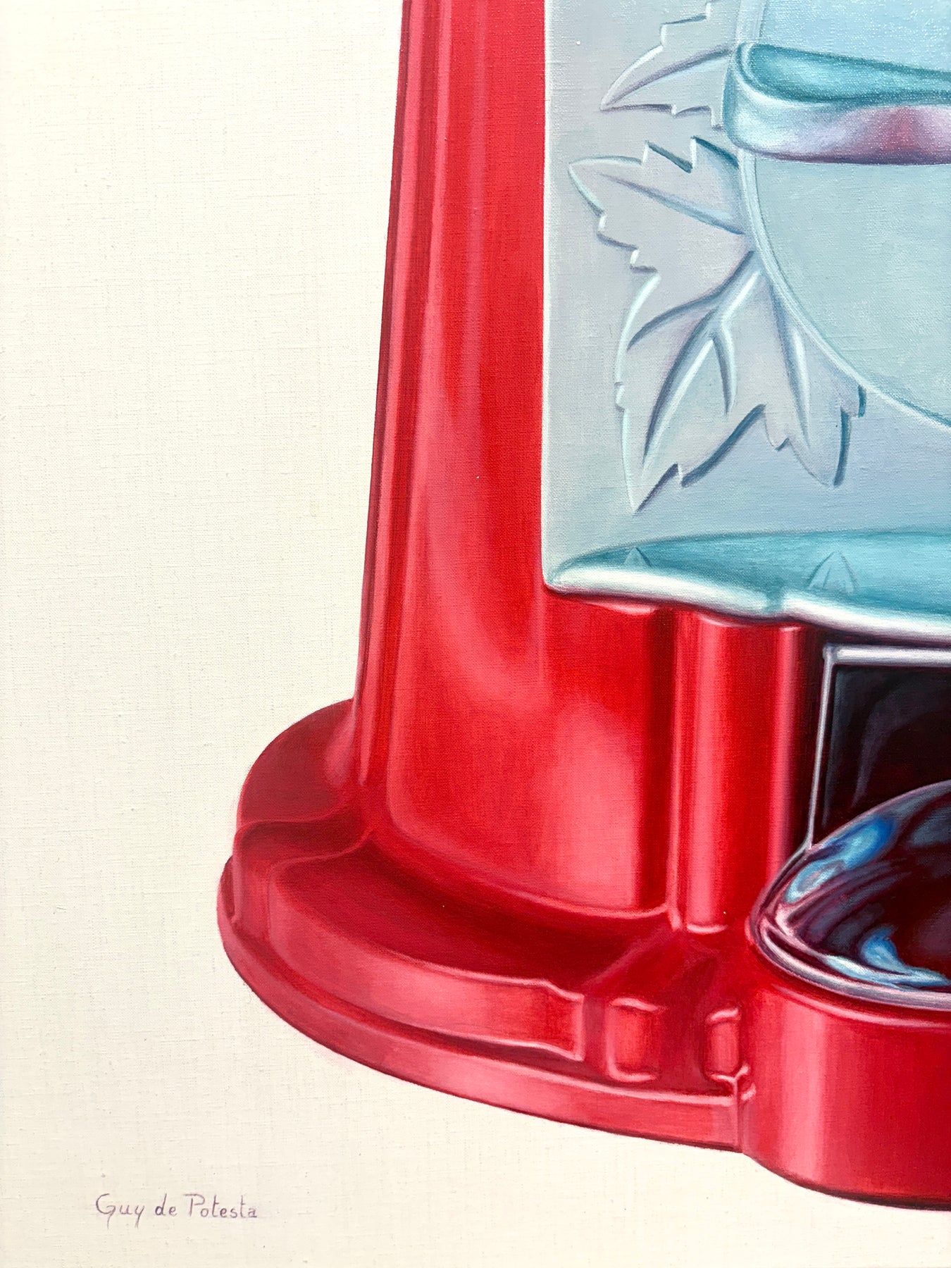 Guy de Potesta's surreal, dream-like canvases reveal the unsettling realities of a world undergoing rapid environmental degradation. Known for pairing wildlife with human-made objects in humorous, improbable ways, de Potesta uses absurdity not as escape but as a sharp lens on a natural world increasingly strained by human materialism.