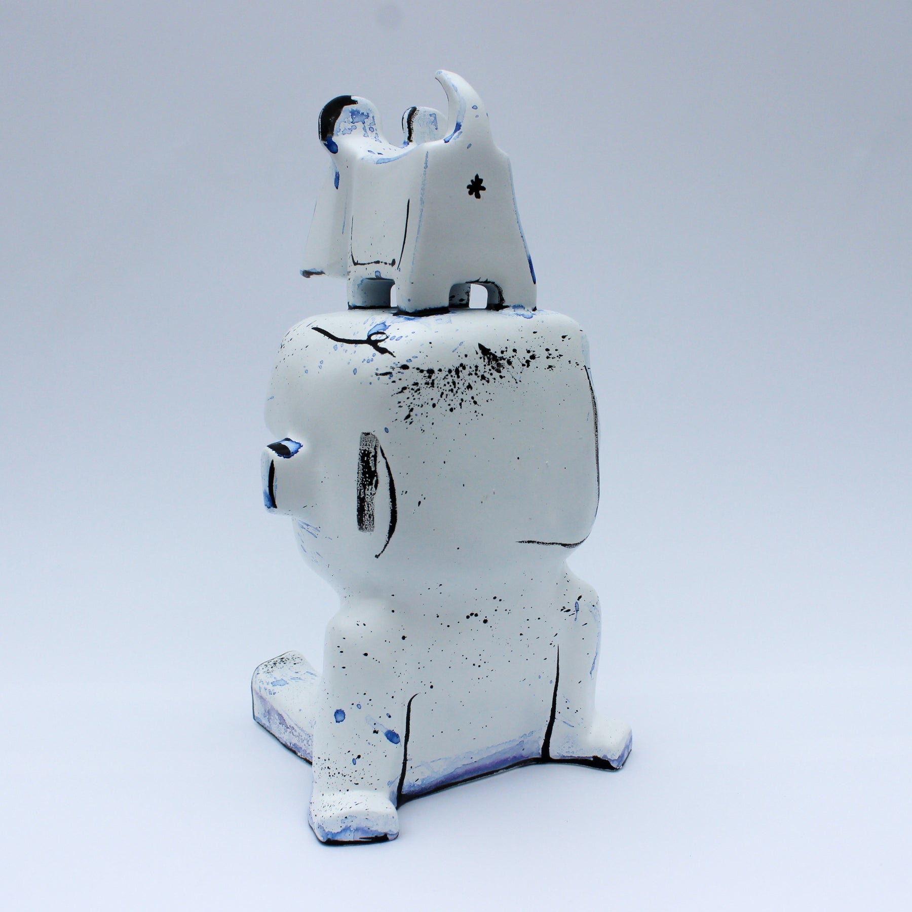 Boy with Joekel on His Head is a limited edition sculpture. These sculptures are made and painted by hand with acrylic and ink, this means that even though it is a series, every sculpture is different and unique. They resemble the one presented here but are all slightly different- Keep this in mind if you consider collecting and email Debbie@mortoncontemporary.com with any questions.