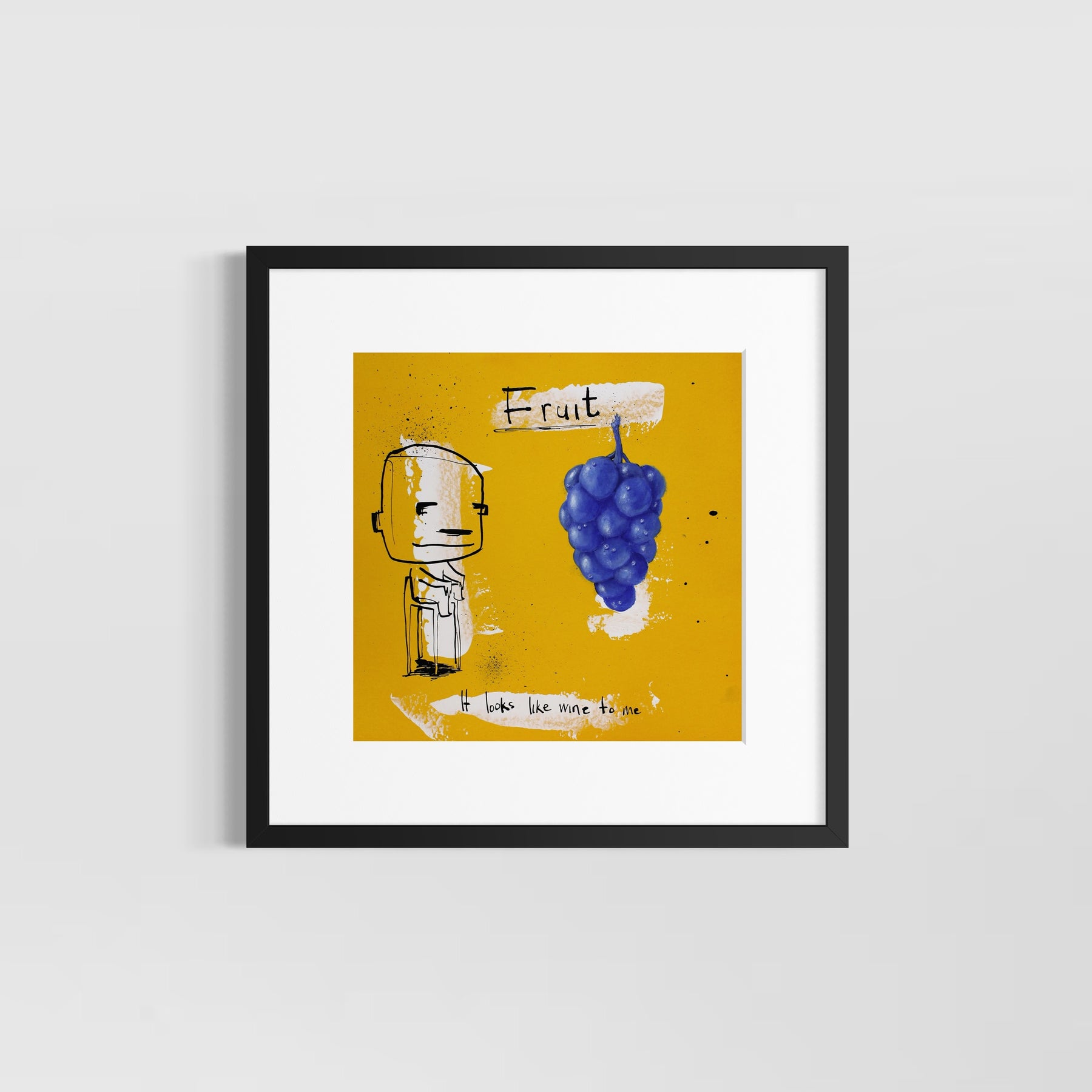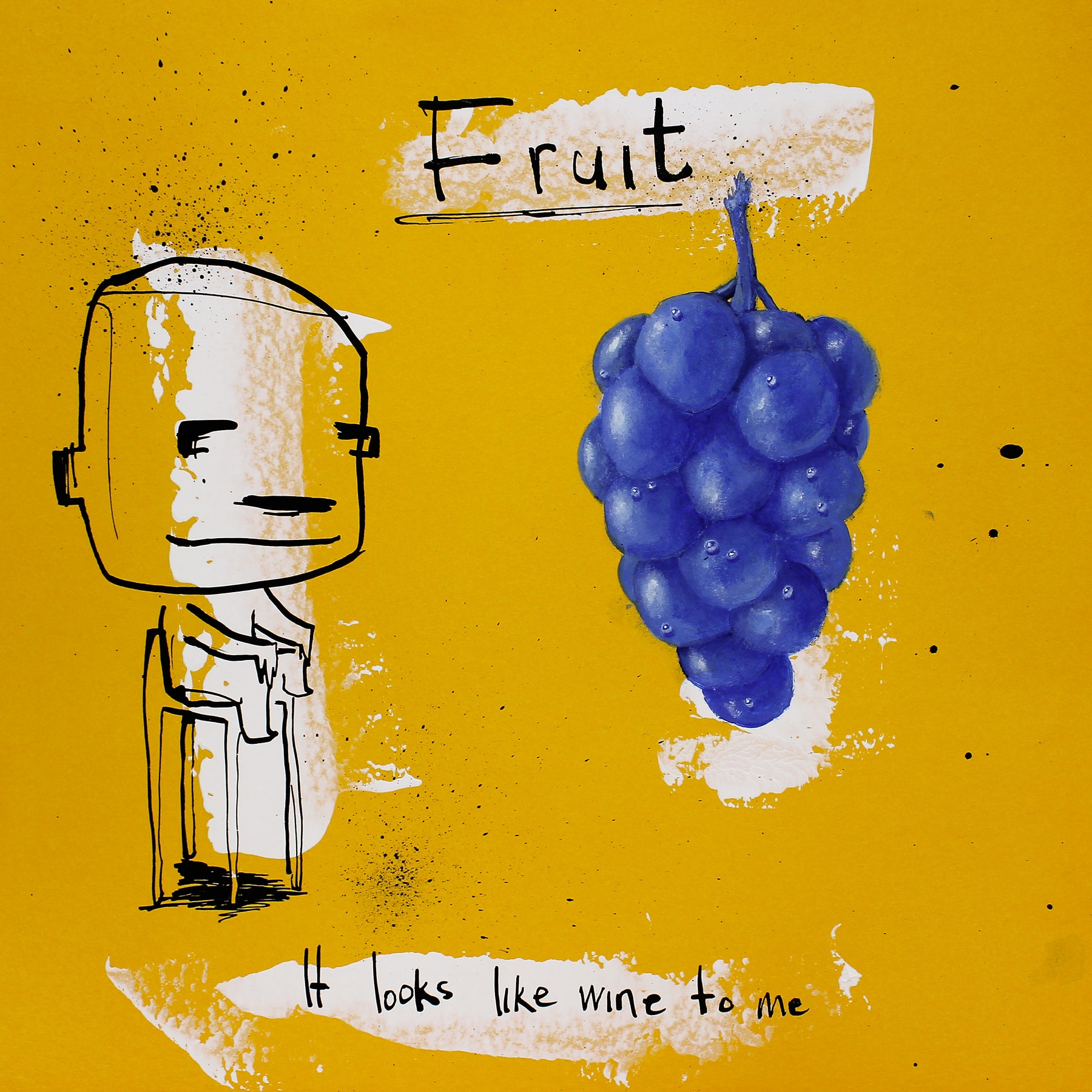 Concentrating on universally understood needs and emotions, Dutch artist Jan-Hein Arens is able to connect with every viewer and admirer of his works. Arens brings together humor and alienation through his paintings. The forefront is typically centered on a simplified figure and text that almost appears to be the thoughts of the figure. Often realistic drawings of body parts, common everyday objects or products are superimposed onto the foreground. Each piece is augmented with additional handwritten text detailing certain aspects of the piece in a comical tone. Paint splatters and rough brushstrokes fill out the remaining space in the paintings, allowing the figures and text to be the focus of each well-thought-out illustration.