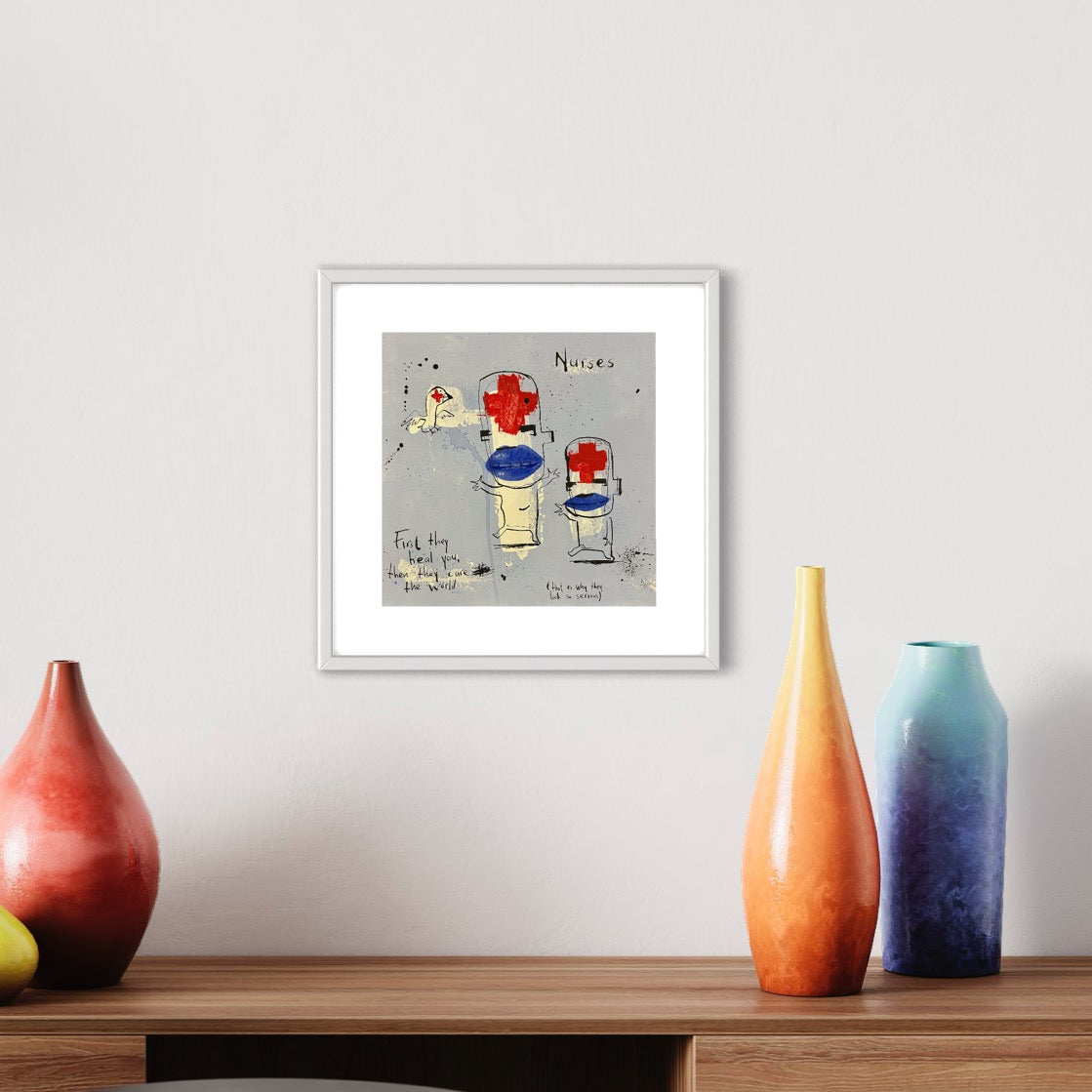 - Size: 14" x 14" original painting in a 17" x 17" white window matting