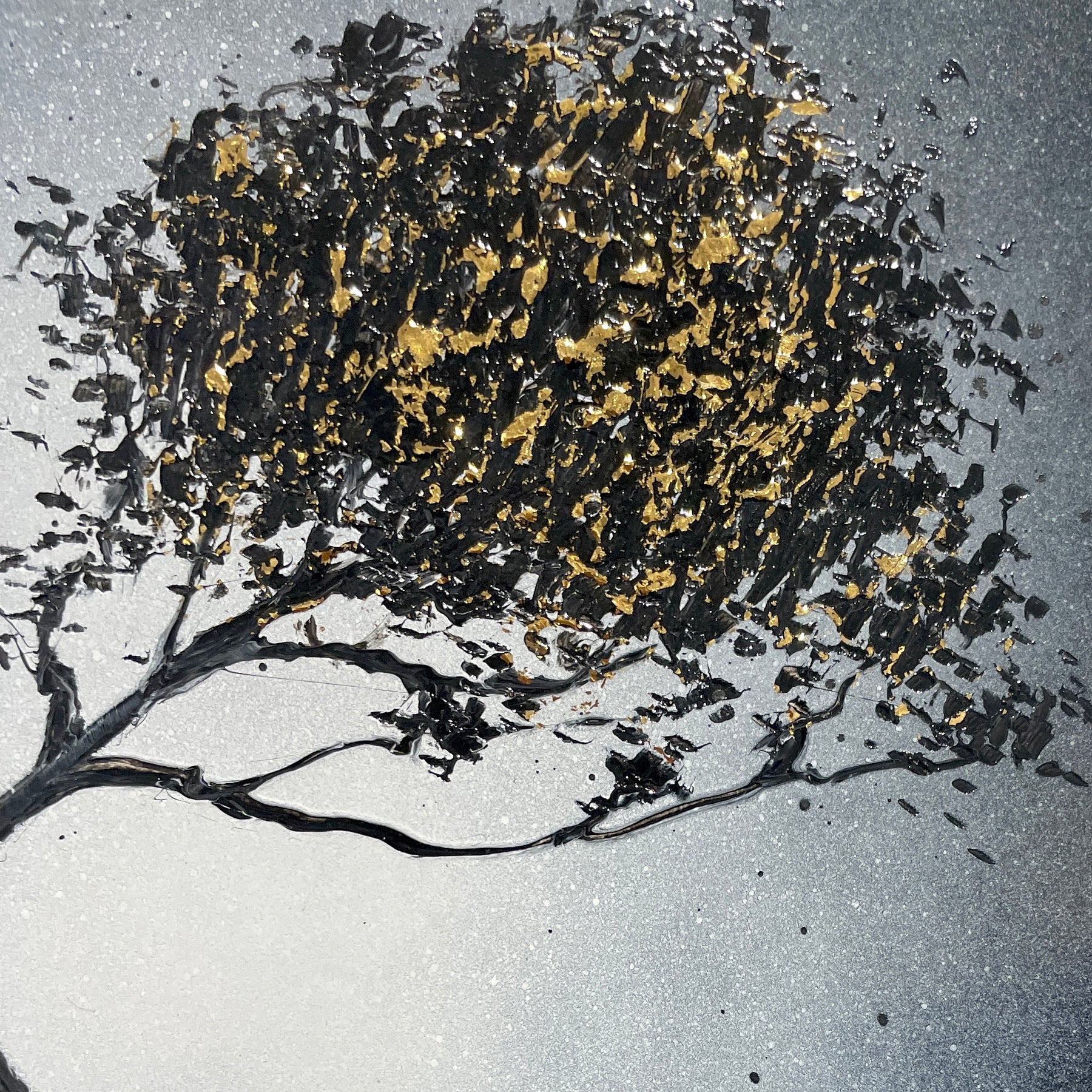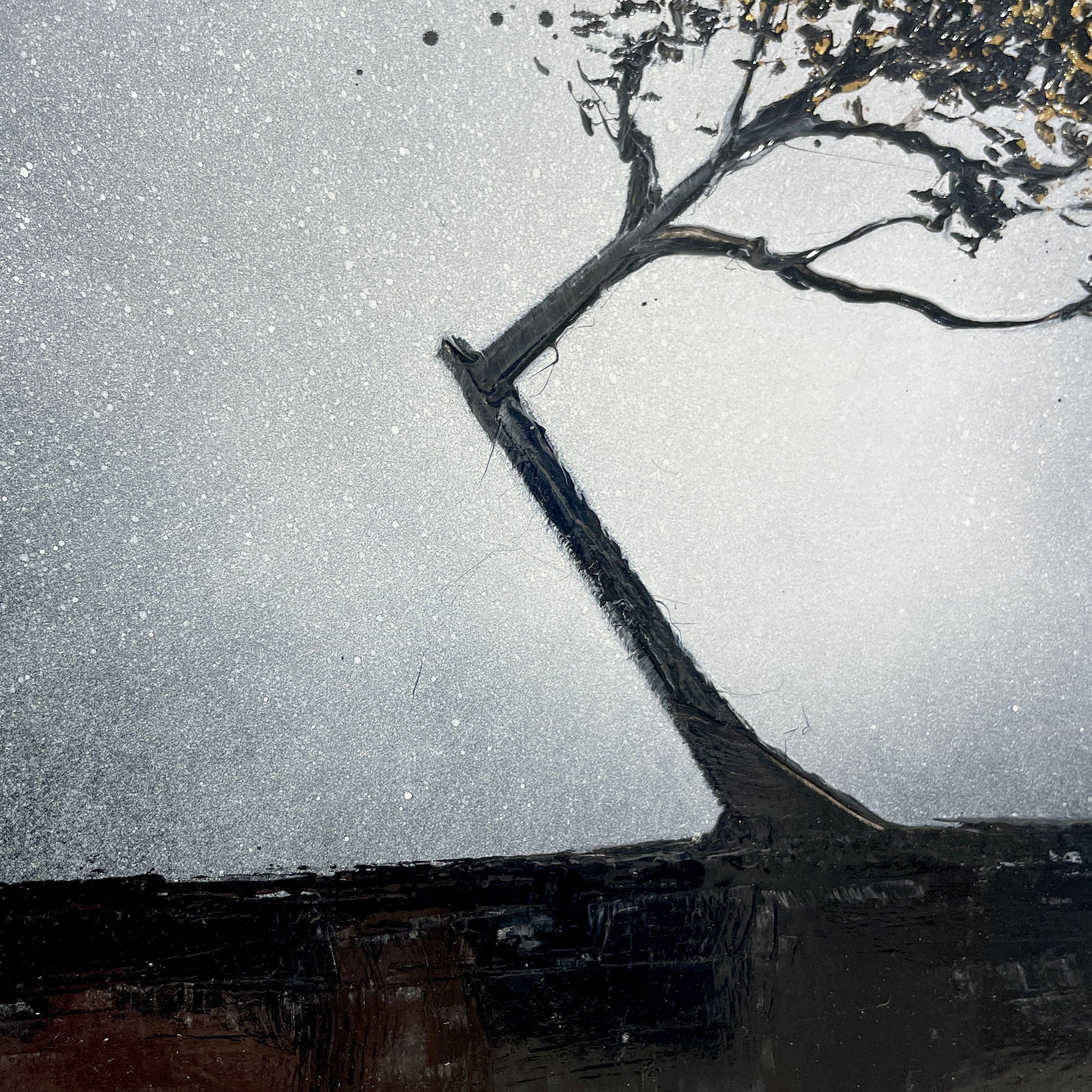 - Lacquer & gold leaf on board