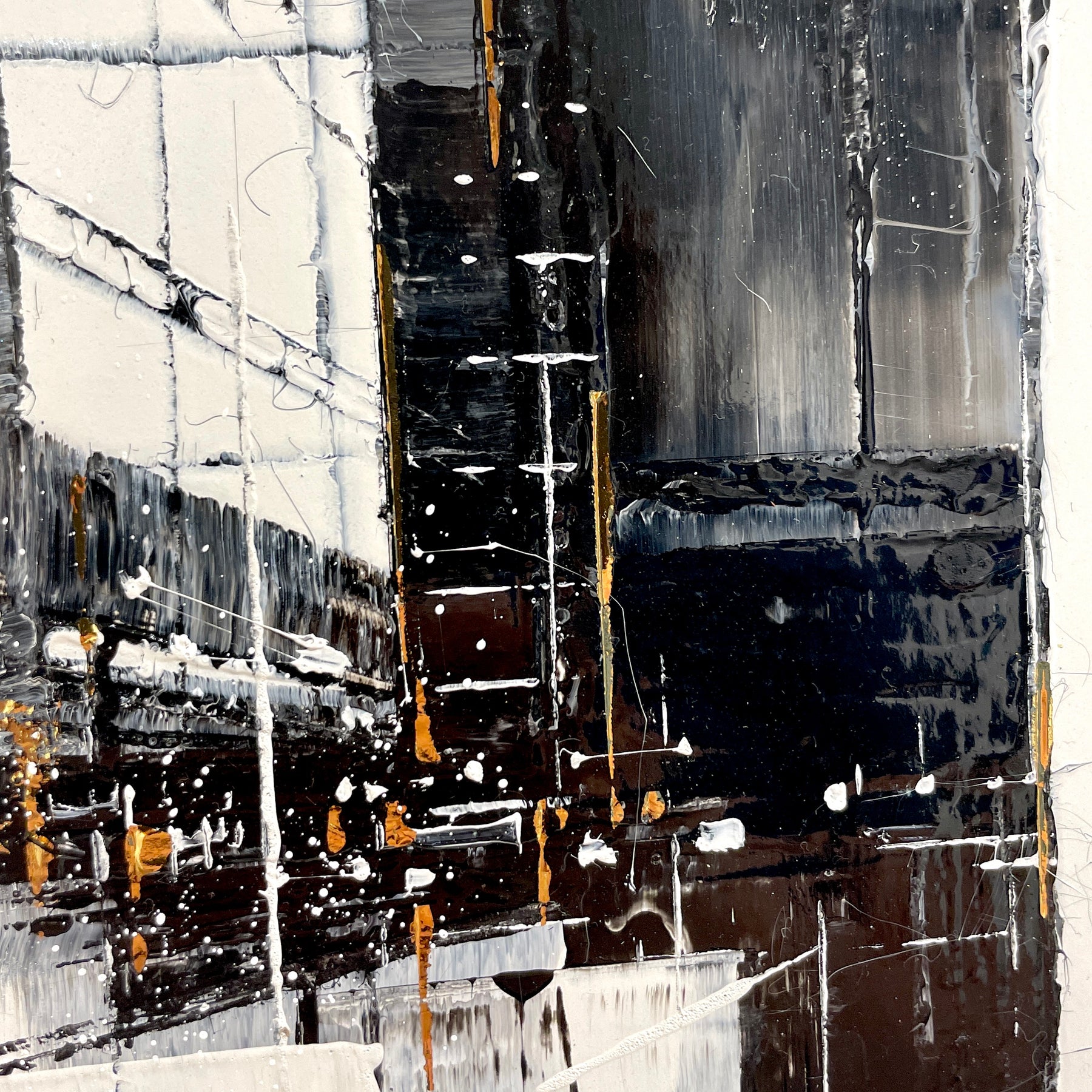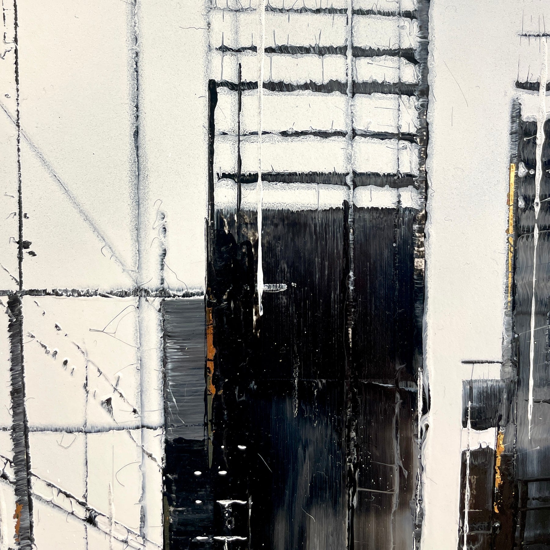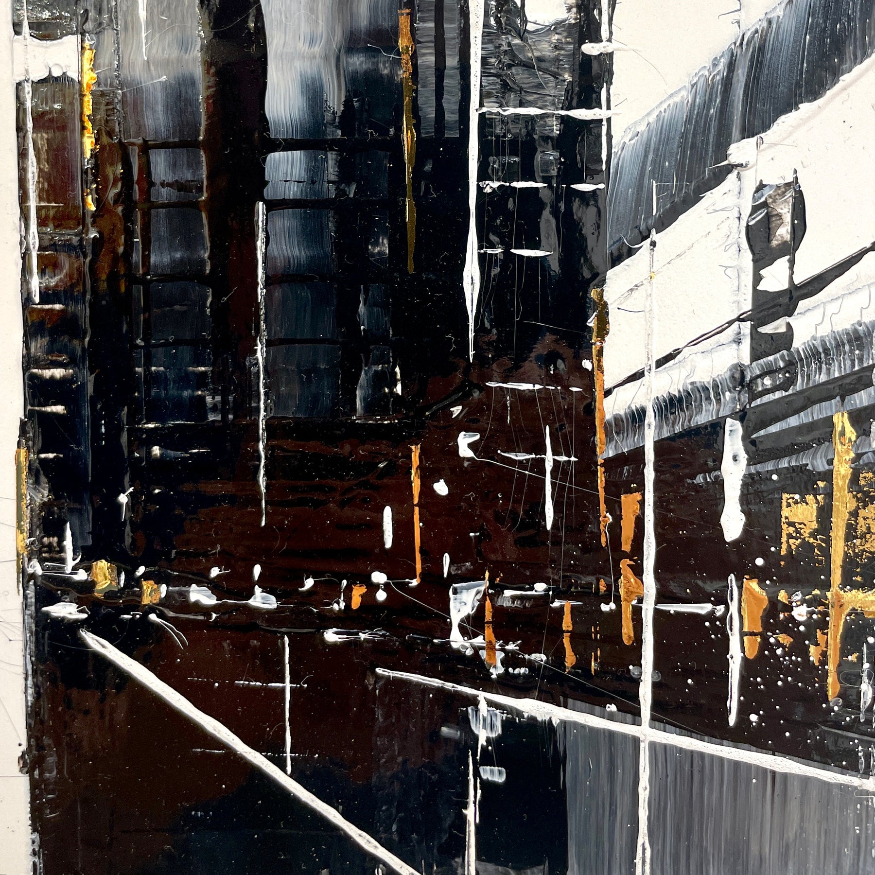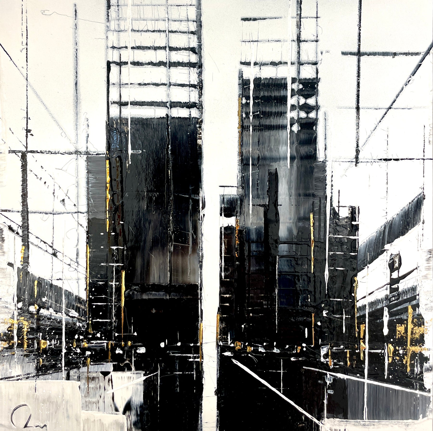 Julien Rey's story begins like all great stories: with an impossible dream. With achromatopsia (the absence of color vision), the artist sees only in black and white. Yet, this condition did not prevent him from traveling to the borders of Burma, from changing his life (he became a Buddhist monk), or from embarking on his art. From his trip to Burma, he brought back a perfect mastery of gold leaf and Chinese lacquer, a characteristic element in his work. His technique based on lacquer worked with a knife and gold leaf inlays places light at the center of his works. Marked by Zen philosophy, he creates minimal compositions that appear as suspended moments and poetic pauses. Julien Rey takes us on a journey through his paintings to urban landscapes and far-off lands.