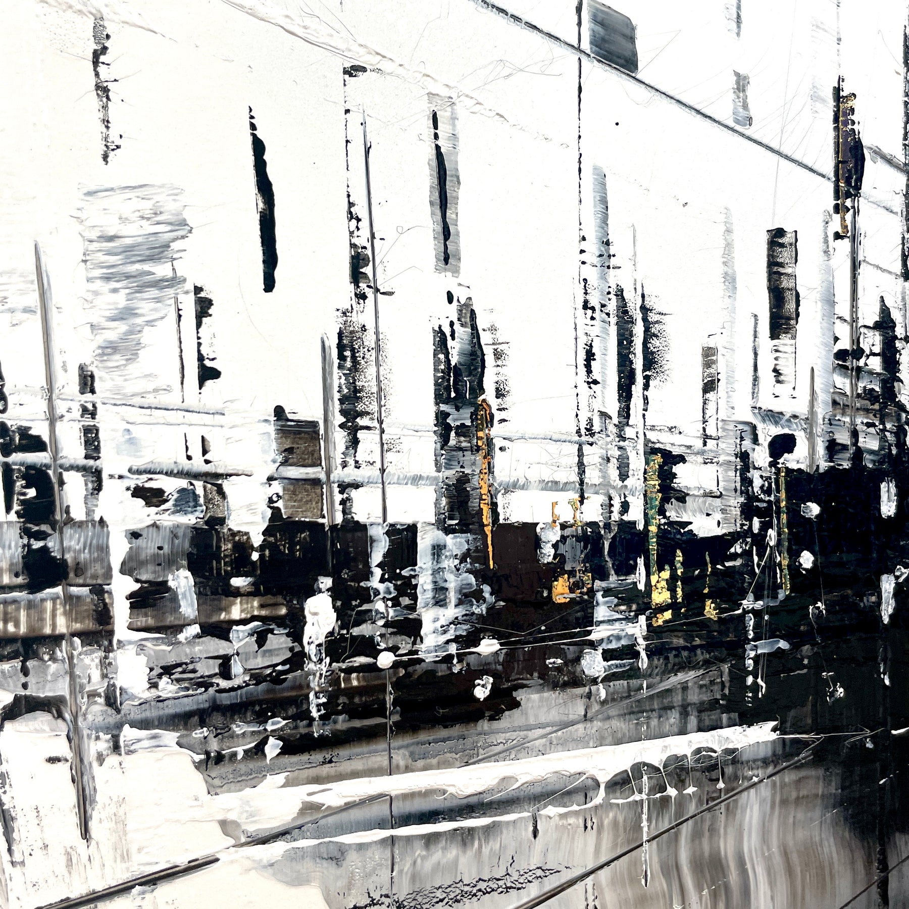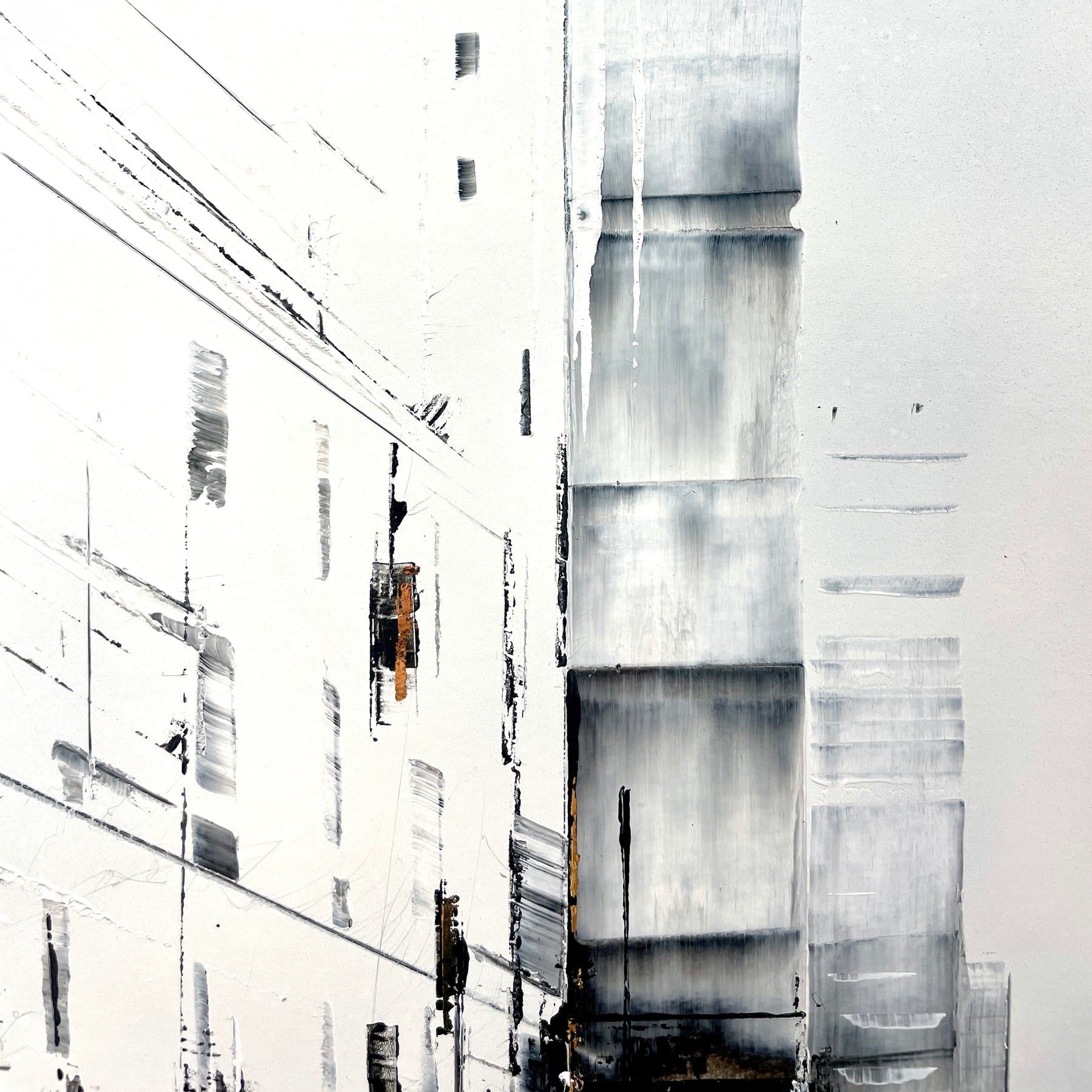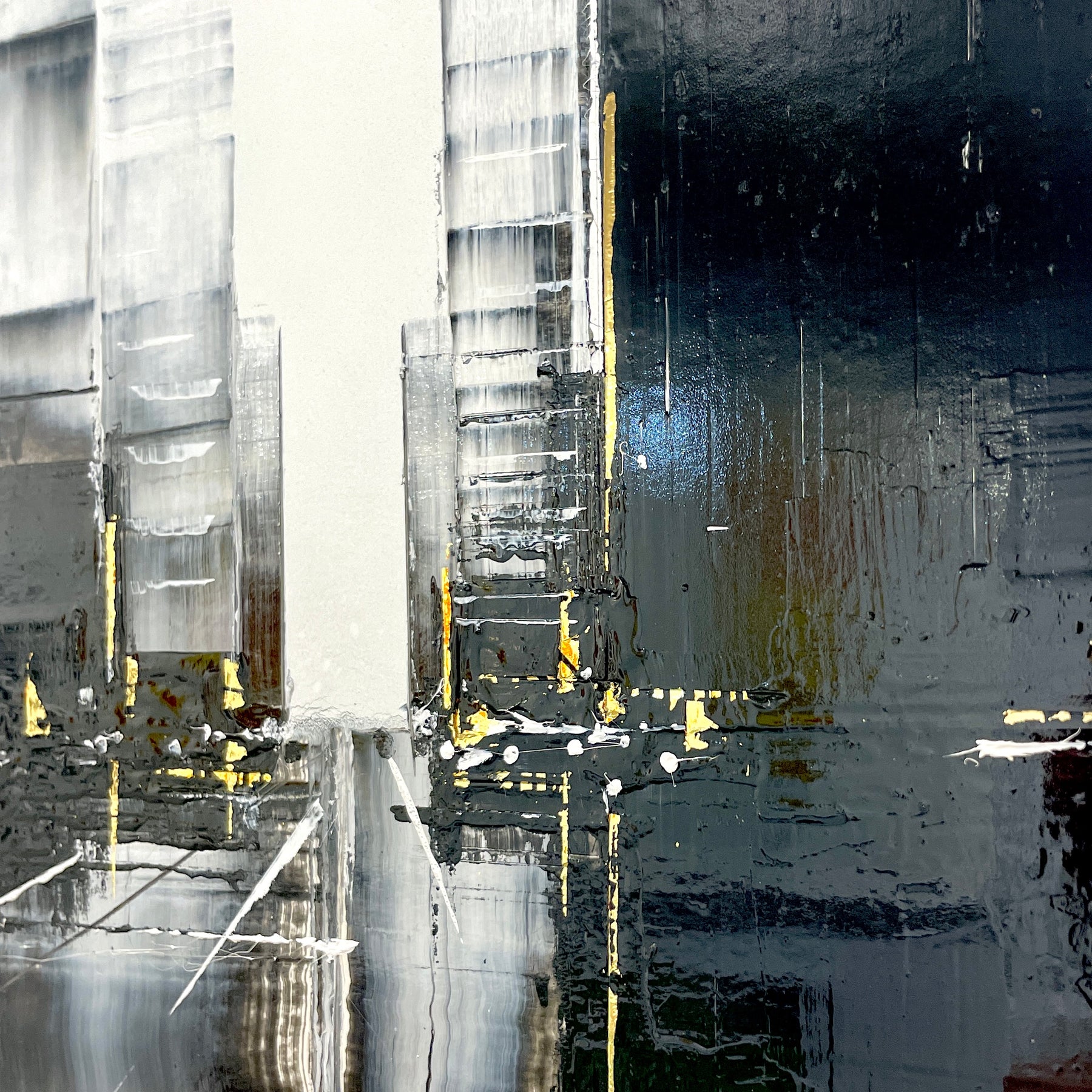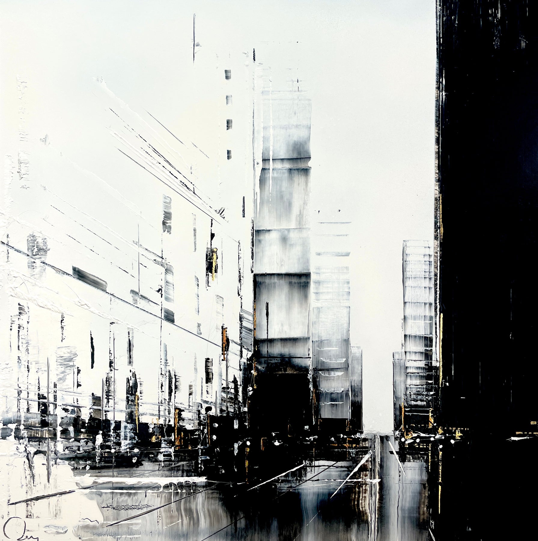 Julien Rey's story begins like all great stories: with an impossible dream. With achromatopsia (the absence of color vision), the artist sees only in black and white. Yet, this condition did not prevent him from traveling to the borders of Burma, from changing his life (he became a Buddhist monk), or from embarking on his art. From his trip to Burma, he brought back a perfect mastery of gold leaf and Chinese lacquer, a characteristic element in his work. His technique based on lacquer worked with a knife and gold leaf inlays places light at the center of his works. Marked by Zen philosophy, he creates minimal compositions that appear as suspended moments and poetic pauses. Julien Rey takes us on a journey through his paintings to urban landscapes and far-off lands.