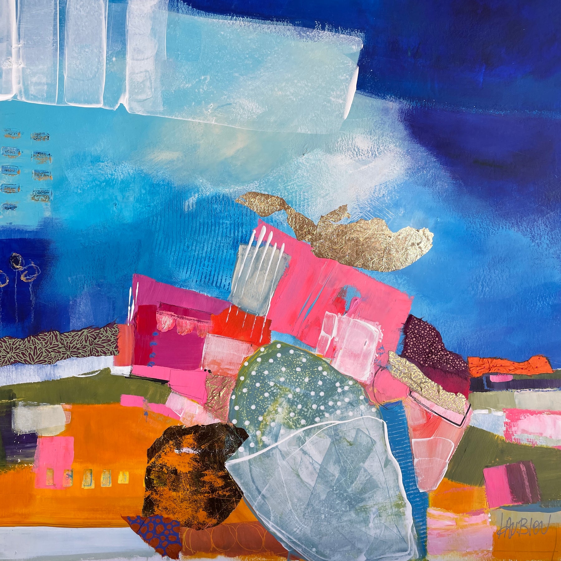 Growing up near the banks of the Loire river in France, abstract expressionist painter Lau Blou fell in love with the warm colors and softness of her natural surroundings. Her abstract paintings hint at landscapes, textured with paper and fabrics, gold and silver leaf, acrylic, and glazes. In her works, Lau Blou finds a masterful balance between chaos and negative space.