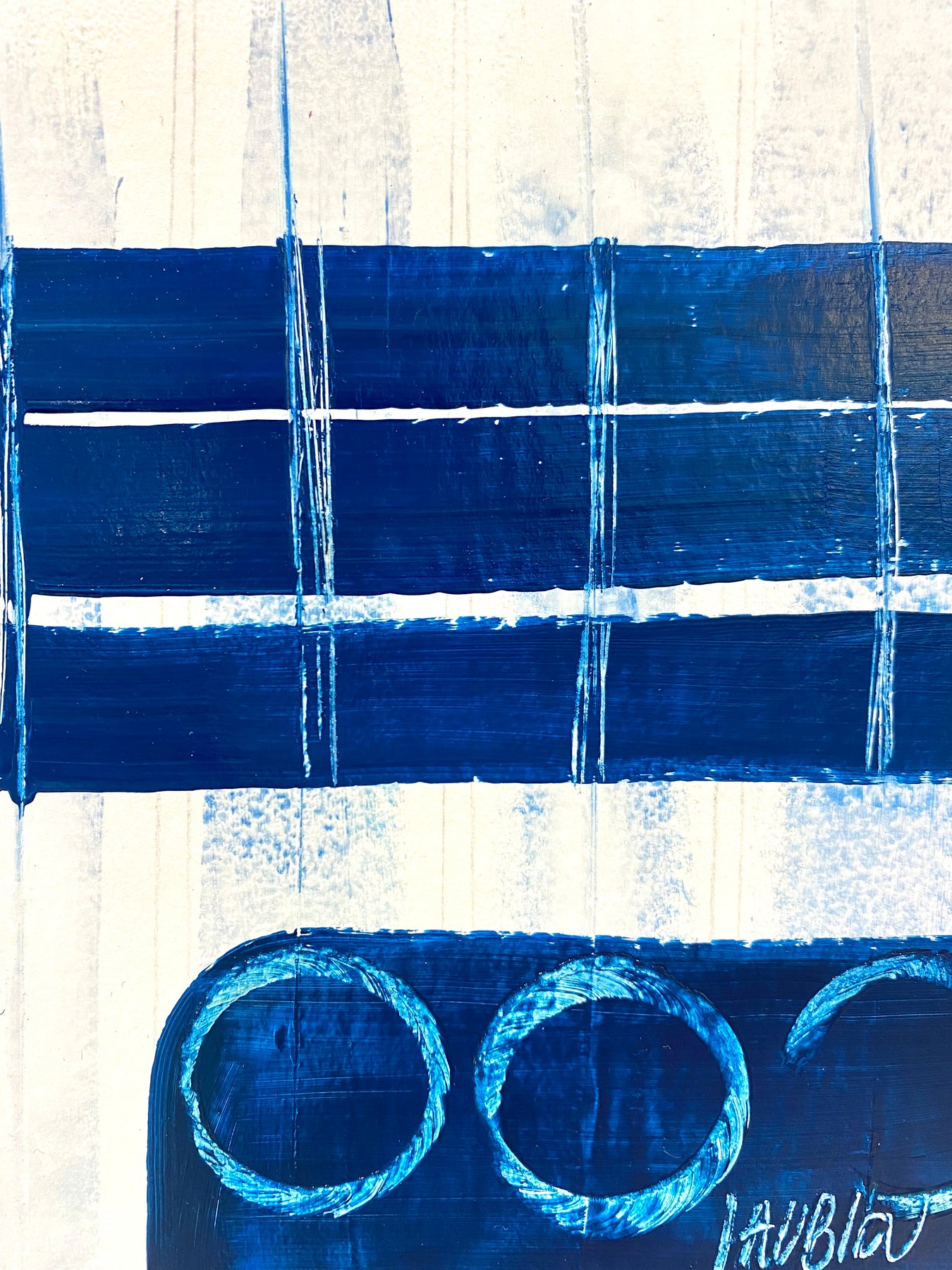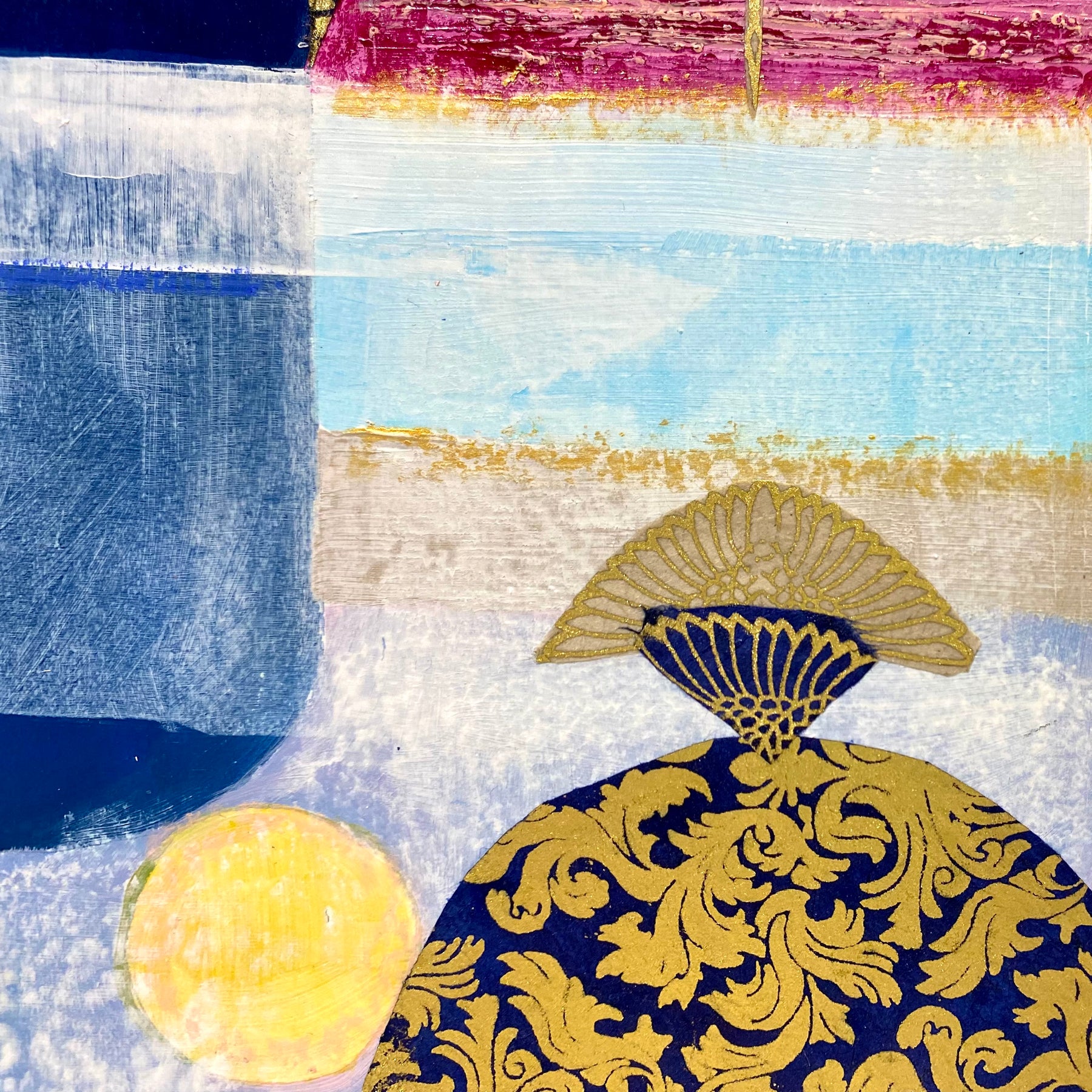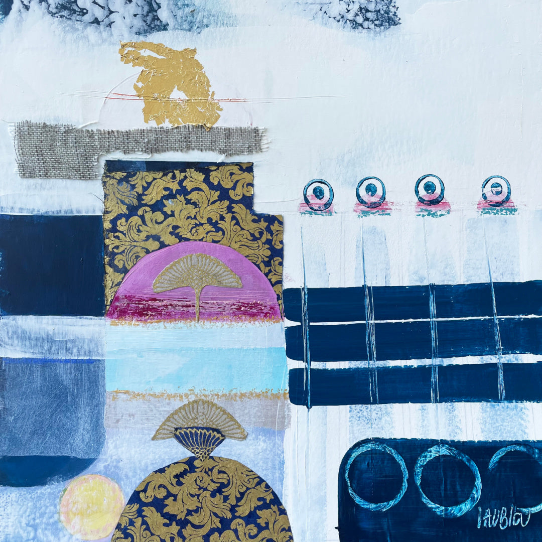 Growing up near the banks of the Loire river in France, abstract expressionist painter Lau Blou fell in love with the warm colors and softness of her natural surroundings. Her abstract paintings hint at landscapes, textured with paper and fabrics, gold and silver leaf, acrylic, and glazes. In her works, Lau Blou finds a masterful balance between chaos and negative space.