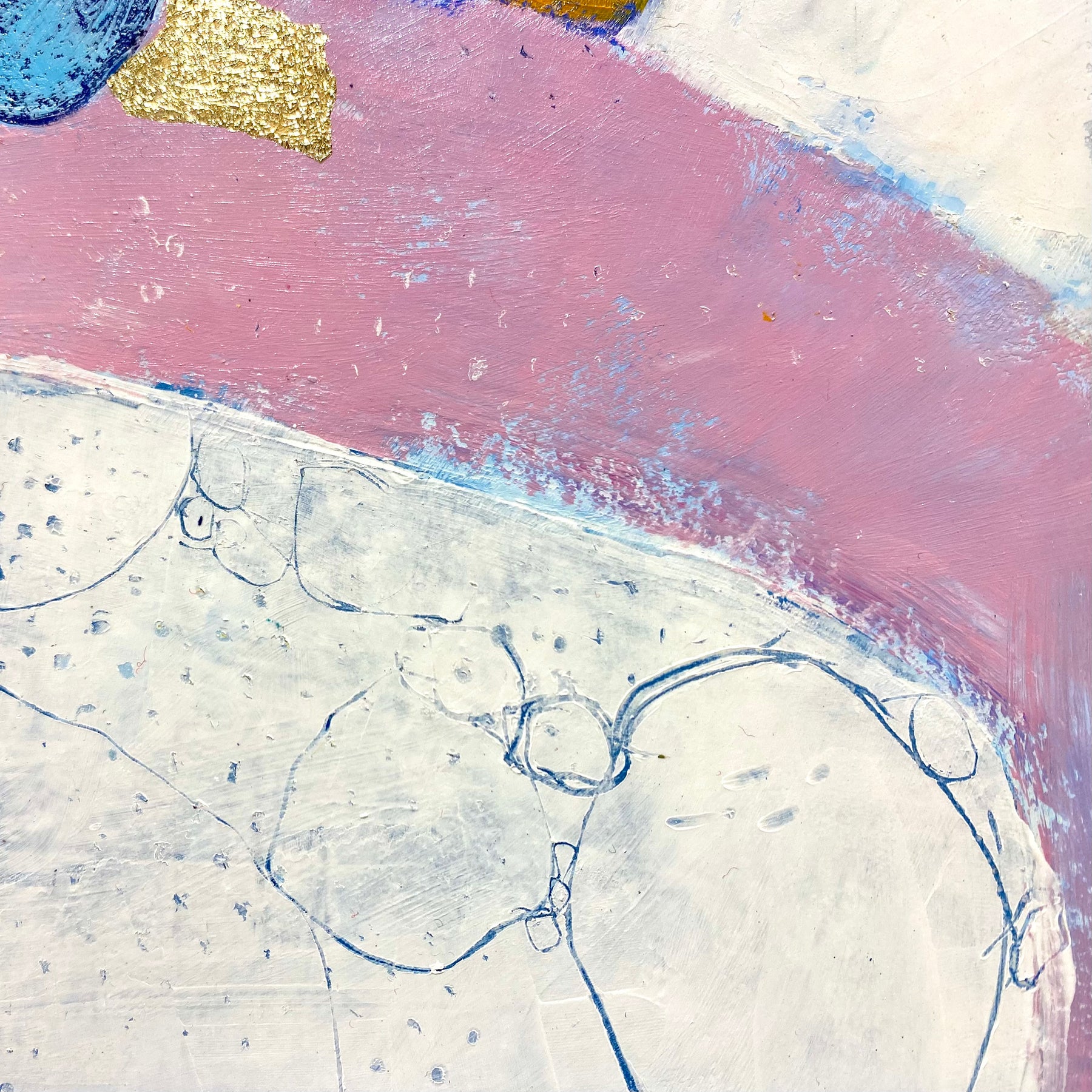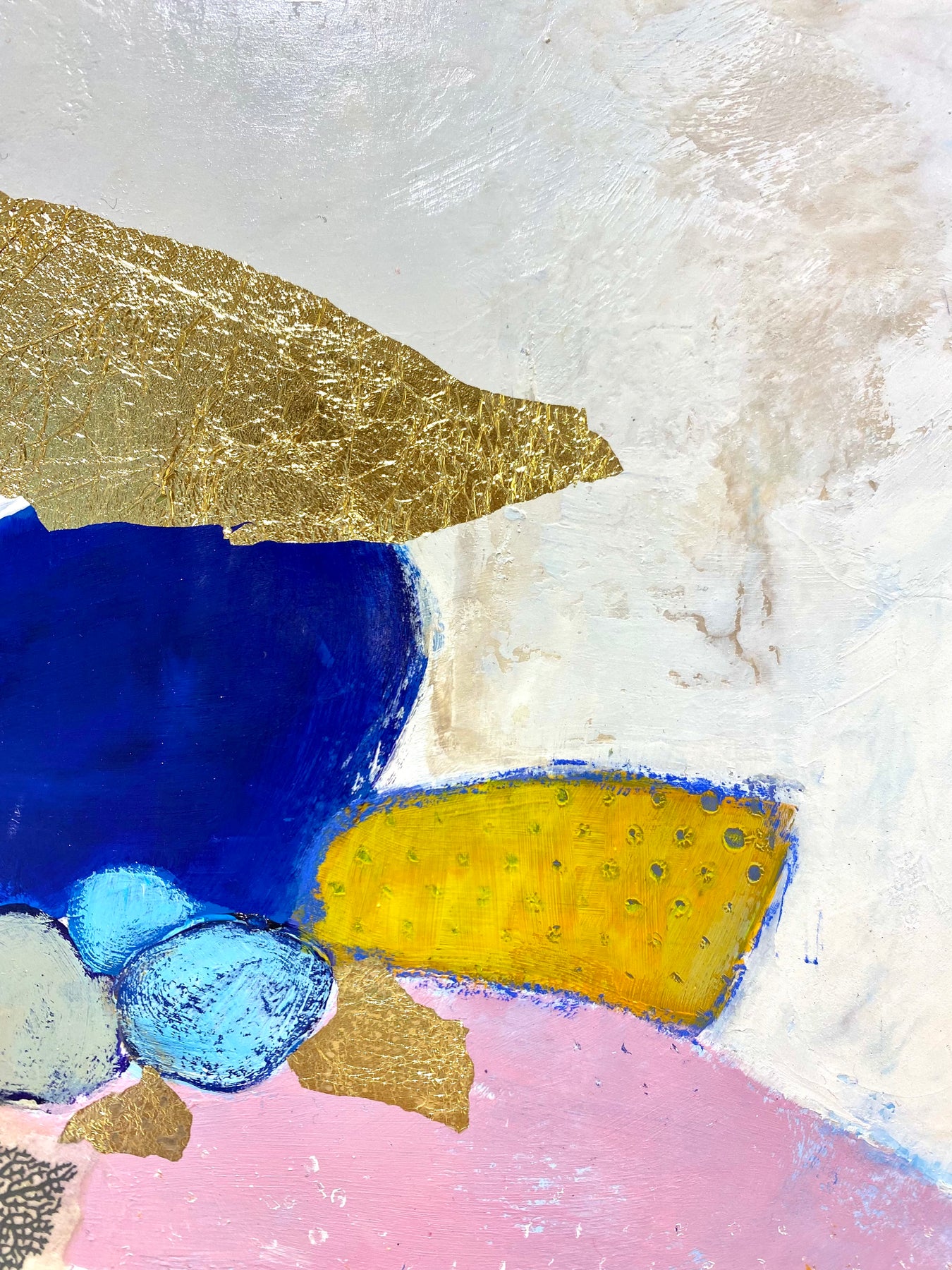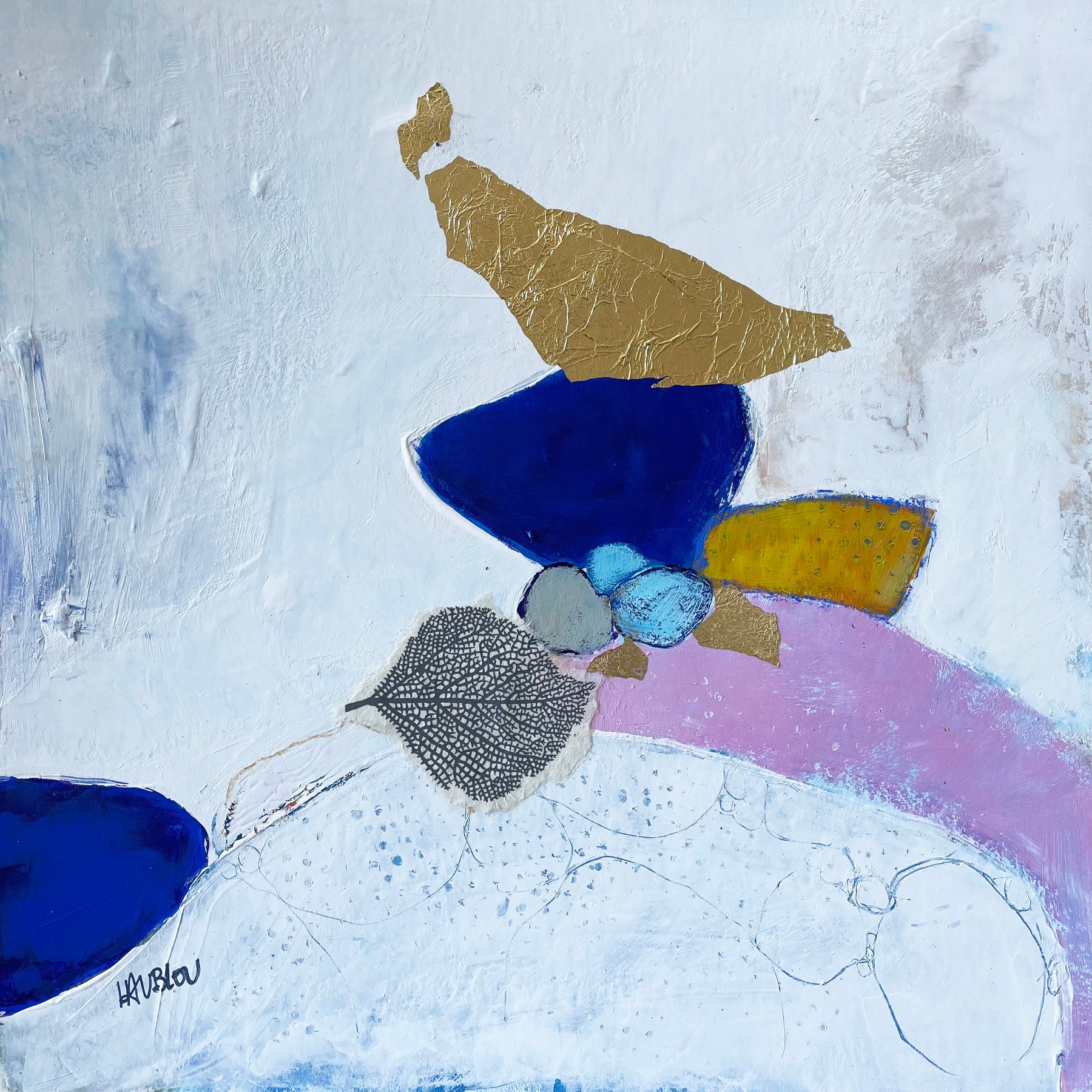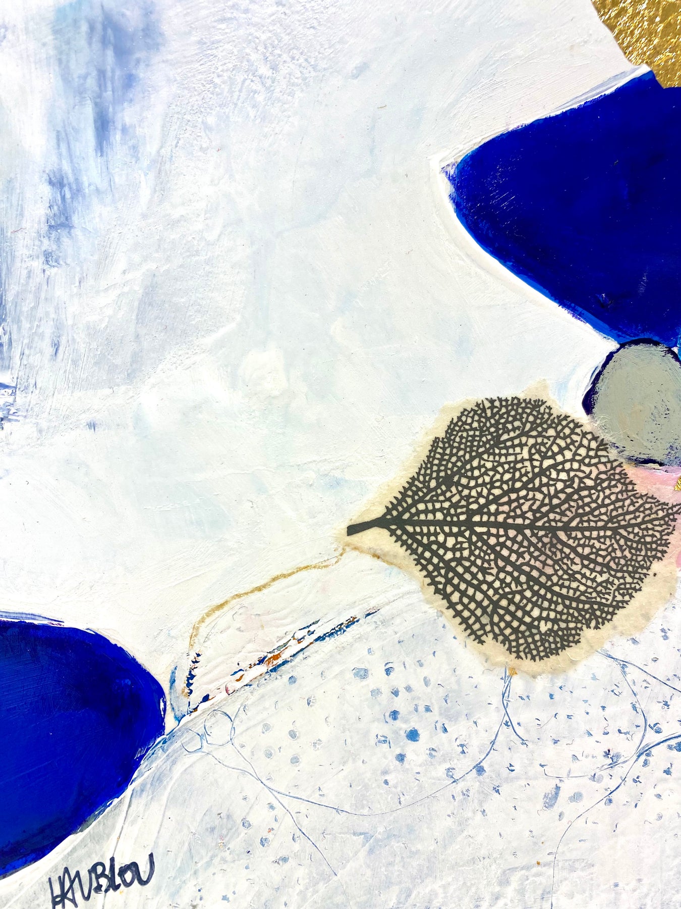 Growing up near the banks of the Loire river in France, abstract expressionist painter Lau Blou fell in love with the warm colors and softness of her natural surroundings. Her abstract paintings hint at landscapes, textured with paper and fabrics, gold and silver leaf, acrylic, and glazes. In her works, Lau Blou finds a masterful balance between chaos and negative space.