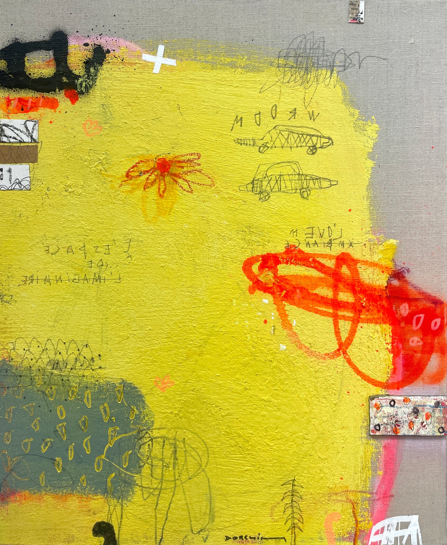 Celebrating uninhibited art, Laurent Dorchin's work invites his audience on a journey where reality and imagination are intimately linked. He practices a happy and spontaneous art and expresses his joy, his emotion, and his impulses through dynamic characters. The artist pays particular attention to the balance between matter, color and shapes, and places humor and laughter at the center of his work.
