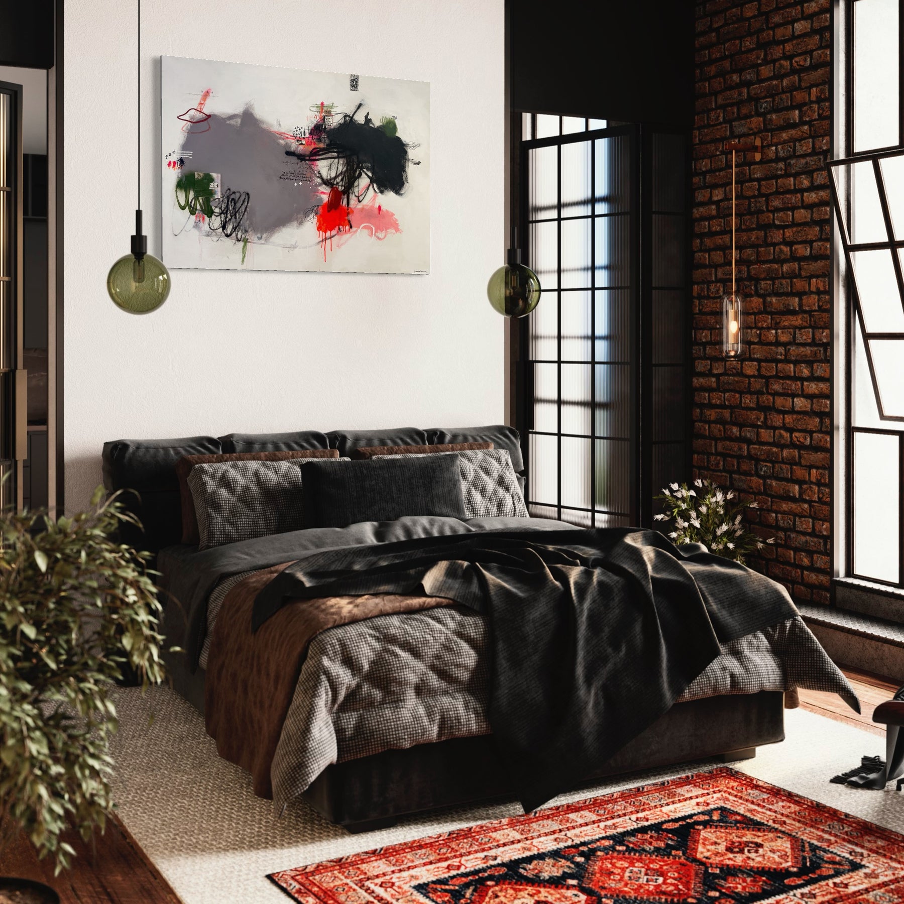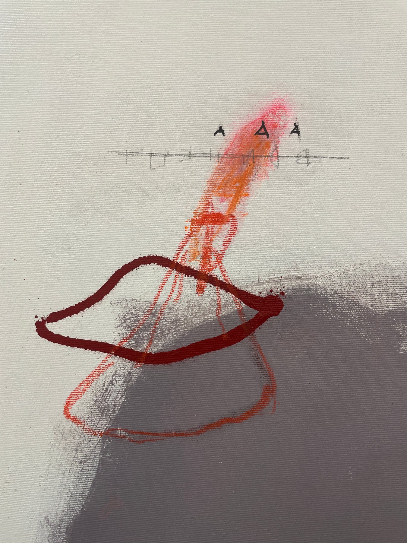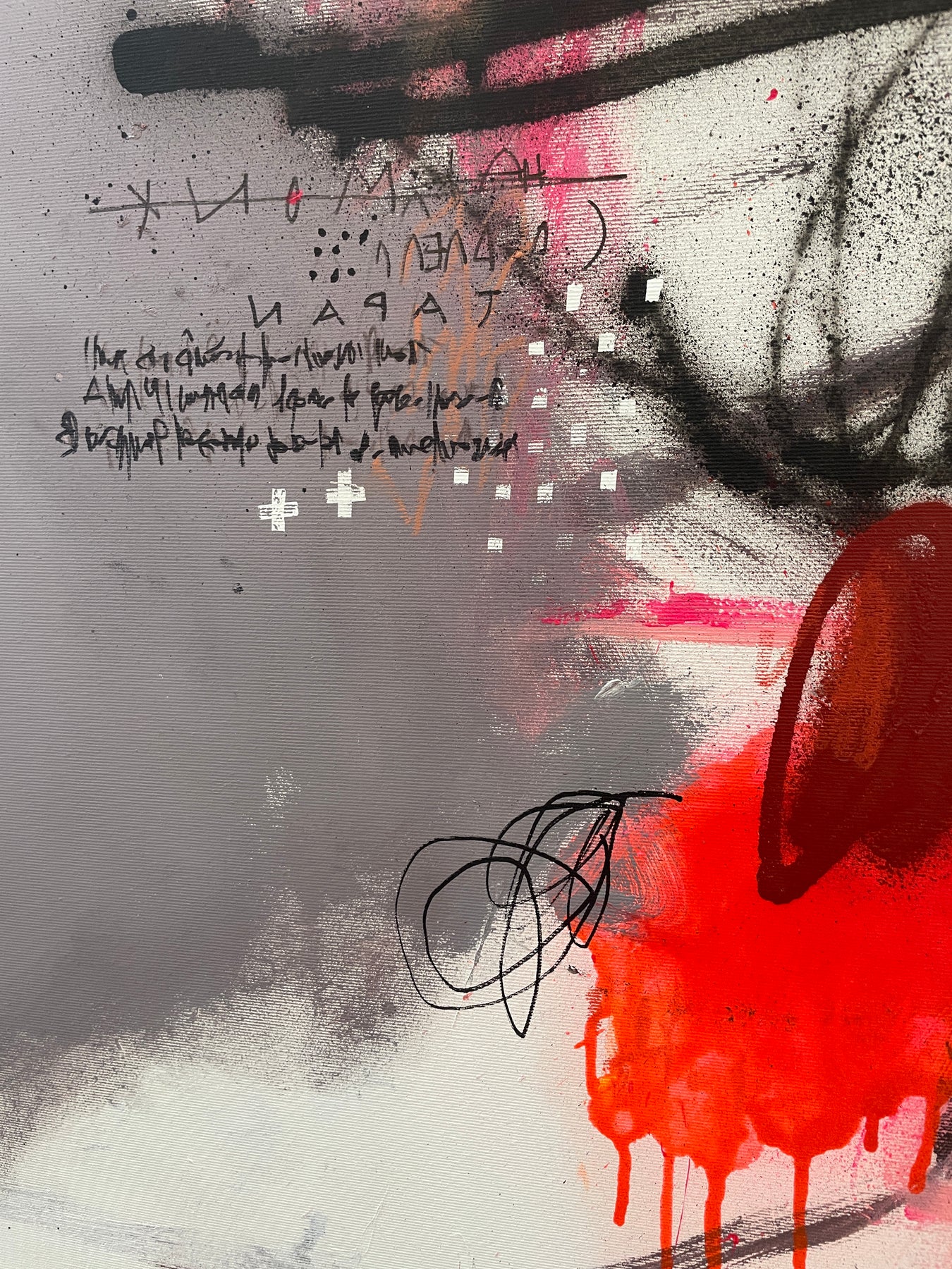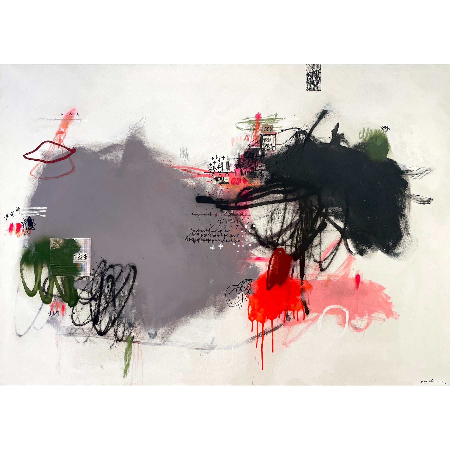 • Acrylic paint, collage, graphite, pastel and spray paint on canvas