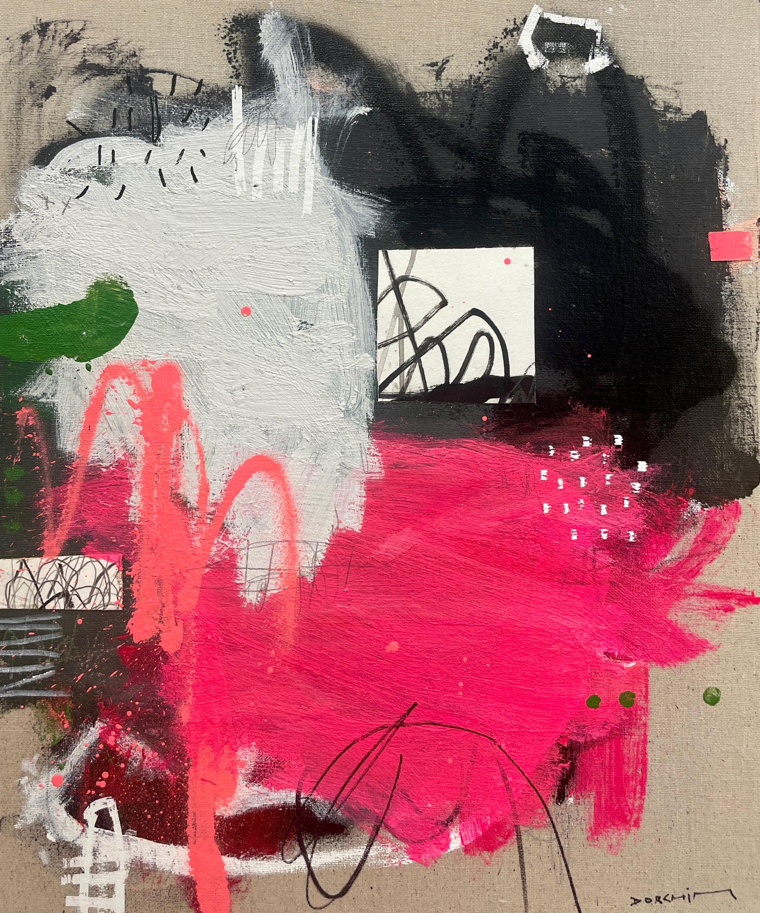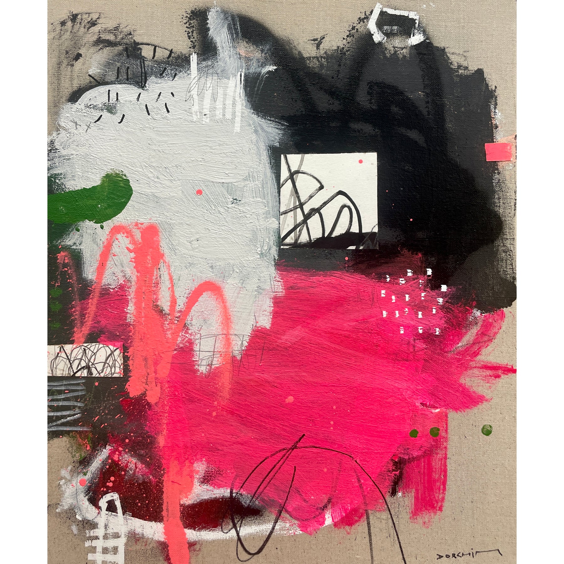 abstract expressionism gestural painting pink white black green dots scribble doodles