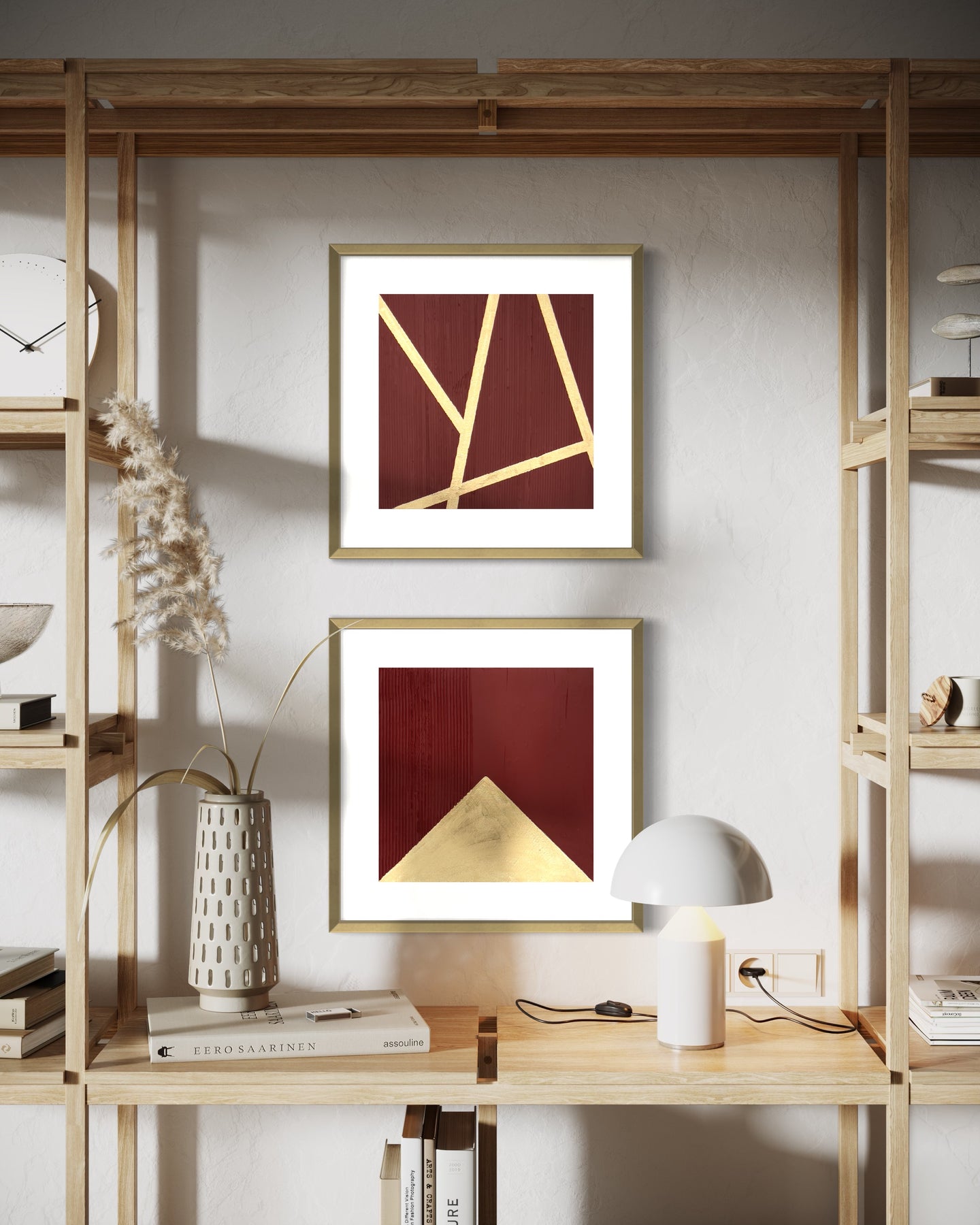 Red, Maroon, Gold, Geometric, Texture, Contemporary, Abstract, Female Artist