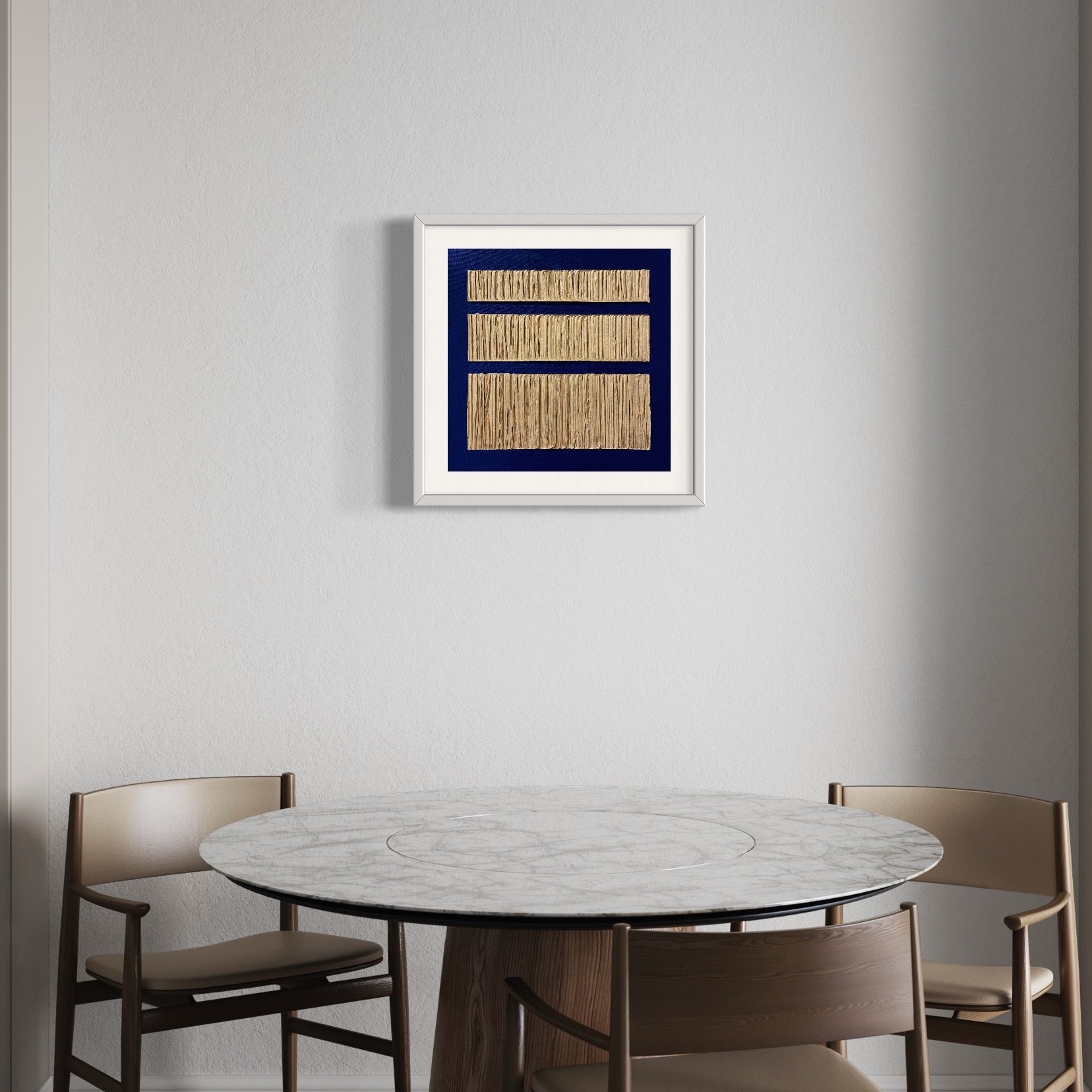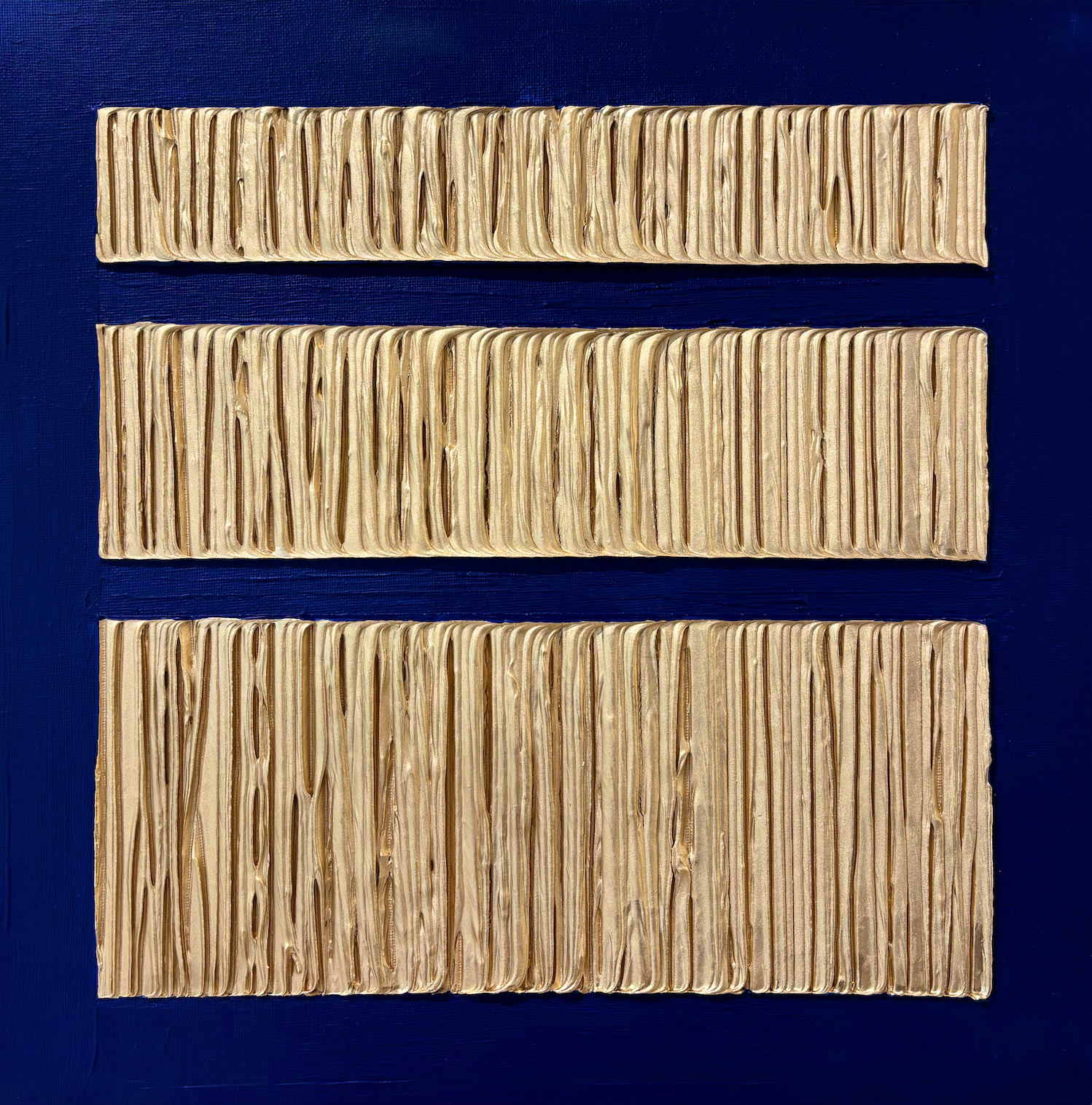 Jerilee, a Philadelphia-based artist working under the name ‘Lee in Cerulean’, creates striking minimalist pieces. For Lee, simple curves, asymmetry, and overlapping forms reflect the beautiful world around us—and find, within our surroundings, the continuity, serendipity, and at times mundane nature of everyday life. Deriving from the Japanese Wabi-Sabi philosophy’s embrace of imperfection, highly textural pieces show Lee’s freeform strokes, using a blend of joint compound, acrylic paint, and a myriad of other media. Under this philosophical orientation, ridges and built-up materials are a reminder that we continue to evolve, just as nature does.