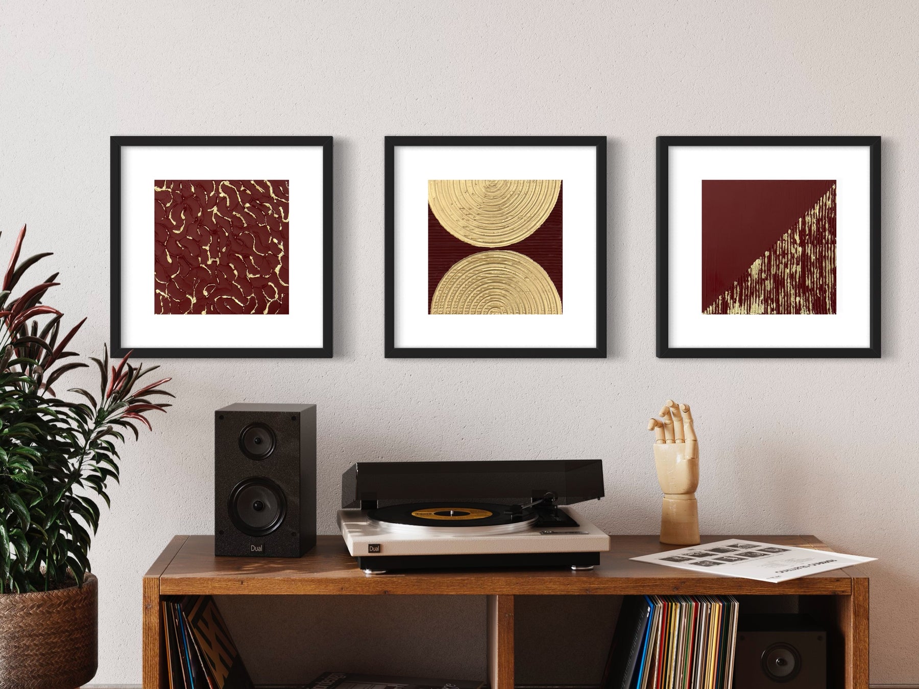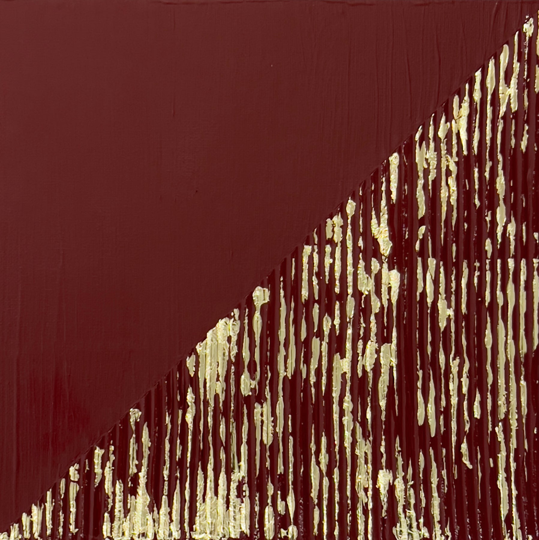 Two Tone, Hard Edge, Geometric, Textural, Maroon, Red, Gold, Metalic