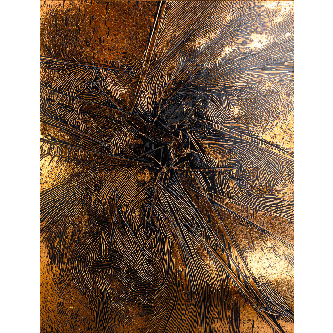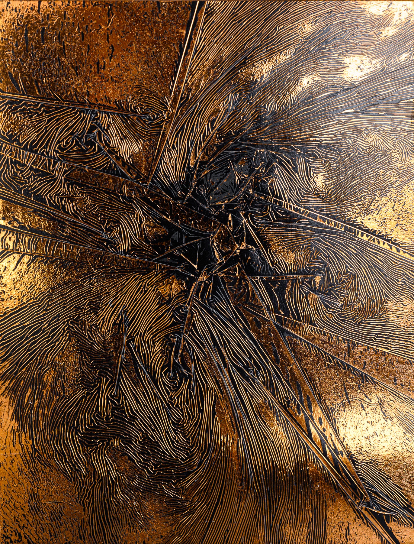 Copper Texture No. 25, artwork by M. Clark. Copper foil on illustration board mounted to sintra panel. 10.5 by 8 by 0.5 inches.