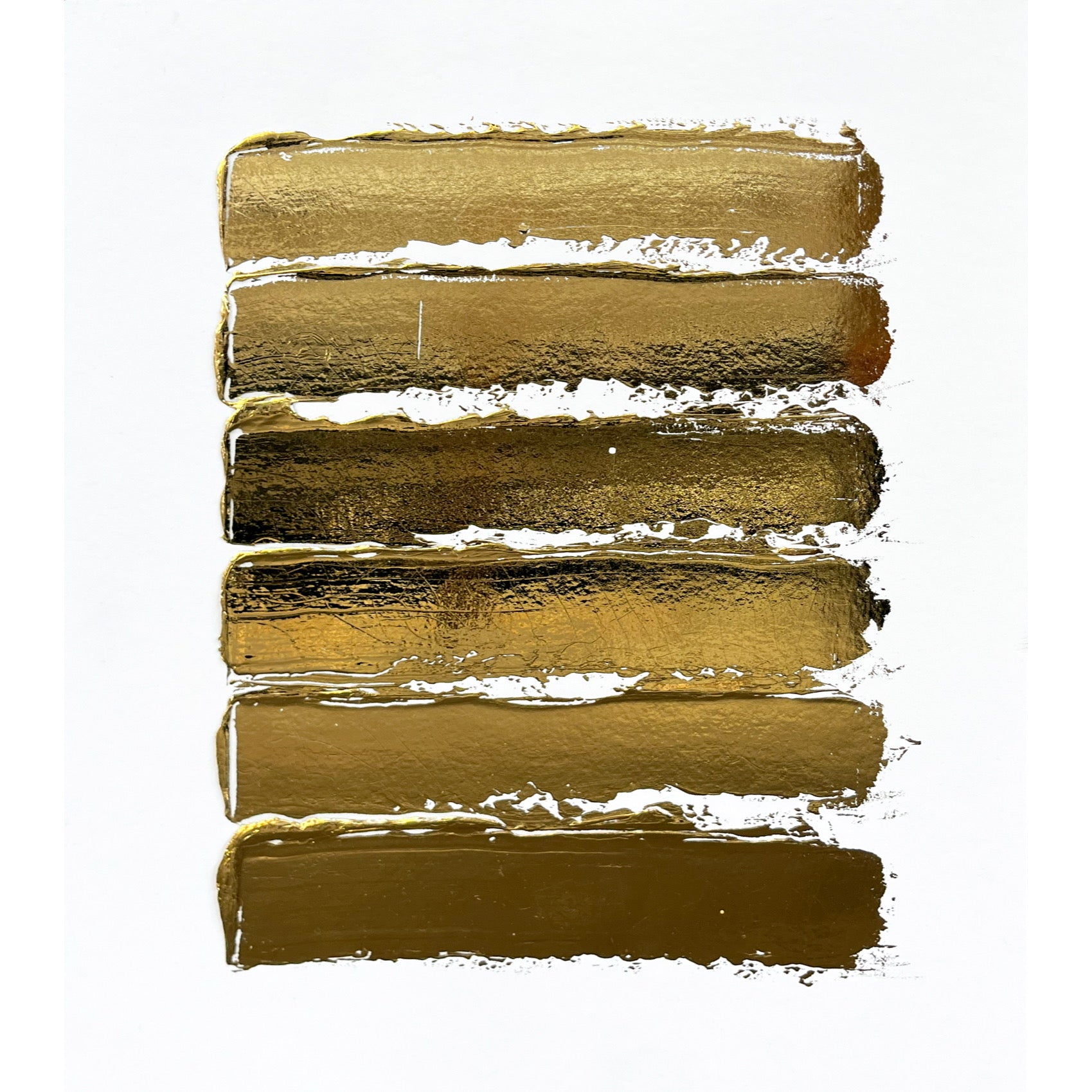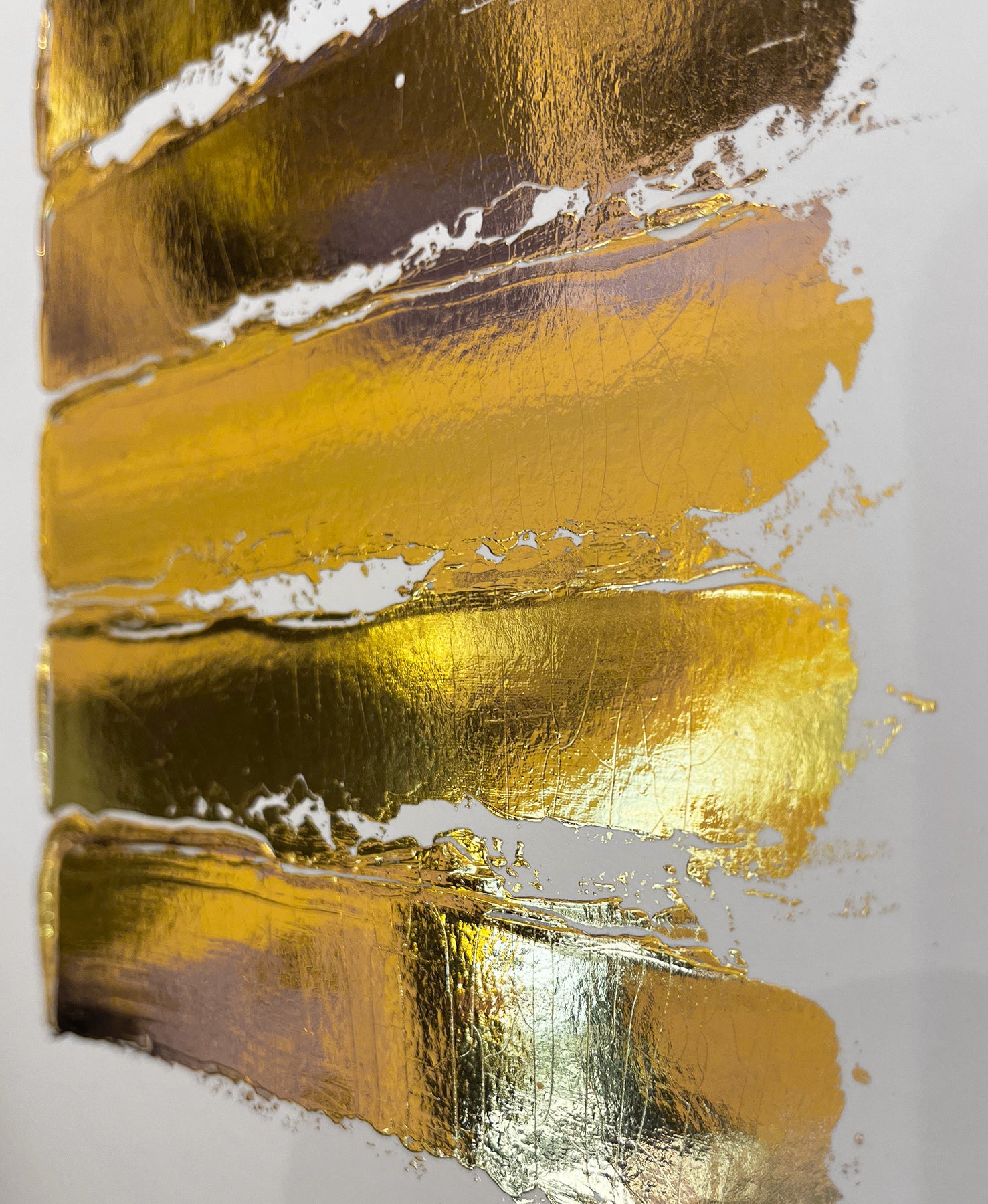 Golden Texture No. 375 by M. Clark, thick gold brush strokes on white background, gold foil artwork, abstract