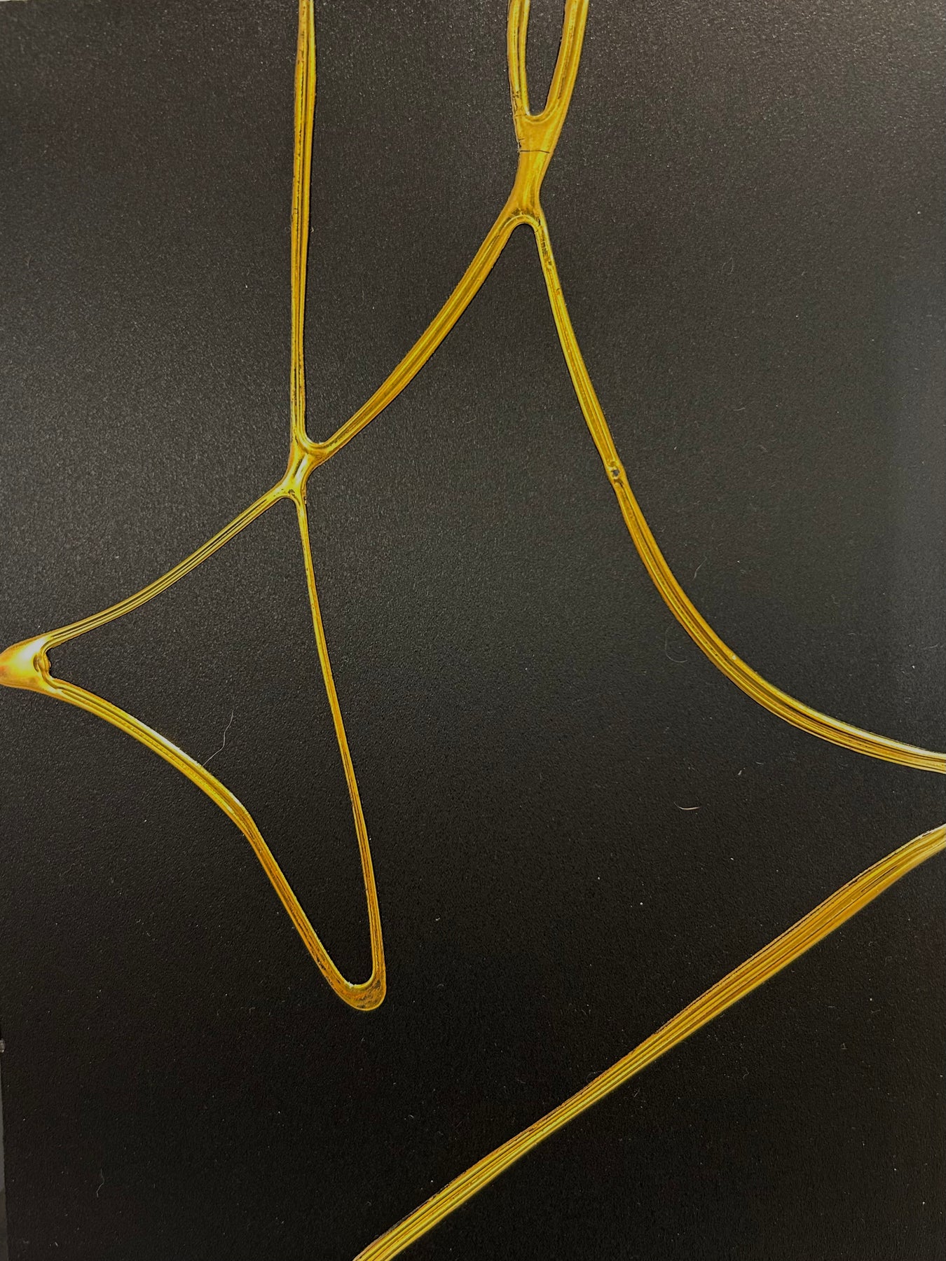 NYC based artist, M. Clark, creates light-reflecting works wherein the artist manipulates heat and pressure to fix metallic foil onto various surfaces -- there is no paint on her artworks, only gold, copper, or silver foil. Clark often uses a palette knife to help texturize her highly reflective, modern and minimalist works of art.