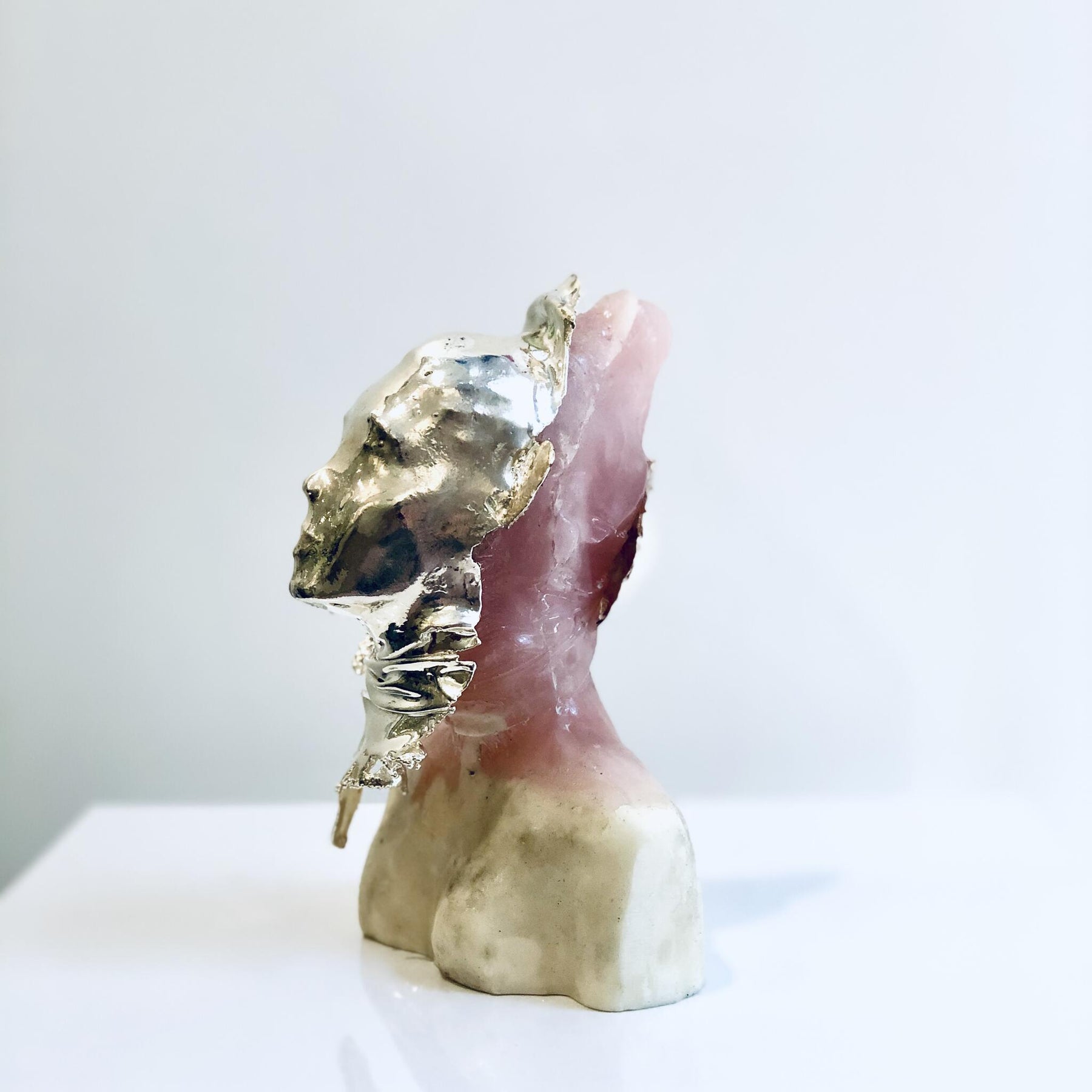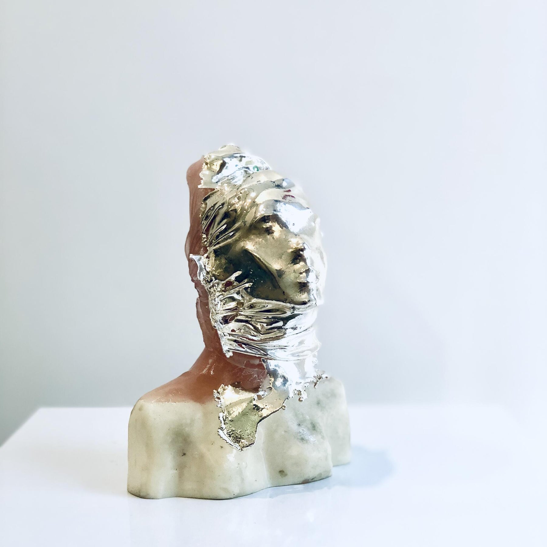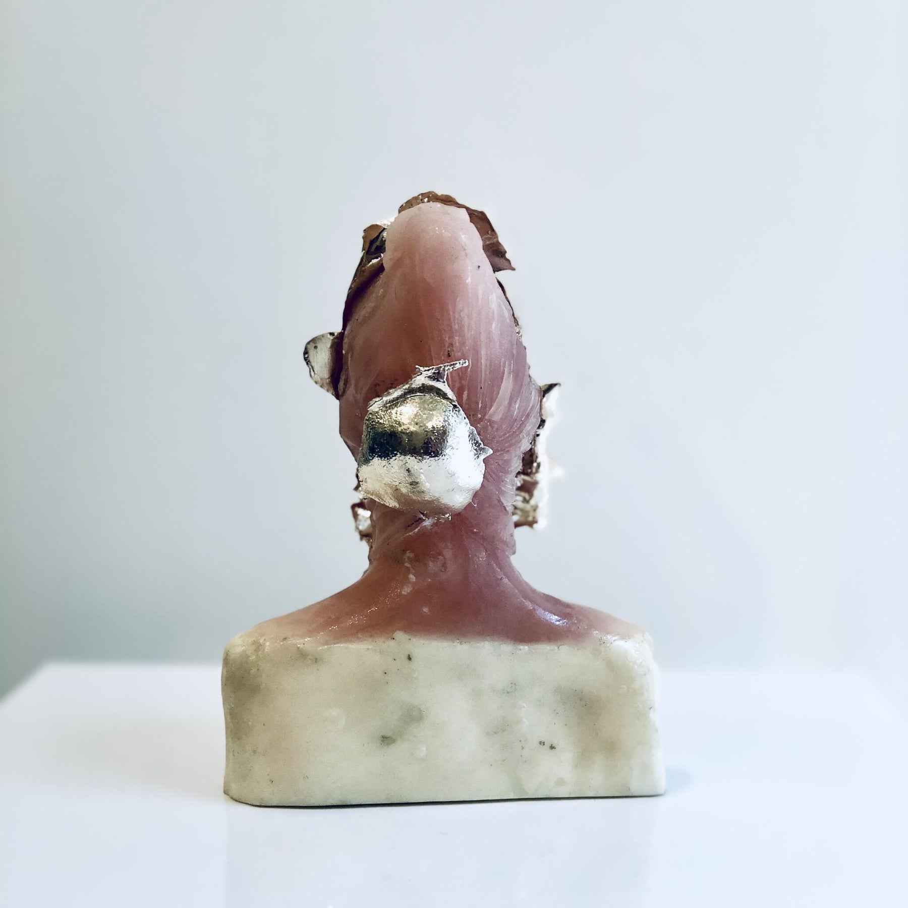 Michal Cimala is a Prague-based sculptor, painter, designer, and DJ who re-appropriates uniquely aggressive figurative imagery, and then collages, paints, edits, and sculpts psychologically confronting artworks. His artistry knows no bounds–– he uses collage, acrylic, silkscreen, airbrush, iron, and acoustic foam to breathe life into his unique art objects. Inspired by baroque sculptor Messerschmidt, these obtrusive human heads are modeled by hand in clay and then cast in molds, an ongoing process of development that can take up to four years.