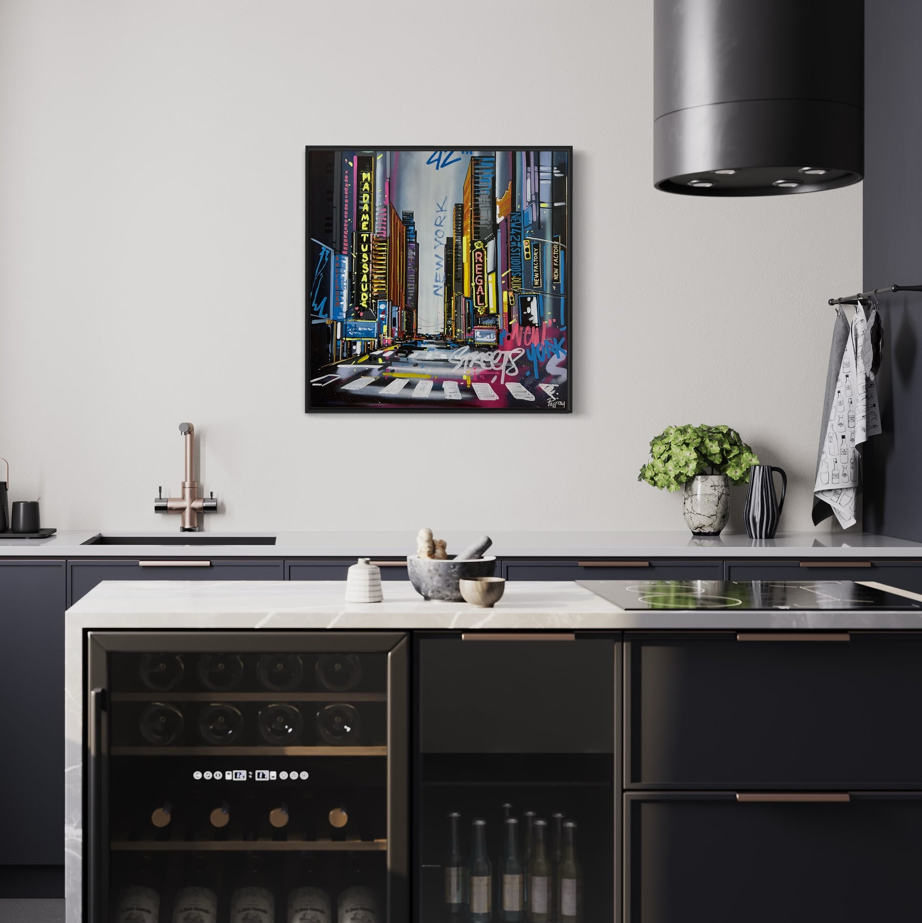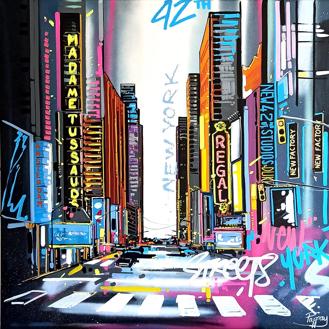 Pappay draws his inspiration from the chaos of cities and their architecture, as well as from graphic design and street art. He has always been fascinated by the relationship between humanity and its environment. The scenes represented in his compositions are devoid of any human presence, where time is suspended, objects and buildings are witnesses of life and history ready to come to life before our eyes. Deeply rooted in urban art, Pappay shines in street art by regularly creating murals.