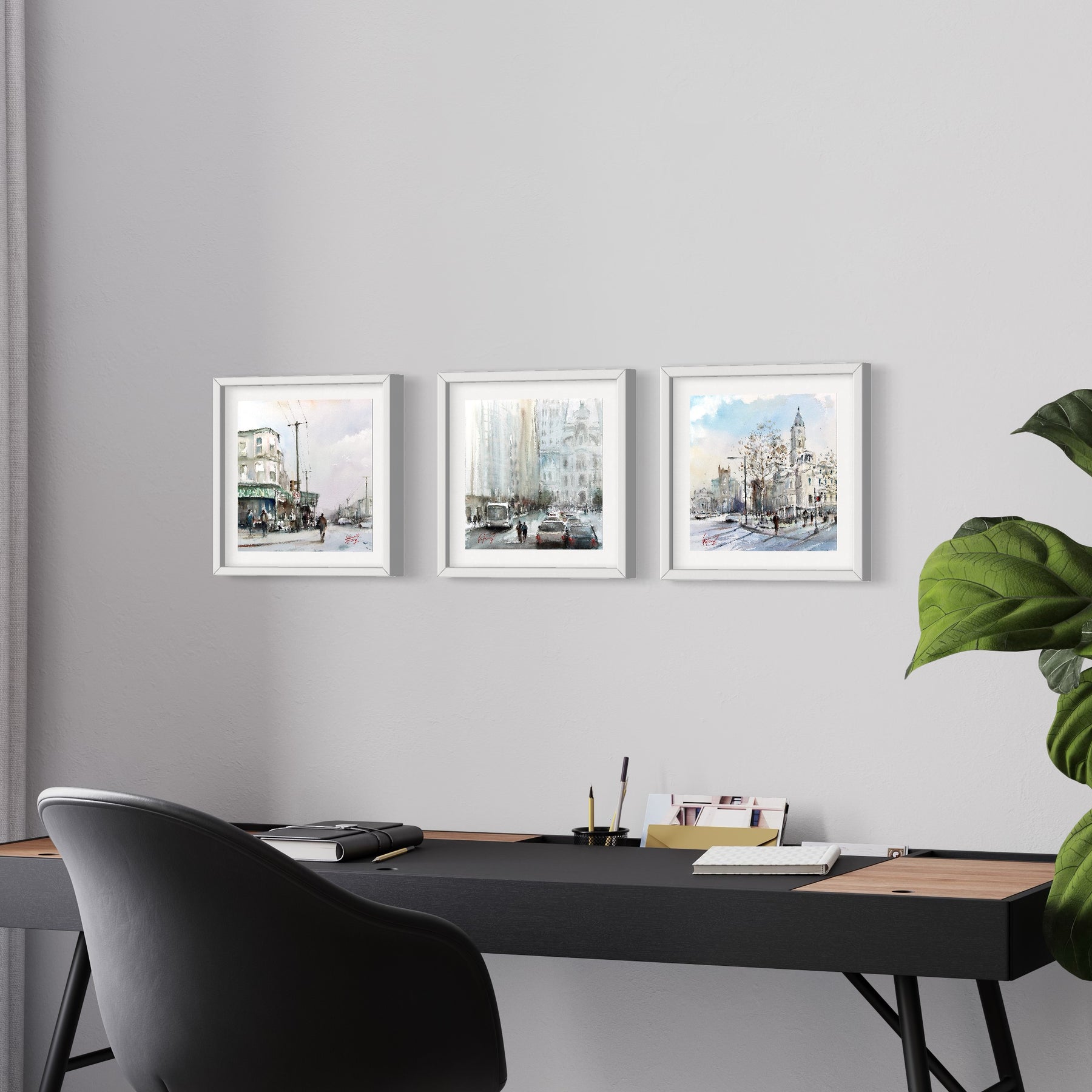 Pierre Gutierrez works in watercolor, creating soft and dreamy landscapes and cityscapes with movement and color. His style is unique, born of graphic design and colorful impressionism. Subtle characters move through his paintings in a fluid dance, inviting the viewer into the artist’s misty realm. Born in Algeria, now living in France, Gutierrez draws inspiration from master impressionists Claude Monet and William Turner.