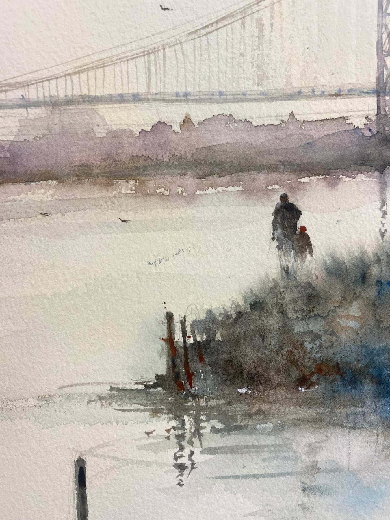 Detail of Morning in Philadelphia, artwork by Pierre Gutierrez. Watercolor on paper. 18 by 12 inches.