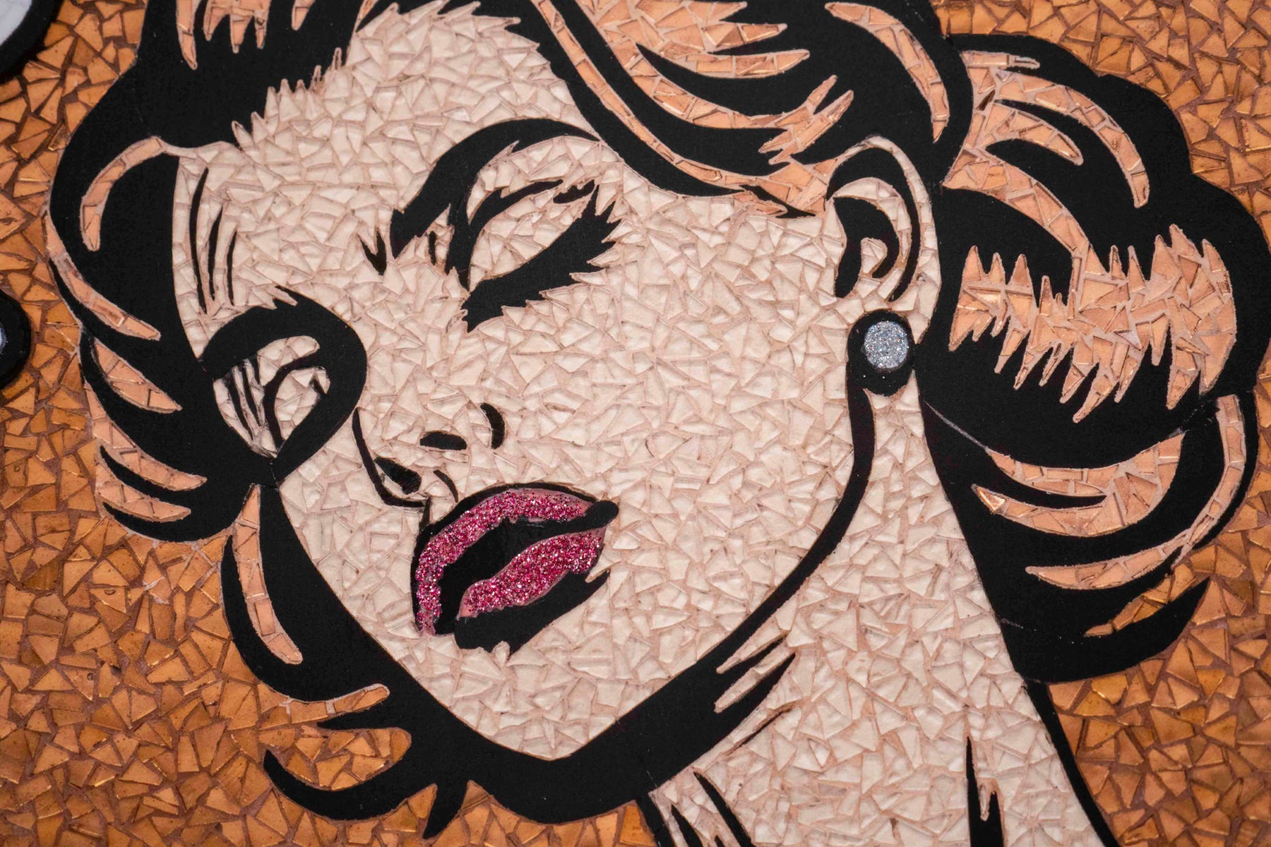 Sarah Fishbein, a contemporary glass mosaic artist based in the Atlantic Highlands of New Jersey, has been pushing the boundaries of visual art for nearly 20 years. Initially grounded in editorial video production, Fishbein artistic journey has led her to embrace the bold, graphic style of Lichtenstein Pop Art Mosaics. She infuses her mosaics with the vibrant, comic-book aesthetic of 1950s and romance comics, creating striking reinterpretations of pop culture through the timeless medium of glass.
