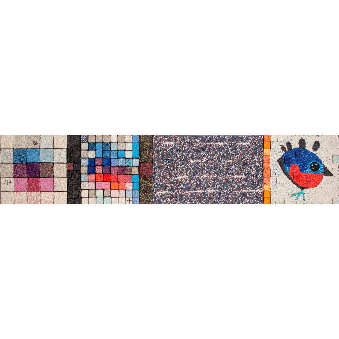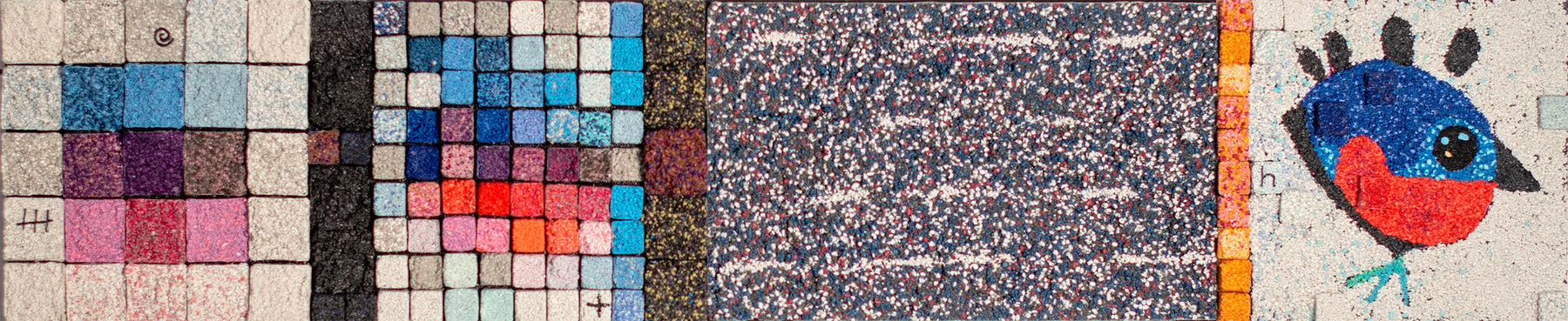 Bob Landström is an artist who primarily works with crushed, pigmented volcanic rock. His abstract paintings, with their highly granulated texture and color combinations, only achieved through such a medium, reconsider our relationship with meaning by eliciting the iconography of ancient languages, science, religions, and mysticism.