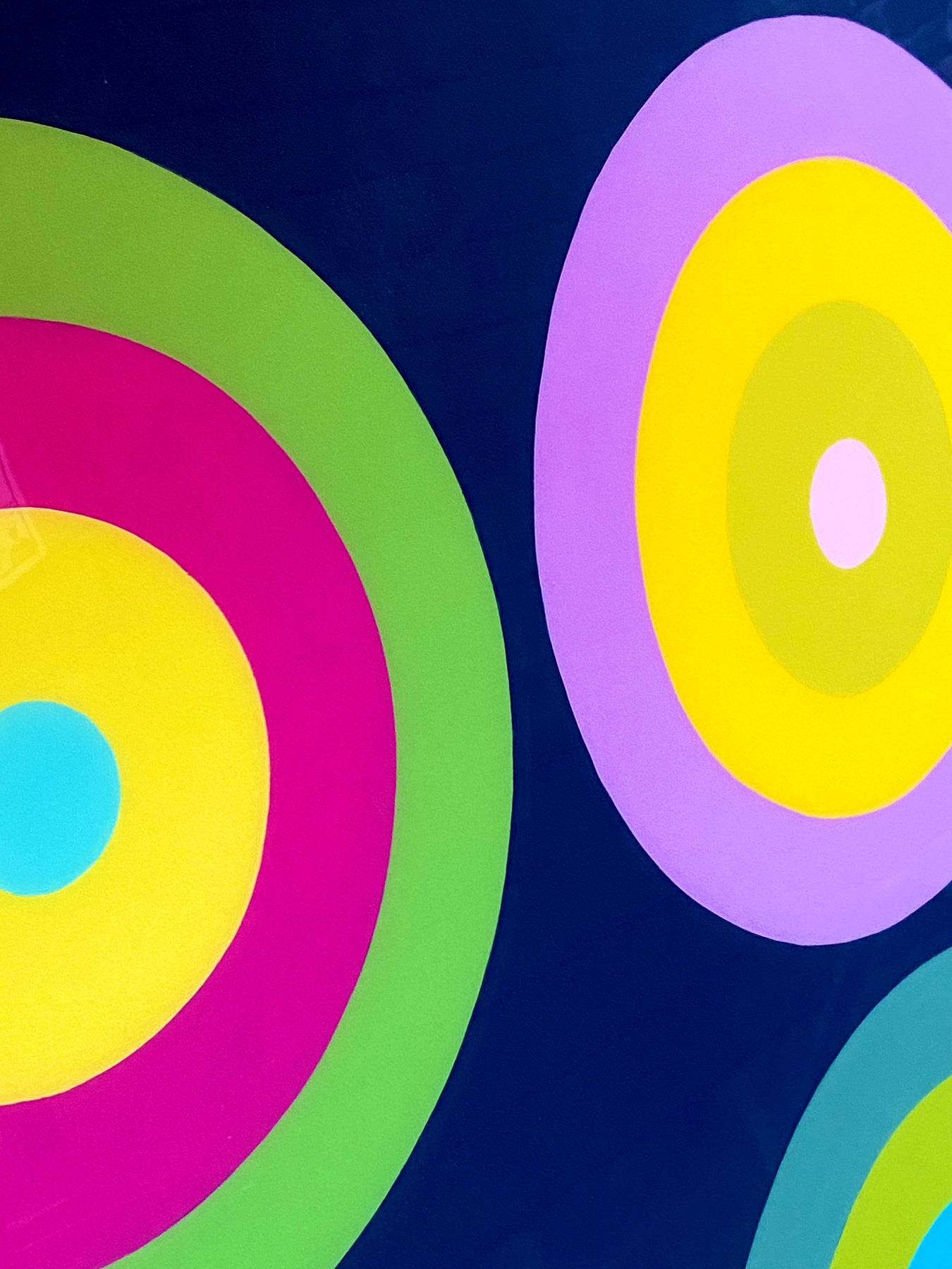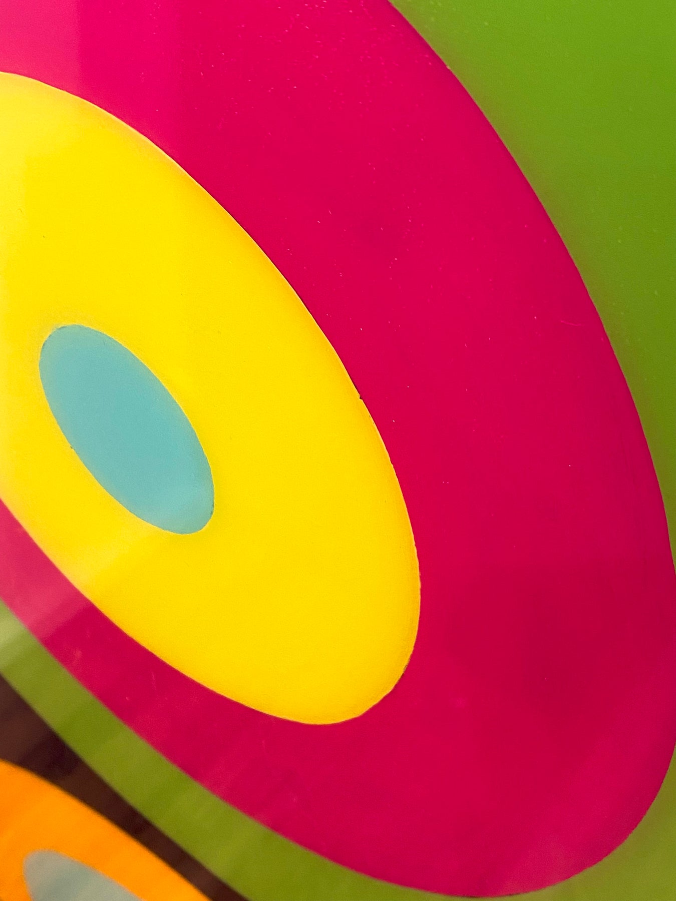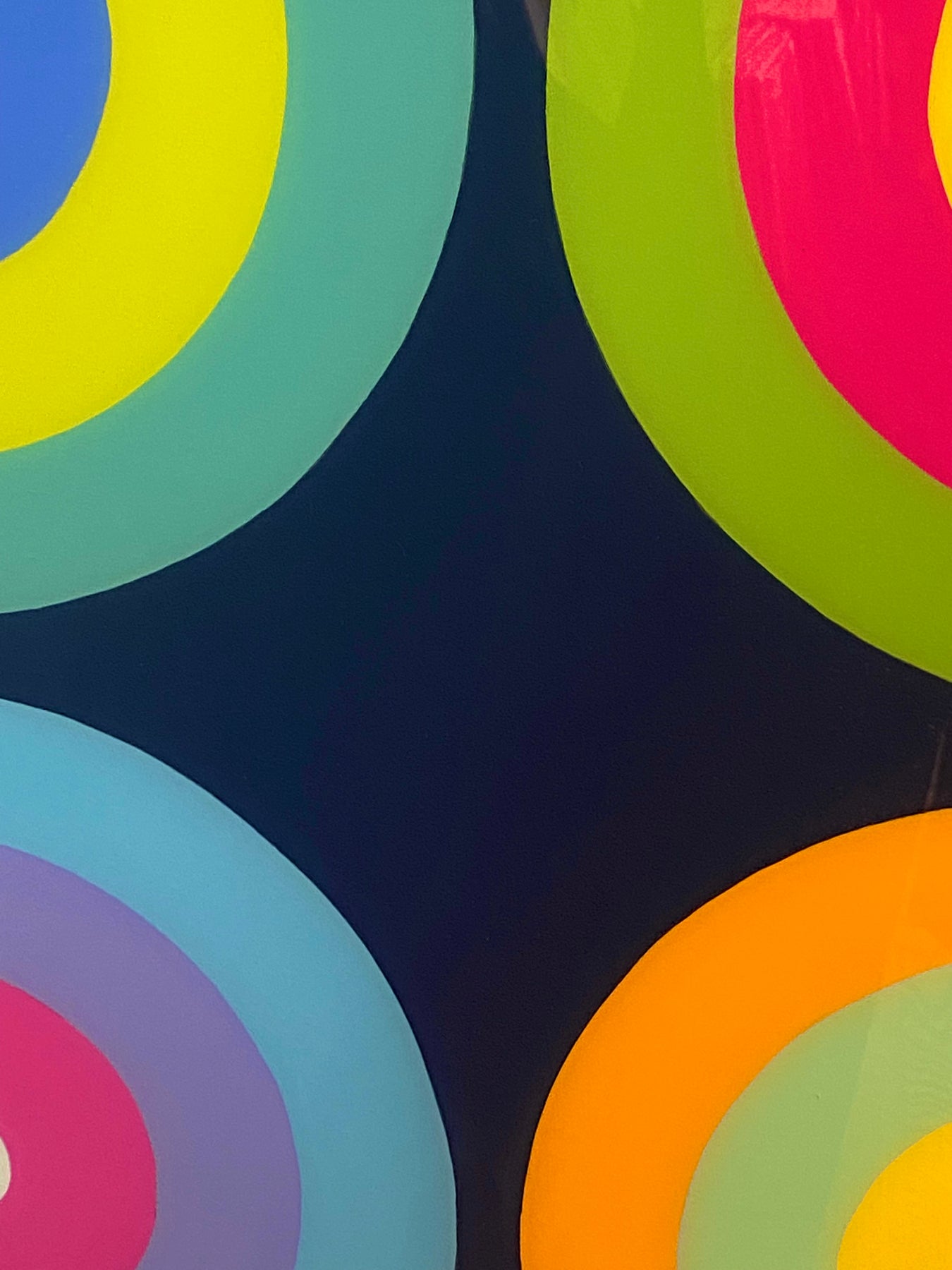 Stephanie's work revolves around bold, saturated color and how colors communicate with each other and affect the observer. Her paintings contain forms that are simple, allowing the colors to express themselves without complications. Stephanie’s work reveals focus, precision, and an insatiable appetite for evocative combinations of color.  She revels in the challenge of painting perfectly clean lines freehand with a brush.​