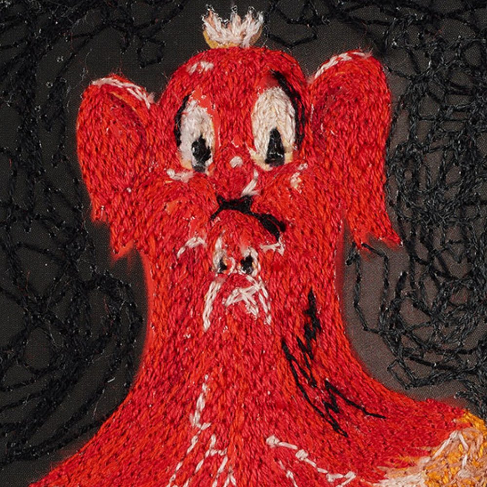 "Phish is a jam band who has been around for over 20 years and is just as famous for their live shows as they are their studio albums. The story of the ghost was released in 1998 and features cover art by one of my favorite artists, George Condo. You may recognize his work from Kanye West's, "Dark Twisted Fantasy." All of his artwork is amazing and this is my favorite album cover that he has done. I’ve embroidered the whole piece using wool thread in multiple colors carefully tracing each curve and angle. I finished the piece by creating a patch with the title and band name and mounted it over the album." – Stephen Wilson