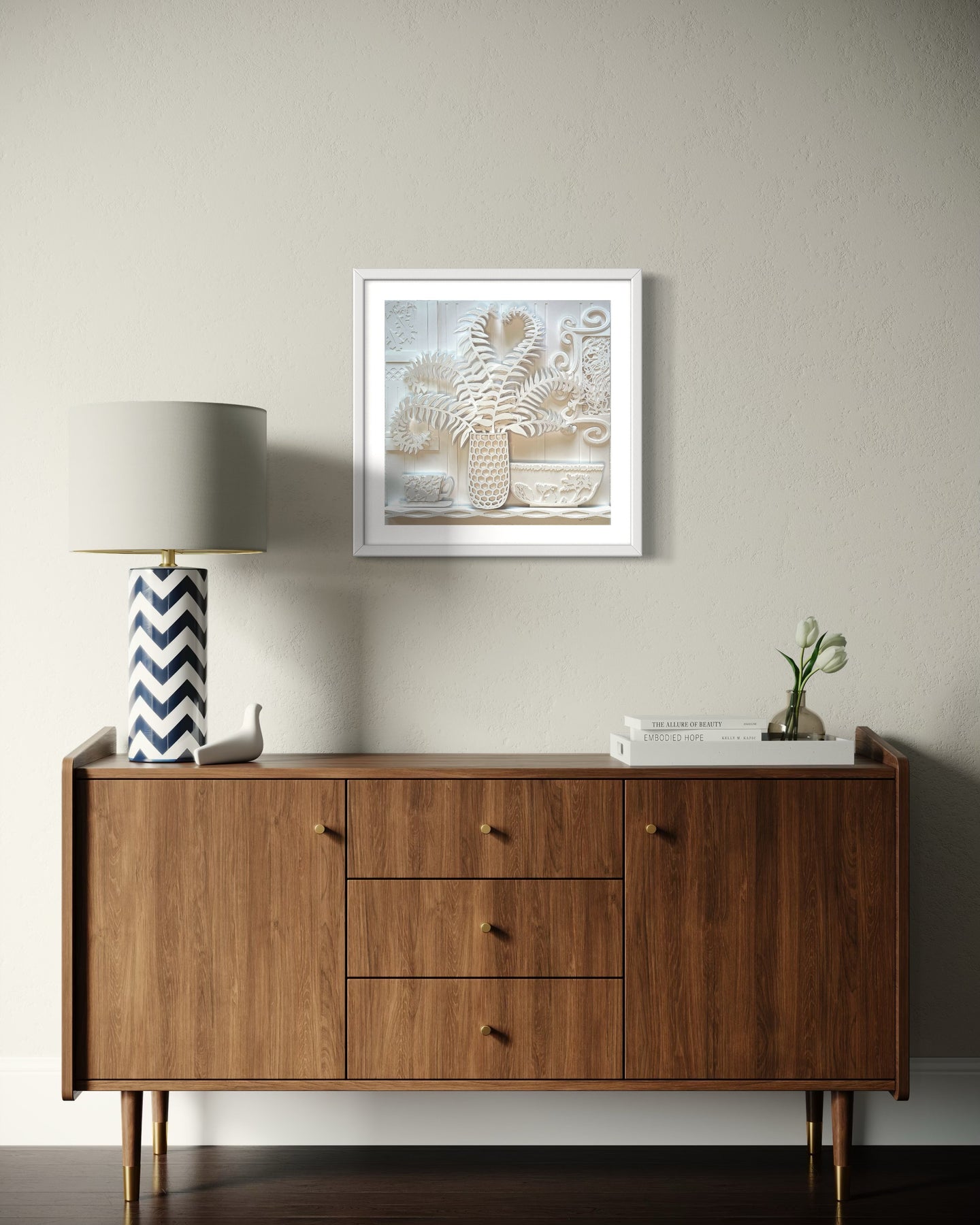 Curly Fern and Mom's Bowl on a Shelf, 2025