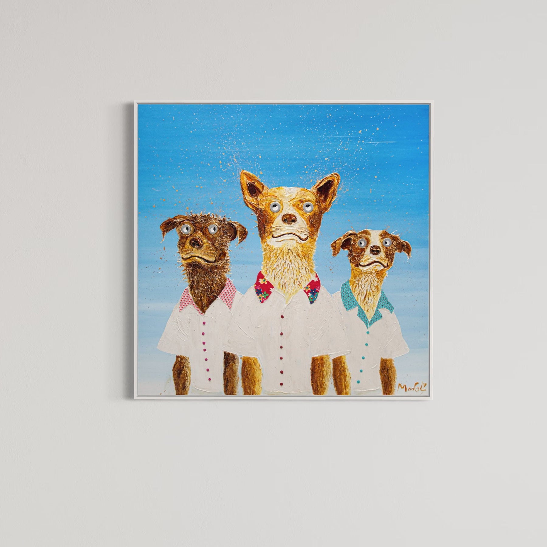 Morton Contemporary Gallery is proud to host the American debut exhibition of the French humorist painter, Moogly. Titled, THE LIGHT SIDE, this abundantly joyful show radiates not just levity and humor, but a profound depth worth exploring. Moogly is an environmentalist, a vegan, and a committed animal rights activist. Deeply pained by the loss of animal populations as a result of environmental degradation, Moogly uses his artwork as a tool of hope to foster new connections between people and the animals they have so carelessly destroyed. He does this by imbuing his characters with a hilarity that the viewer can’t help but love. At his core, the artist wants people to care for their natural world, and he believes his art is one small way he can foster more love from humans for the beautiful natural world we live in.
