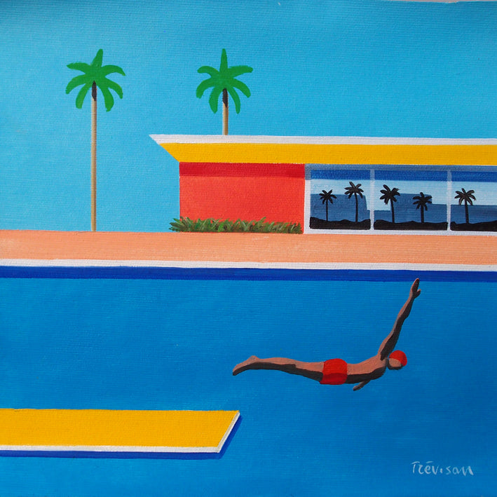 Carlo Trevisan is a poet and surrealist painter who creates work which he describes as 'clean, minimalist, and simple'. The artist works tightly and intentionally, depicting isolated objects and characters against smooth balanced backgrounds. His oil paintings are reminiscent of a pleasant dream: they are familiar, warm, non-sensical yet perfectly convincing.