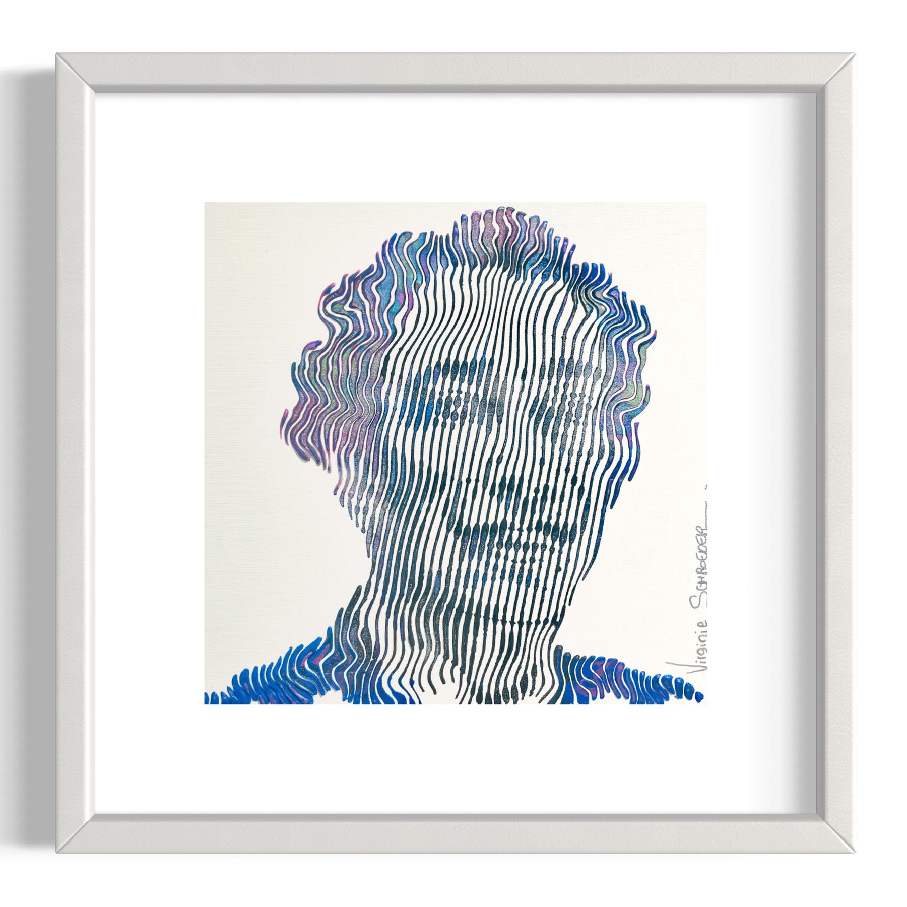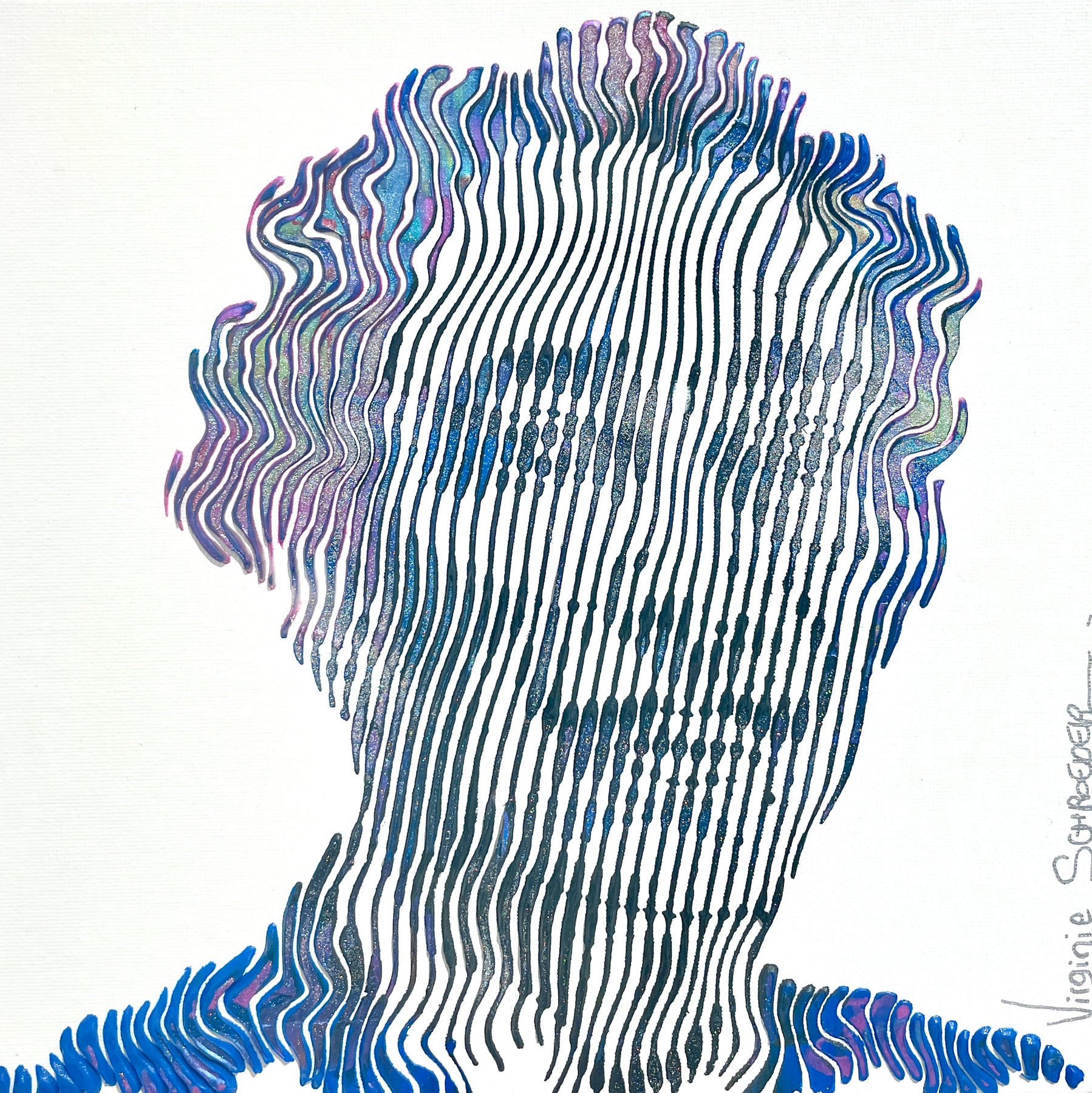 Virginie Schroeder's work is a mix of pop, street, and kinetic art that pays homage to contemporary icons. Her paints are applied with a knife, brush, and syringe that are delicately blended to bring out colorful details full of depth. Her work is conceived line by line; painted, and sculpted with patience and a lot of passion. This series is inspired by the kinetic art movement which allows us to experience the work from several angles.