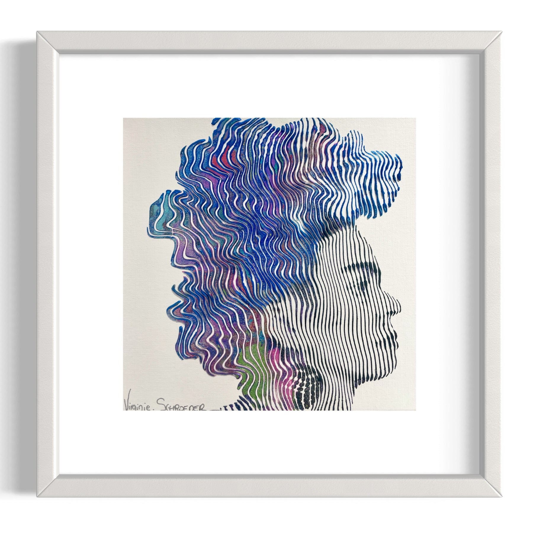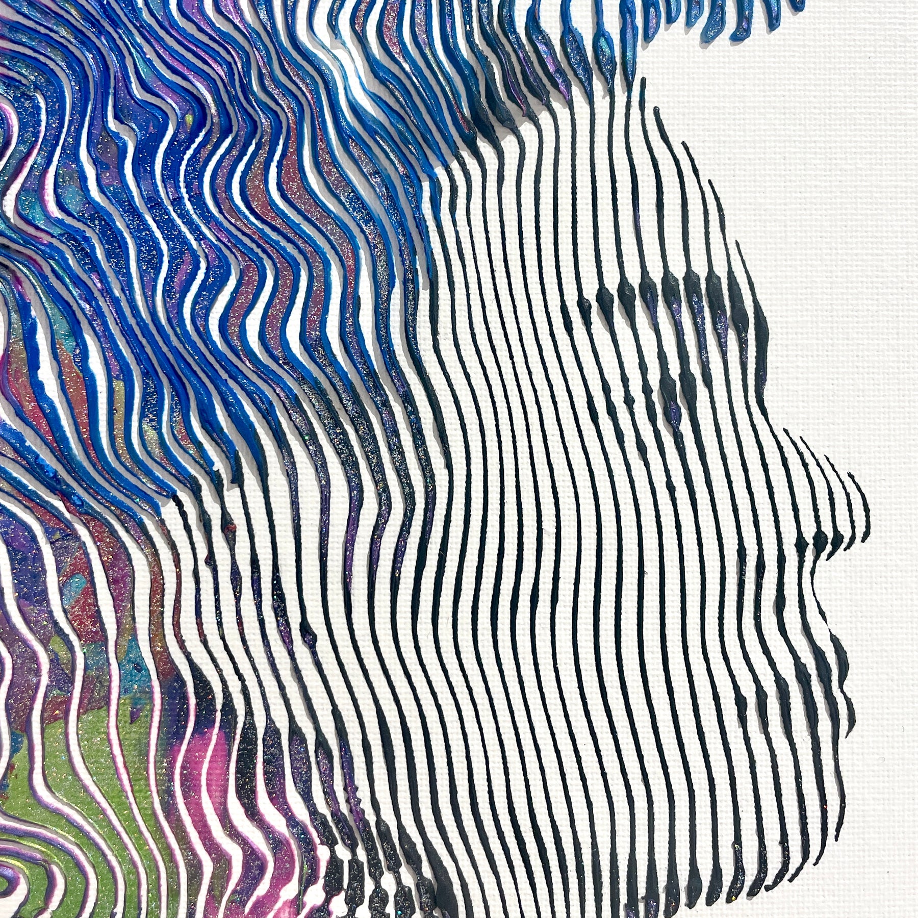 Virginie Schroeder's work is a mix of pop, street, and kinetic art that pays homage to contemporary icons. Her paints are applied with a knife, brush, and syringe that are delicately blended to bring out colorful details full of depth. Her work is conceived line by line; painted, and sculpted with patience and a lot of passion. This series is inspired by the kinetic art movement which allows us to experience the work from several angles.
