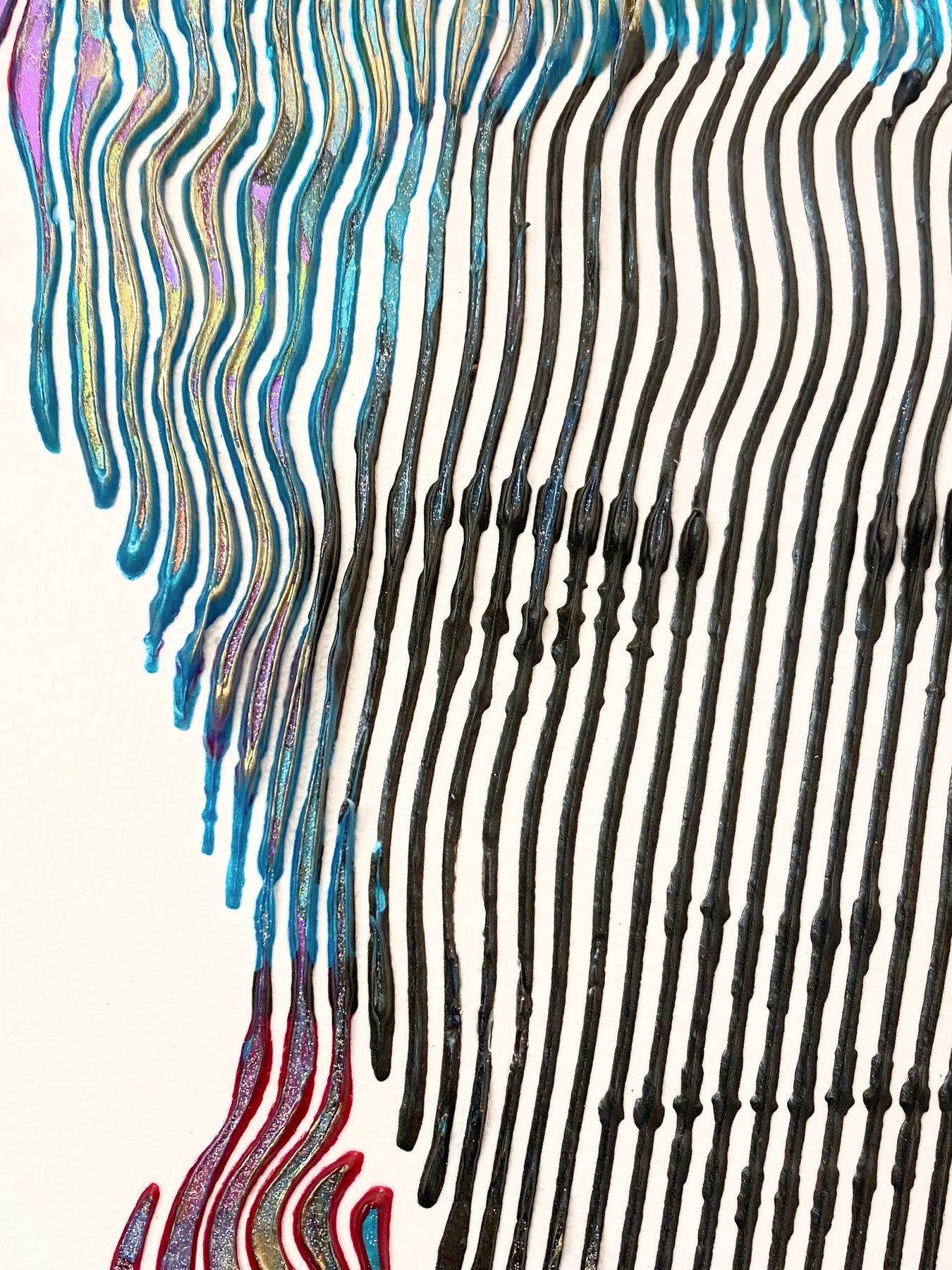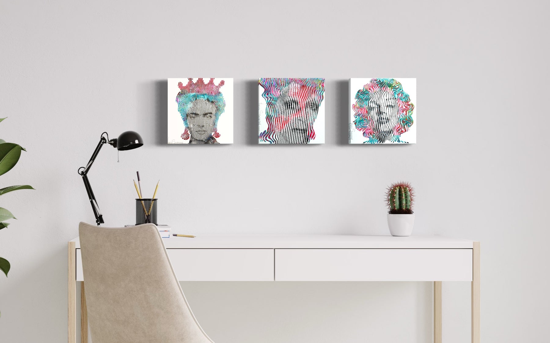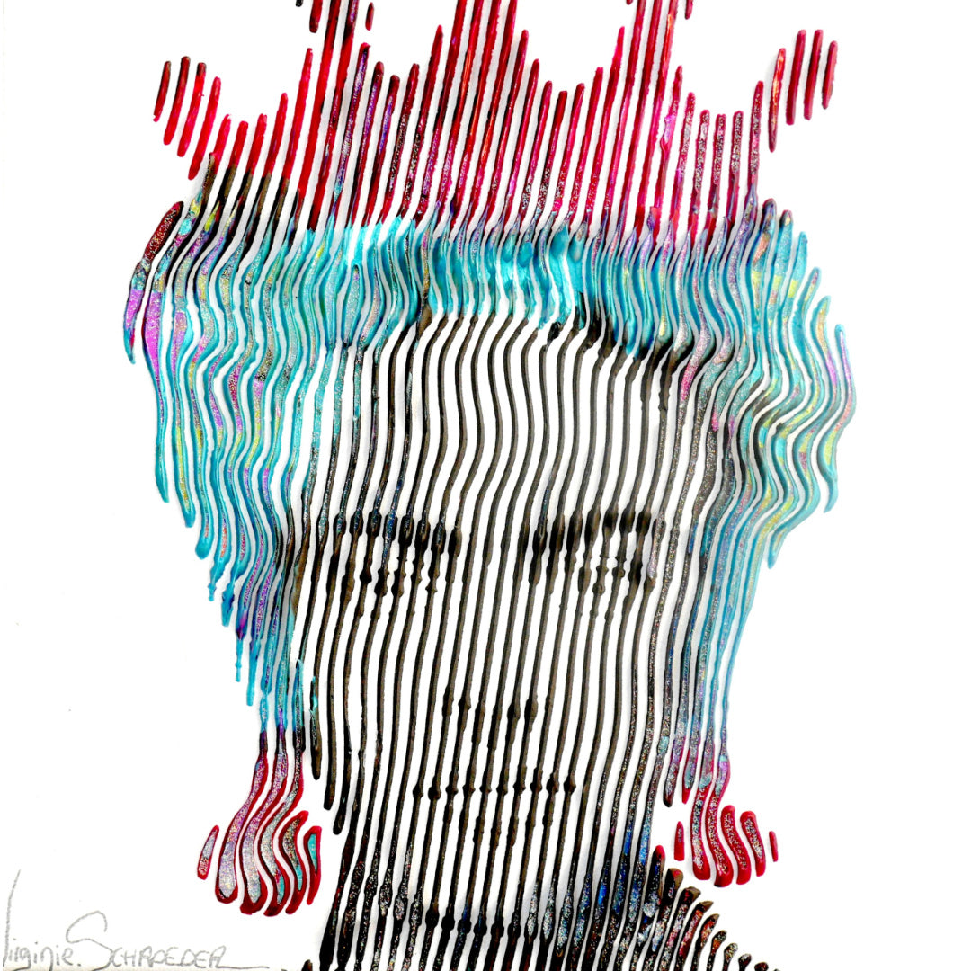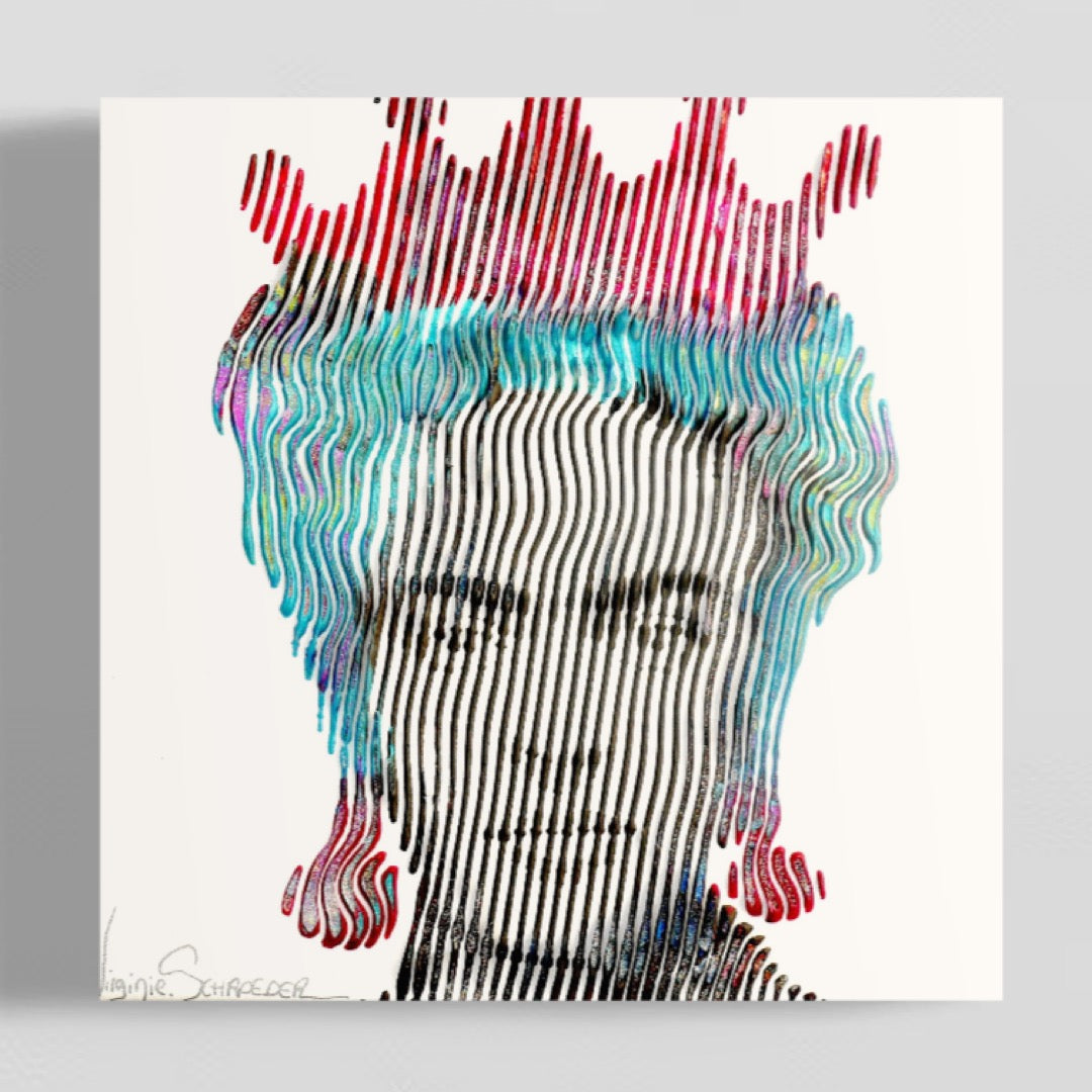 Virginie Schroeder's work is a mix of pop, street, and kinetic art that pays homage to contemporary icons. Her paints are applied with a knife, brush, and syringe that are delicately blended to bring out colorful details full of depth. Her work is conceived line by line; painted, and sculpted with patience and a lot of passion. This series is inspired by the kinetic art movement which allows us to experience the work from several angles..
