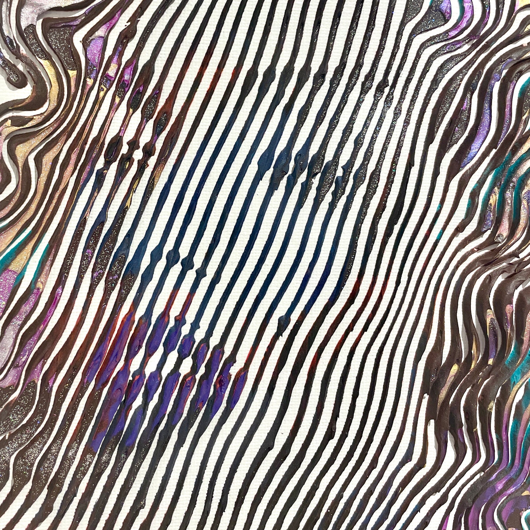 - Acrylic and oil on canvas panel applied line by line with a knife, brush, and syringe to create 3-dimensional works.