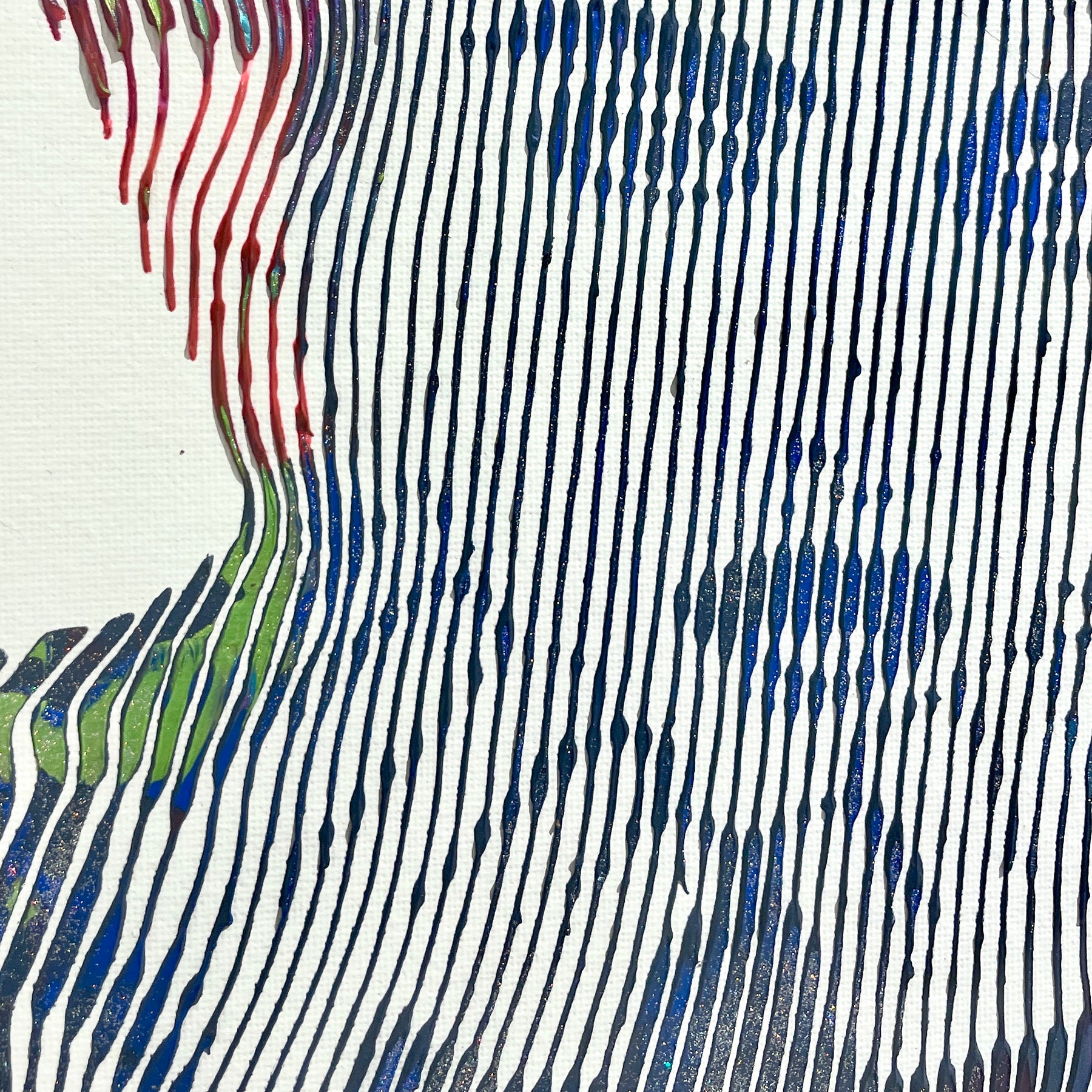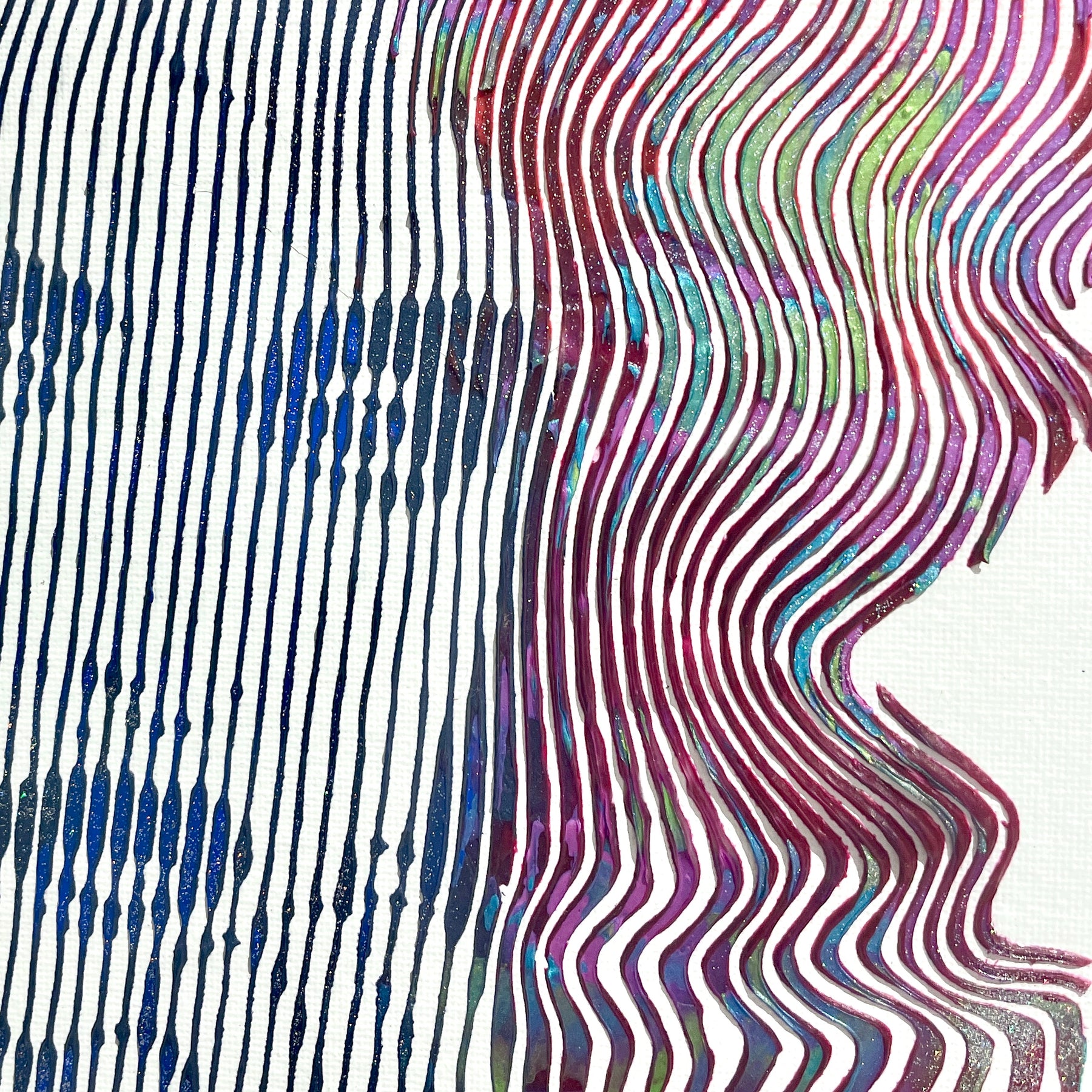 - Acrylic and oil on canvas panel applied line by line with a knife, brush, and syringe to create 3-dimensional works.