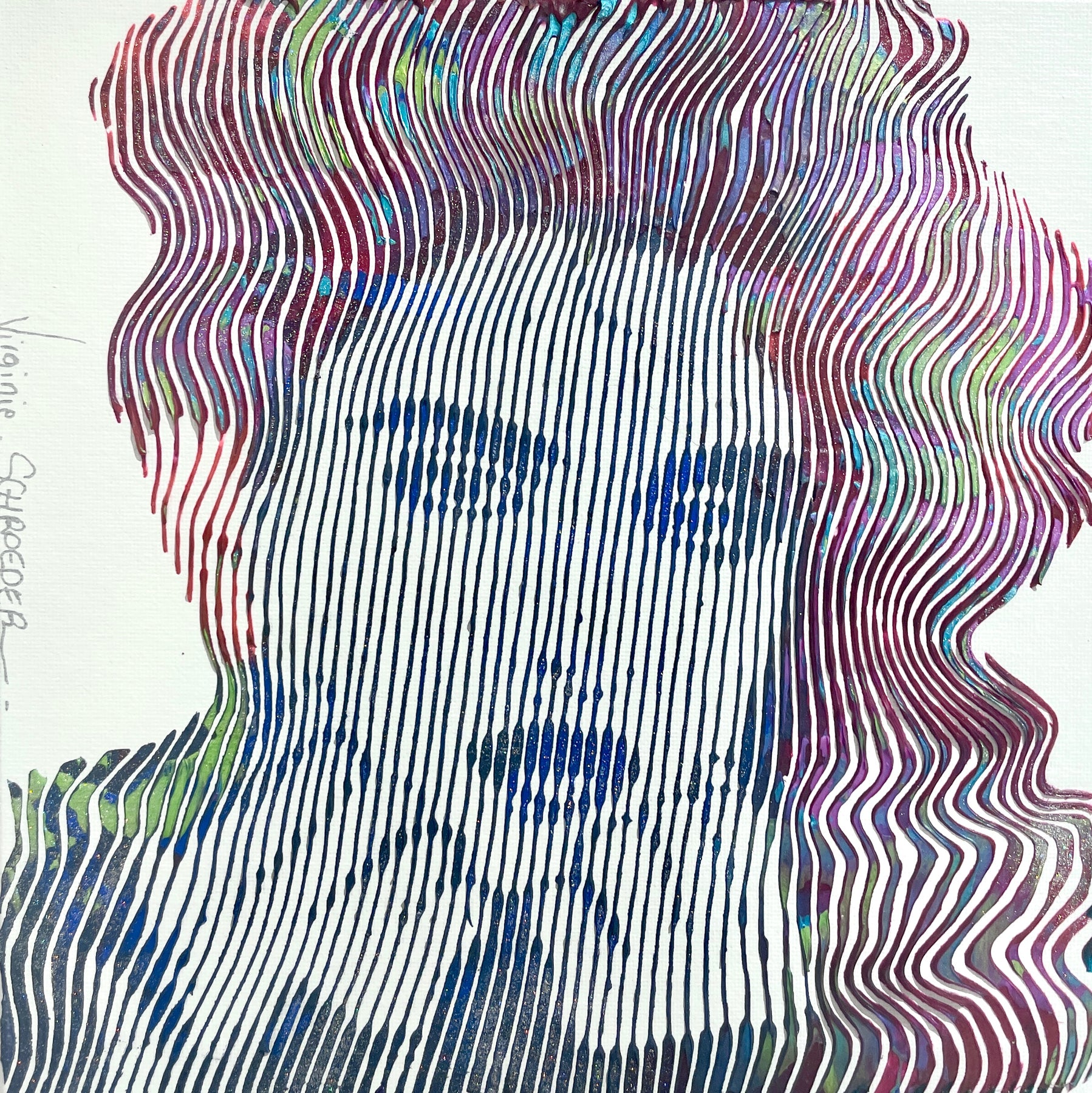 Virginie Schroeder's work is a mix of pop, street, and kinetic art that pays homage to contemporary icons. Her paints are applied with a knife, brush, and syringe that are delicately blended to bring out colorful details full of depth. Her work is conceived line by line; painted, and sculpted with patience and a lot of passion. This series is inspired by the kinetic art movement which allows us to experience the work from several angles.