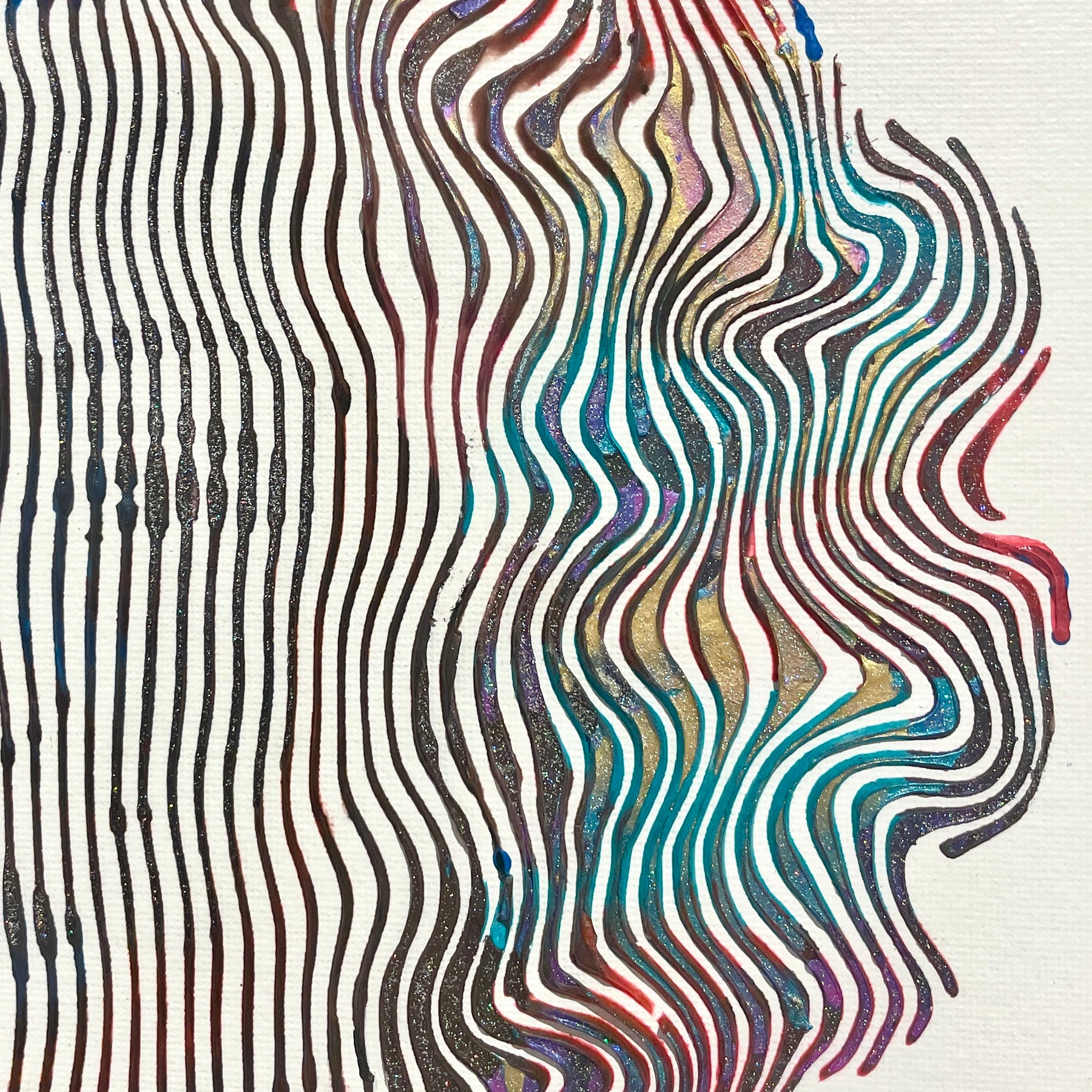- Acrylic and oil on canvas panel applied line by line with a knife, brush, and syringe to create 3-dimensional works.